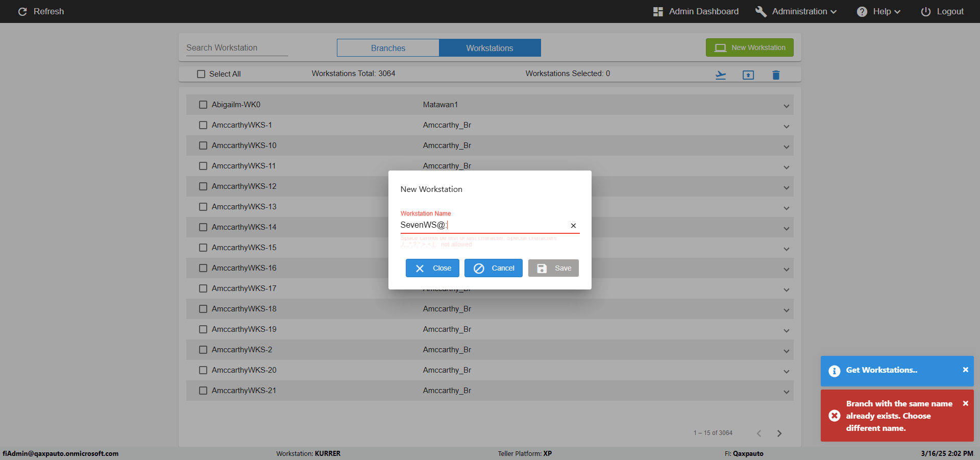 (verify Branch In Workstations Page)