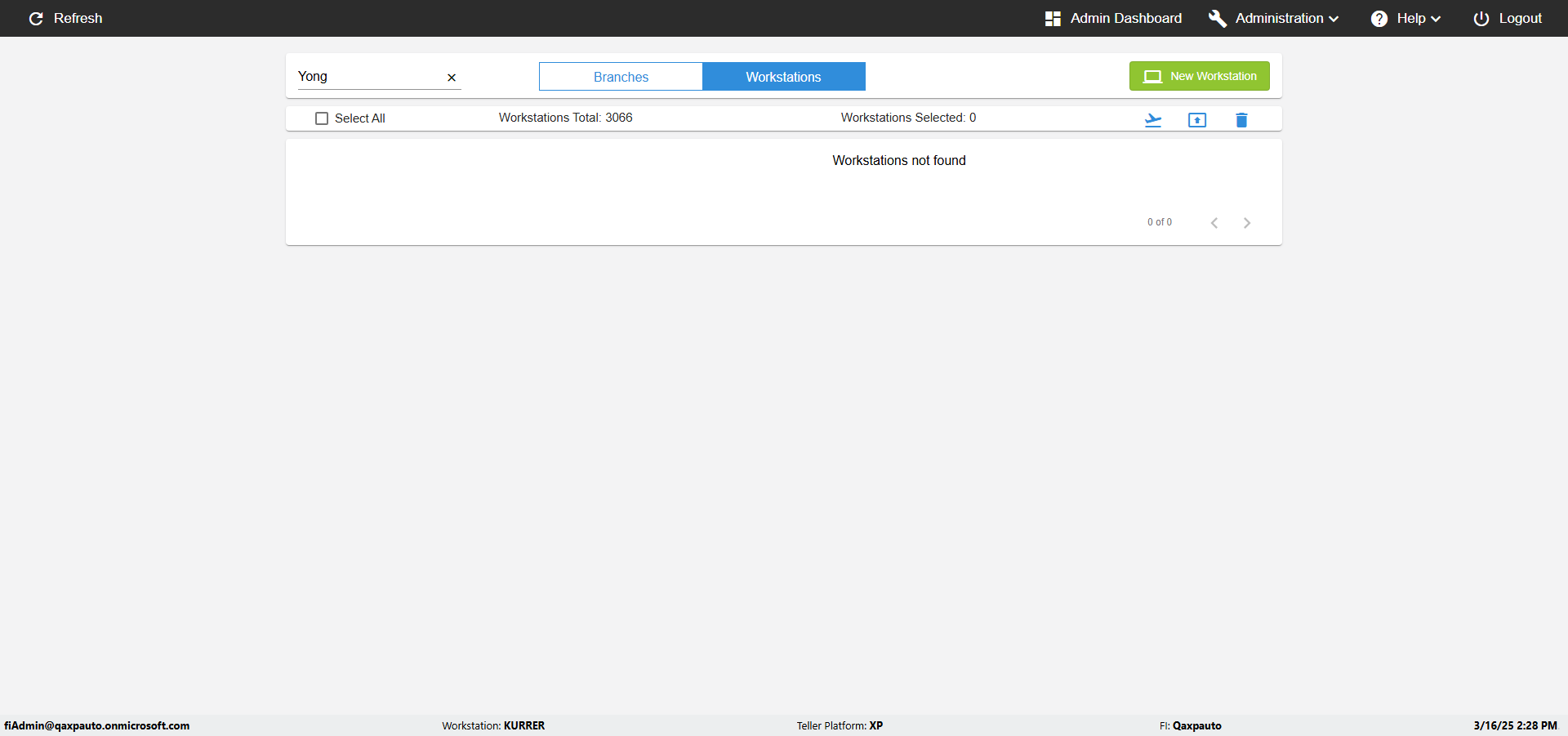 Actual(Passed): Successfully verified the Workstation Branch name in 'Workstations' page[ScreenShot]