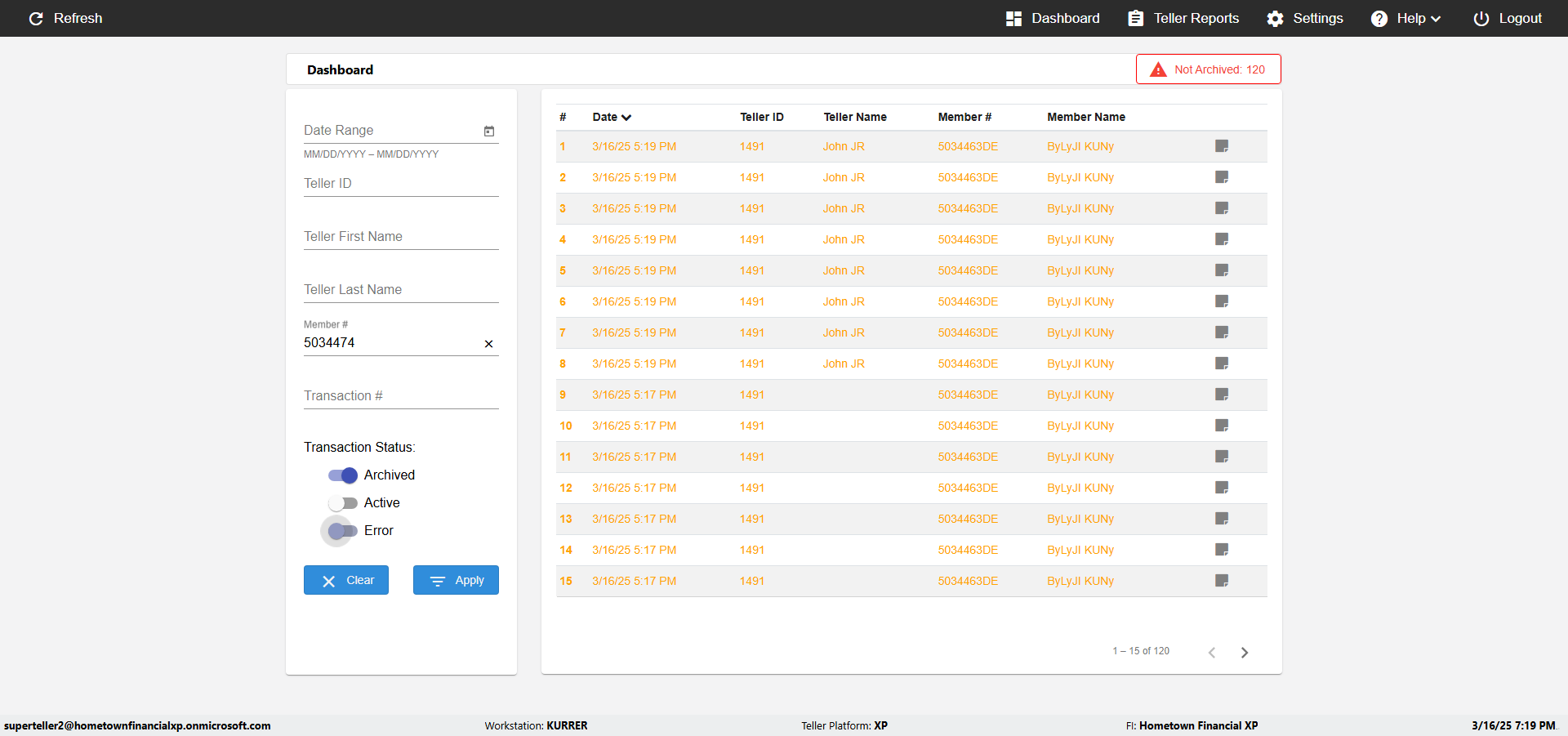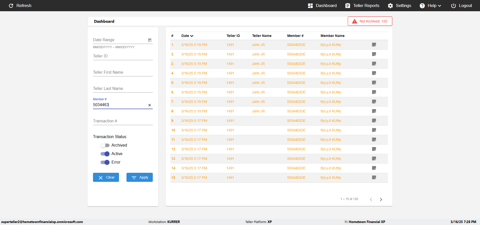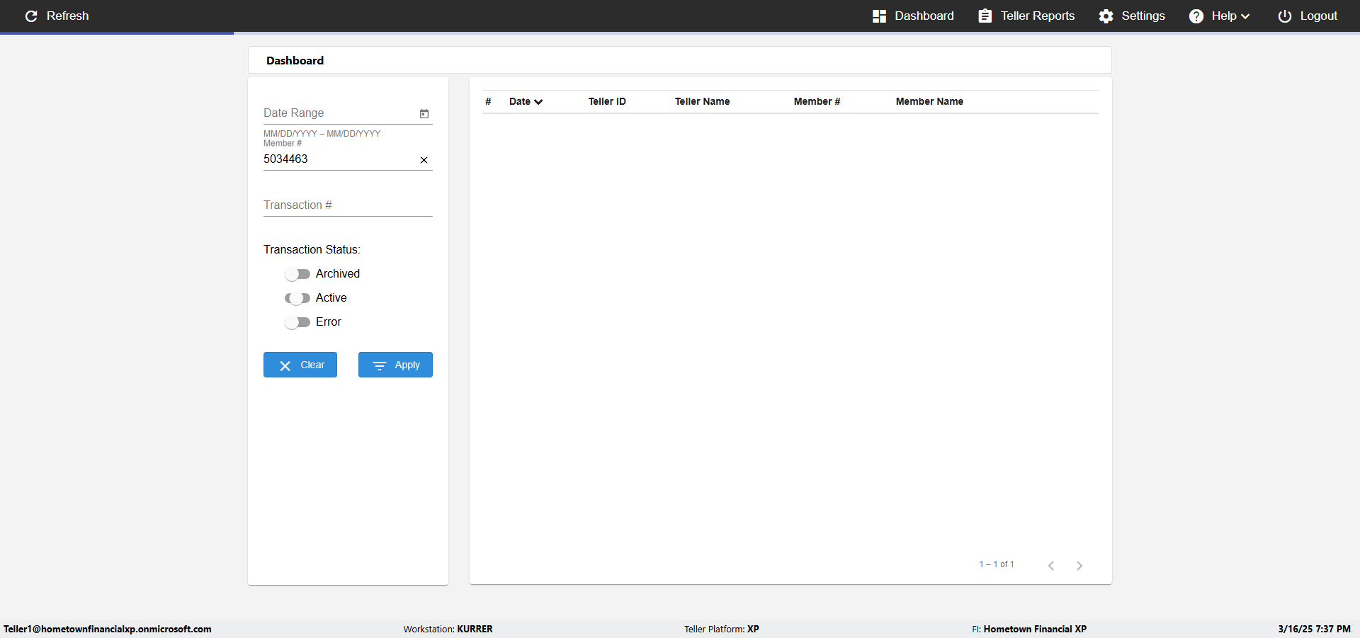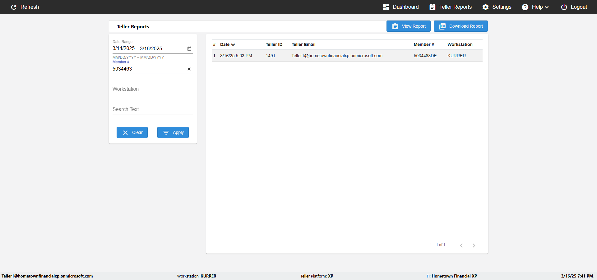 ({UserPwd=iMM2025!, Description=verify Search Elements In Report Page Teller ID, Teller ID=, errorMessage=, Teller Email=, View=, Date=2, Clear=, Workstation=, errorint=, TestID=verifySearchInReports, Transaction=, Header=, Username=Teller1@hometownfinancialxp.onmicrosoft.com, Export=, Member #=5034463, Search Text=, Level=})