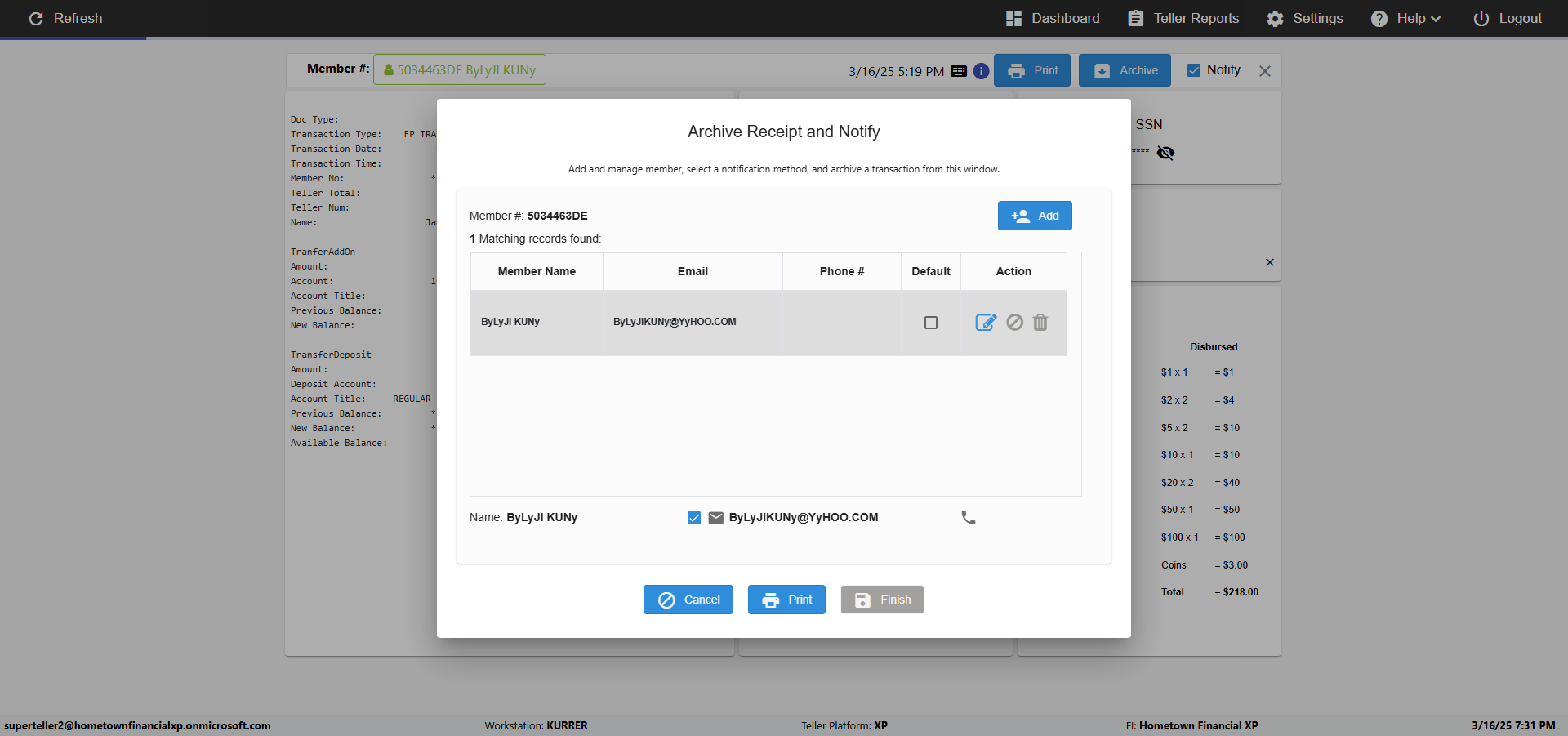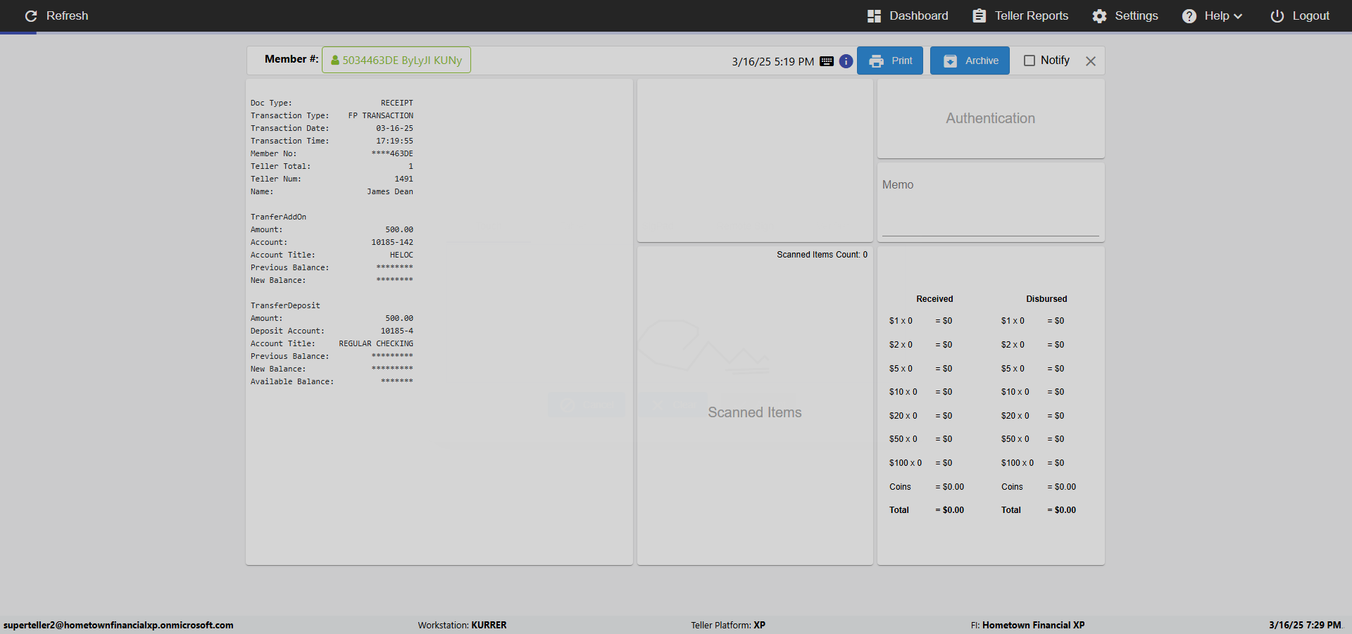 (verify MemberID And Archive Information for Normal teller In Receipt Page)