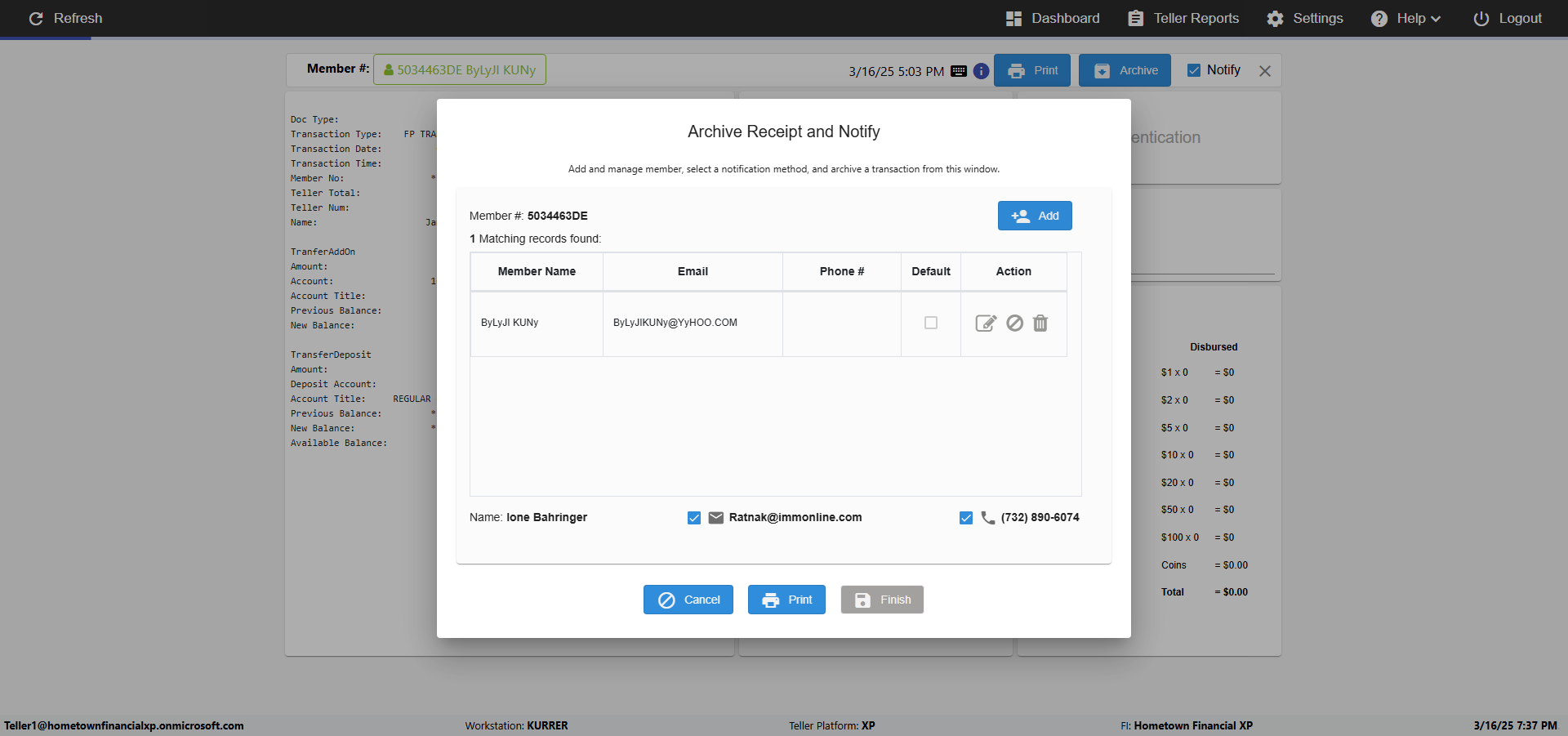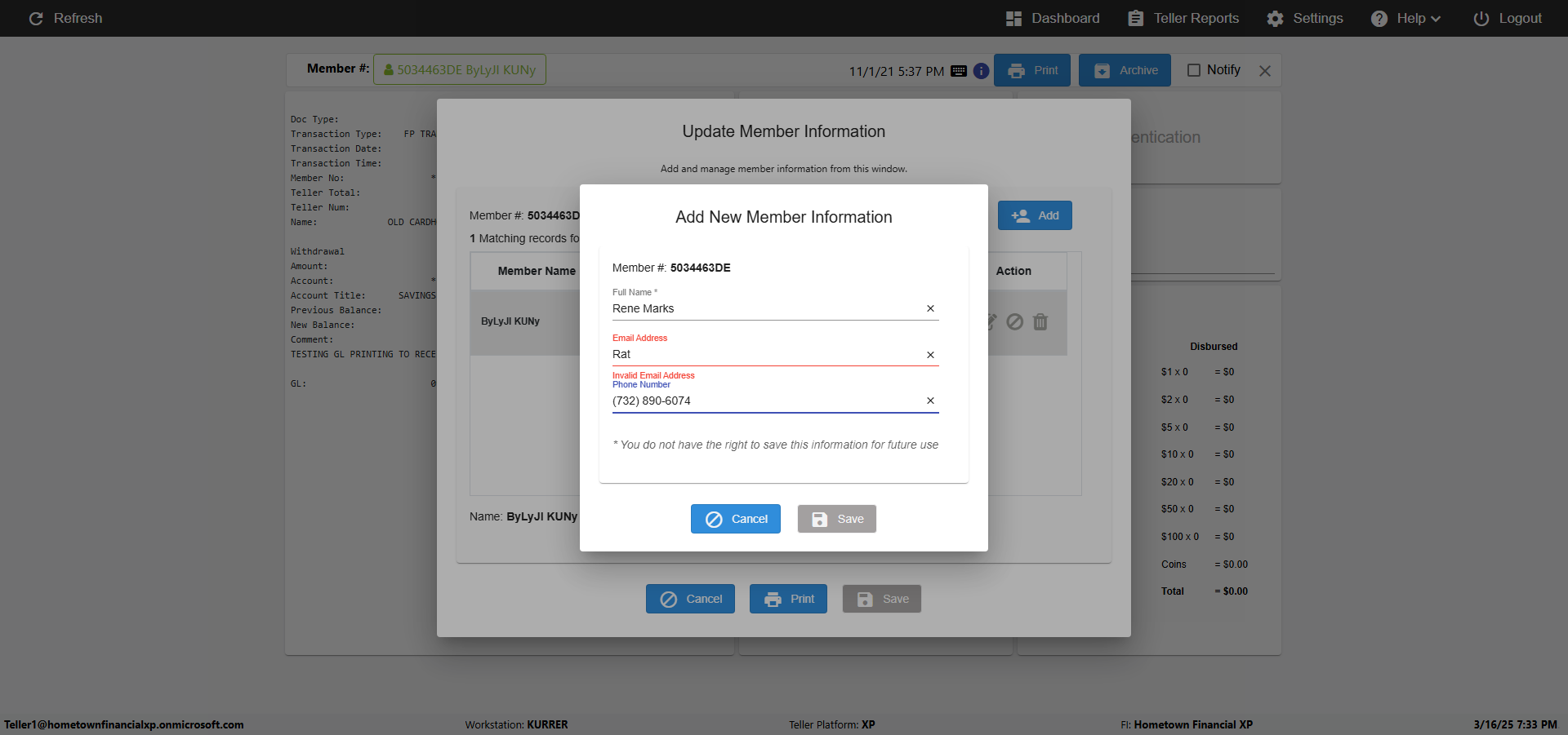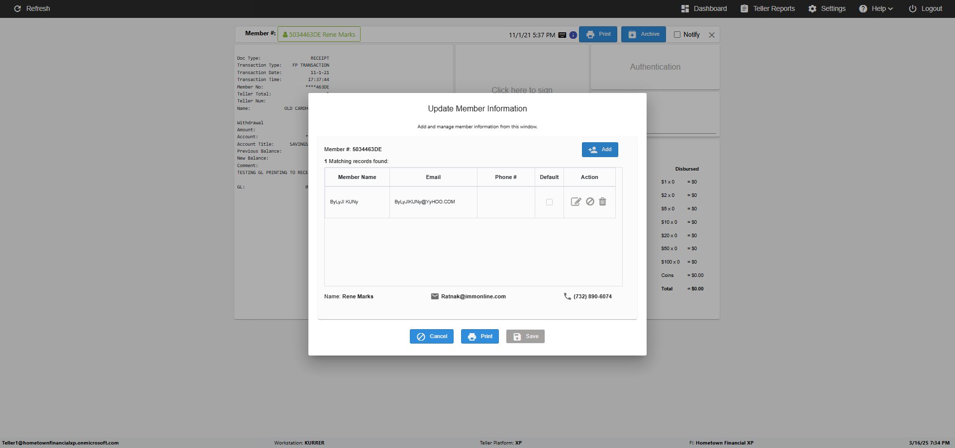 ({Toggel=TRUE, Archived Transactions=no, Description=verify Normal MemberID And Archive Information Update (Use Normal only), Email=Ratnak@immonline.com, Archive=, Document Type=, Notify=, SignatureTab=, DisbursedExpression=, Operation=, Teller LastName=, Disbursed cash=, errorint=, TestID=verifyNormalMemberAddUpdateContactInfo, Print=, DisbursedExpressionValue=, Phone=(732) 890-6074, ReceivedCashValue=, Member=5034463, UserPwd=iMM2025!, Transtatus=Archived-false;Active-true;Error-false, Docment ID=, Teller=, Teller FirstName=, errorMessage=, ReceivedExpressionValue=, Date=11/01/2021 - 11/20/2021, Platfrom=, Received cash=, Transaction=, Header=, Expression=, Username=Teller1@hometownfinancialxp.onmicrosoft.com, DisbursedCashValue=, FullName=Johna, ReceivedExpression=, SMS=, Memo=})