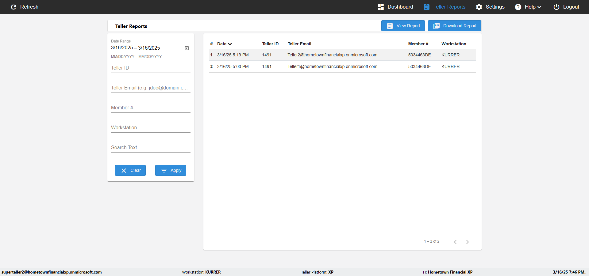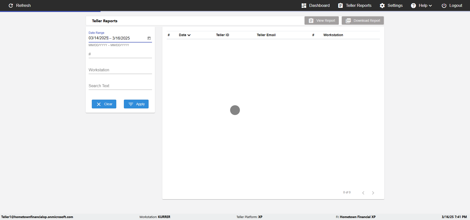 ({UserPwd=iMM2025!, Description=verify UI Elements In Report Page, Teller ID=, errorMessage=, Teller Email=, View=, Date=25, Clear=, Workstation=, errorint=, TestID=verifyUIElementsInReports, Transaction=, Header=, Username=superteller2@hometownfinancialxp.onmicrosoft.com, Export=, Member #=, Search Text=, Level=})