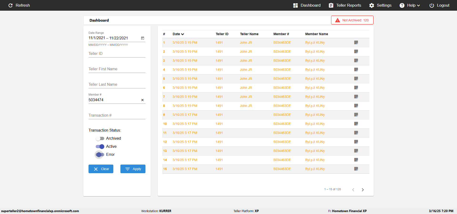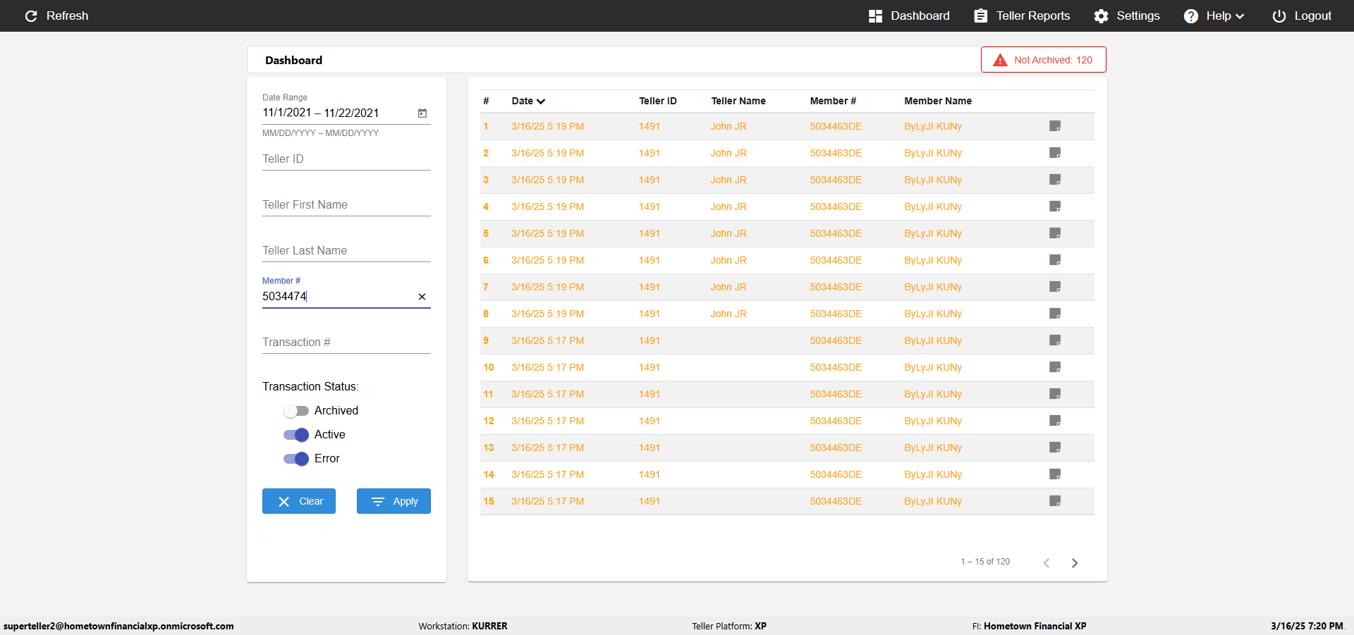 (Verify UI elements and Search the Date,Teller,Teller name,Member name in DashBoard page)