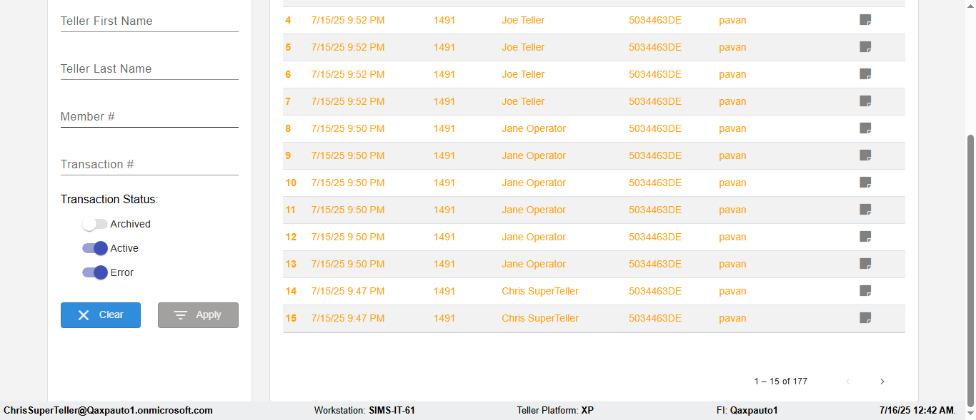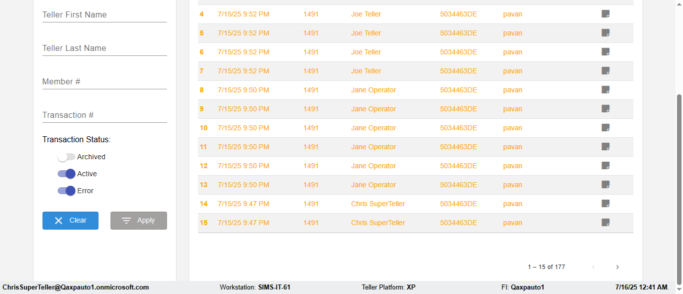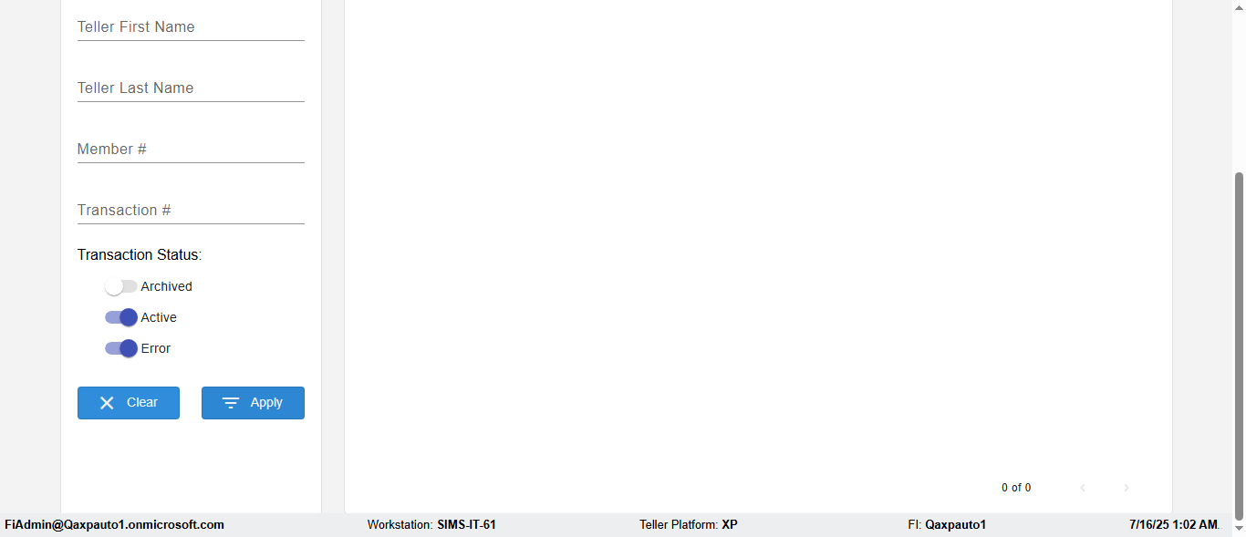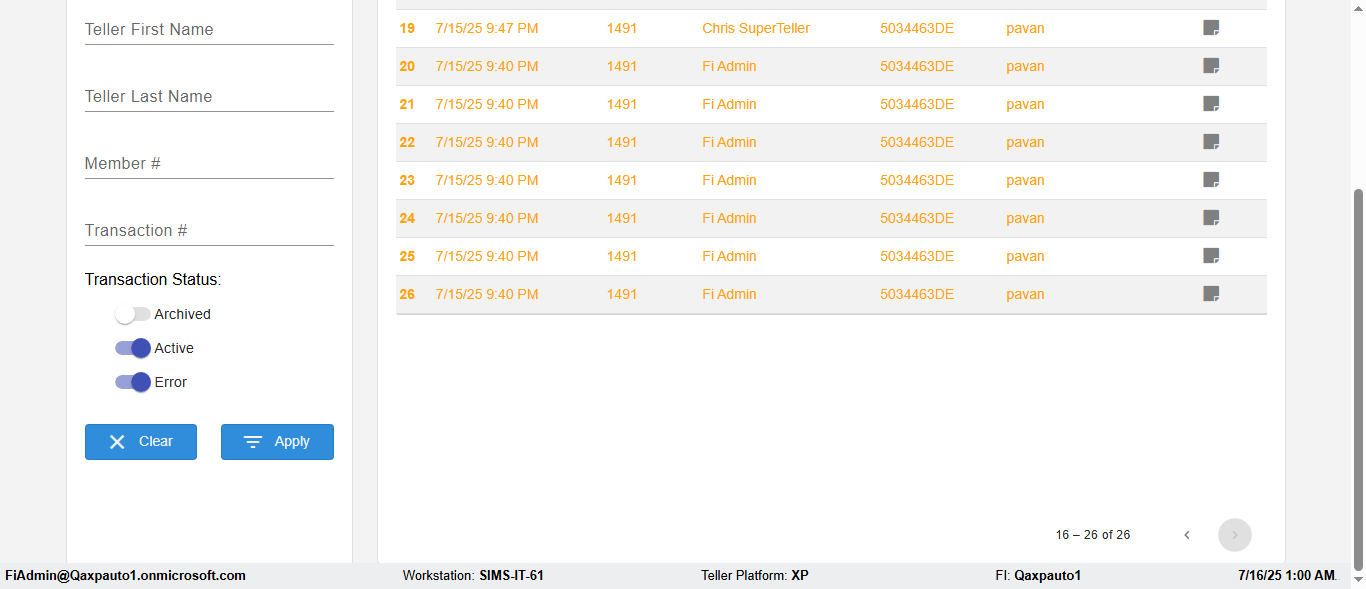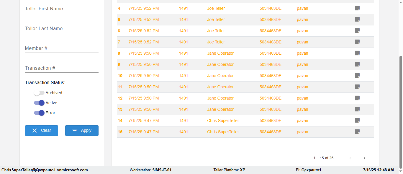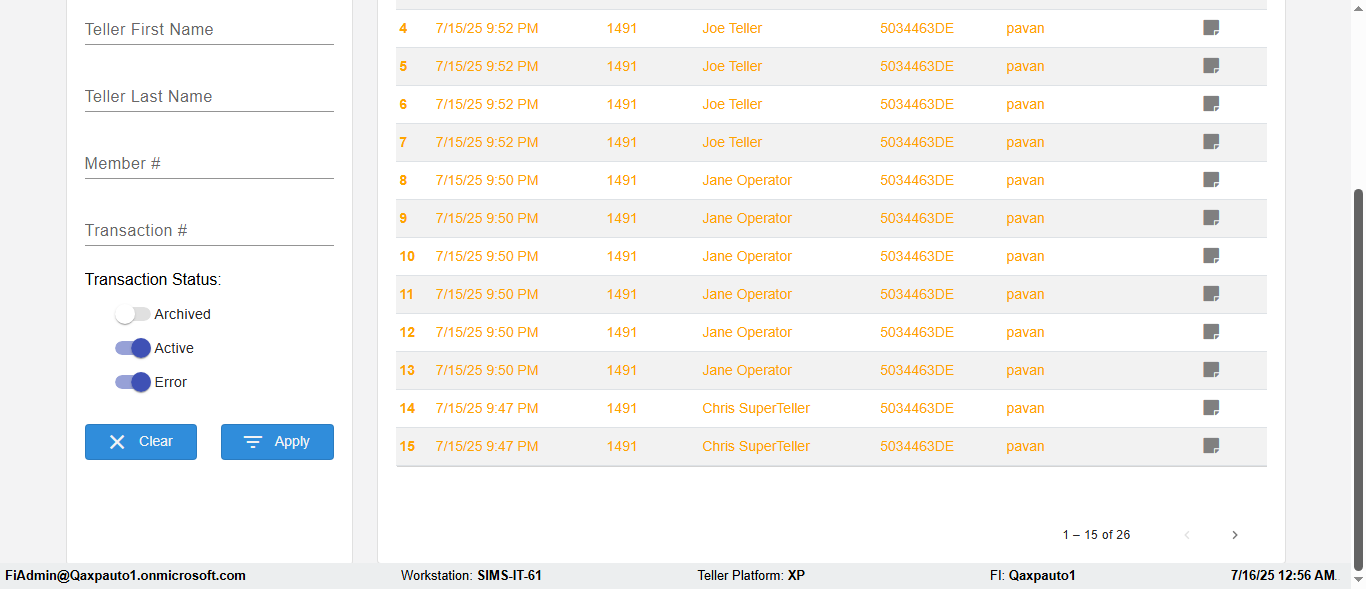 (Verify negative/invalid Search of the Date,Teller,Teller name,Member name in DashBoard page)