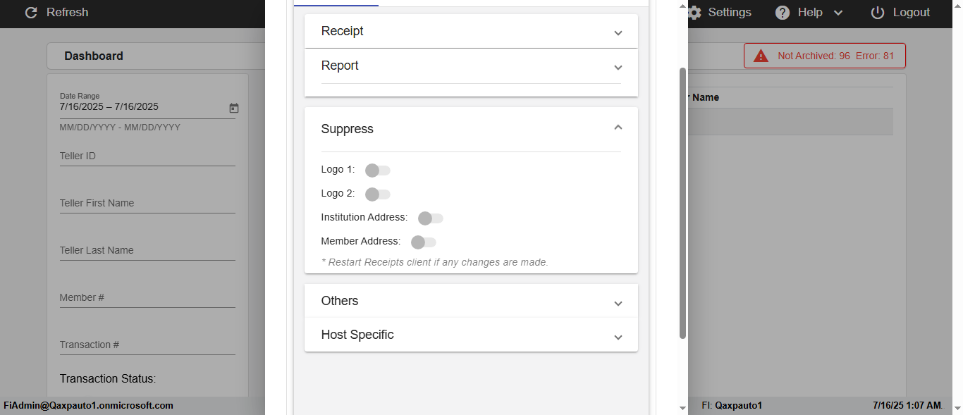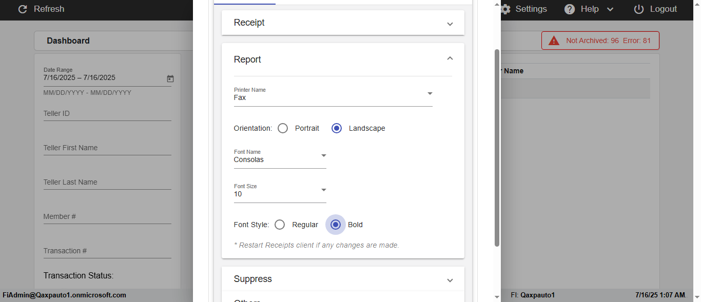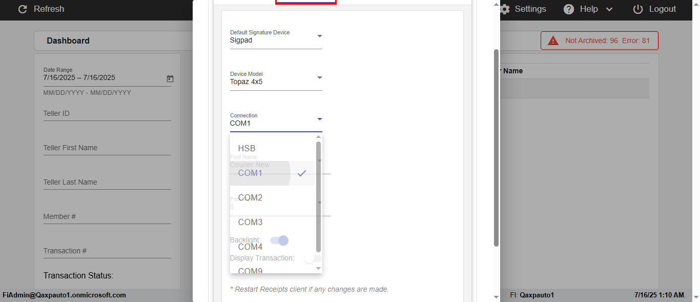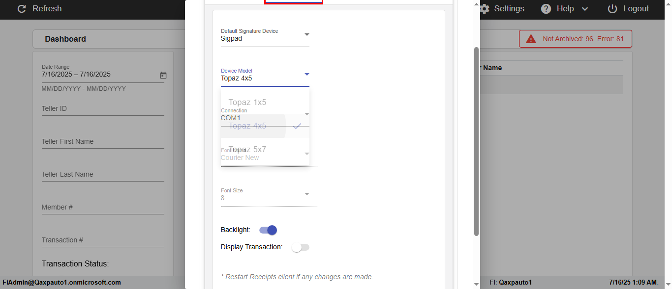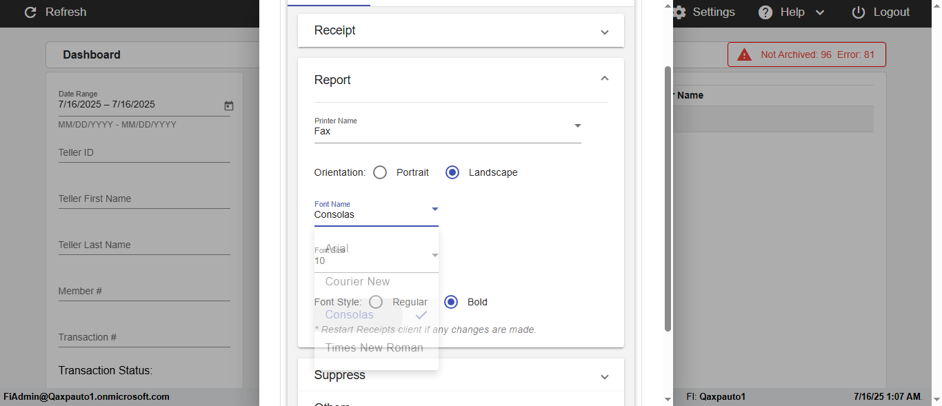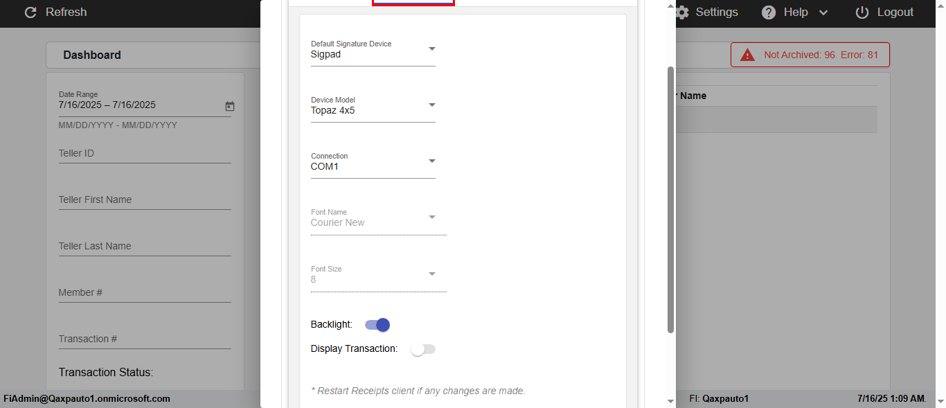 ({Description=verify Settings page In Teller Portal, Email=, Teller LastName=, print signatur=TRUE, errorint=, TestID=verifySettingsInTellerPage, Color Transactions=, Member=, UserPwd=iMM2022!, Transtatus=, Receipt=Printer Name-Fax;Name-Consolas;Size-10;Style-Bold,Narrow, Report=Printer Name-Fax;Orientation-Landscape;Name-Consolas;Size-10;Style-Bold, Teller=, Teller FirstName=, errorMessage=, Suppress=Log1-false;Log2-false;CuAddress-false;Member Address-false, Date=, print Disburstments=FALSE, Print signature line=print the sign, Type=, Transaction=, Header=, Username=fiAdmin@Qaxpauto1.onmicrosoft.com, SMS=, Sign=Default Signature Device-Sigpad;Device Model-Topaz 4x5;Connection-COM1;Backlight-true, Scan=Scanner Type-ScanShell 3000D;Image Mode-Singleside;USB Connection-false})