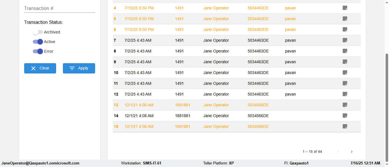 ({Description=verify Color Transcations In DashBoard with Active and Error, Email=Test@gmail.com, Teller LastName=, print signatur=, errorint=, TestID=verifyTransactionColorsInDashBoard, Color Transactions=Archived-#212529|Active-#ffa500|Error-#ff0000, Member=, UserPwd=iMM2022!, Transtatus=Archived-false;Active-true;Error-true, Receipt=, Report=, Teller=, Teller FirstName=, errorMessage=, Suppress=, Date=2, print Disburstments=, Print signature line=, Type=, Transaction=, Header=, Username=fiAdmin@Qaxpauto1.onmicrosoft.com, SMS=(555) 019-9123, Sign=, Scan=})