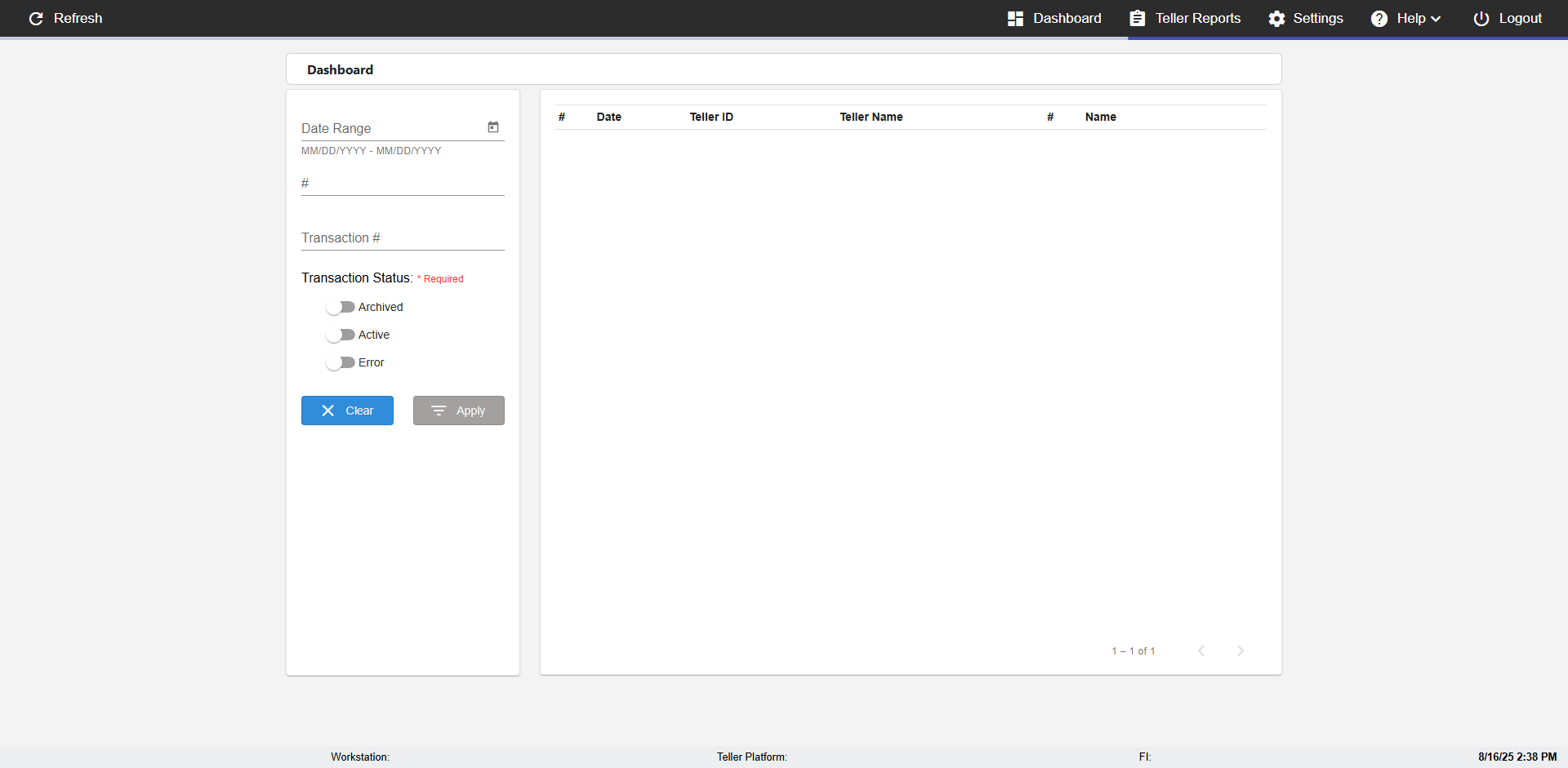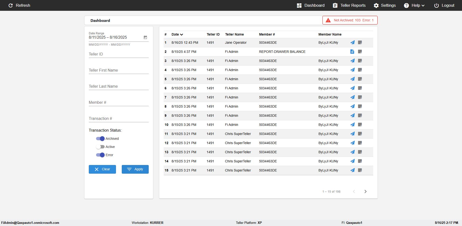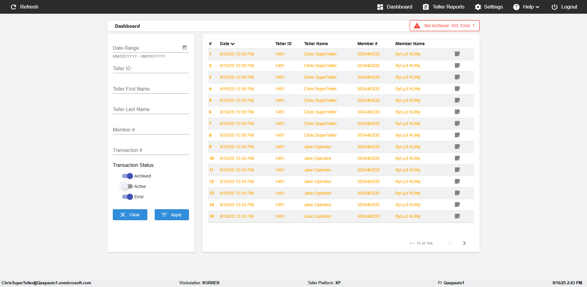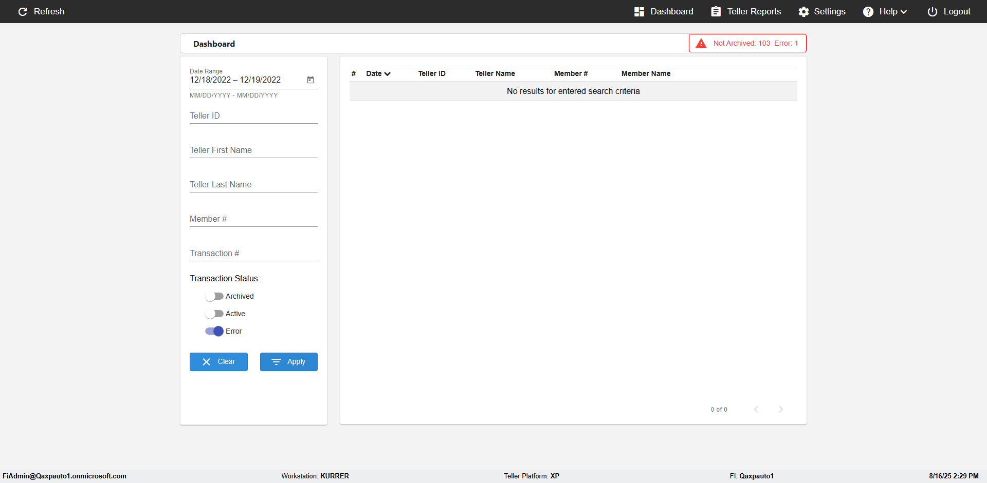(Verify negative/invalid Search of the Date,Teller,Teller name,Member name in DashBoard page)