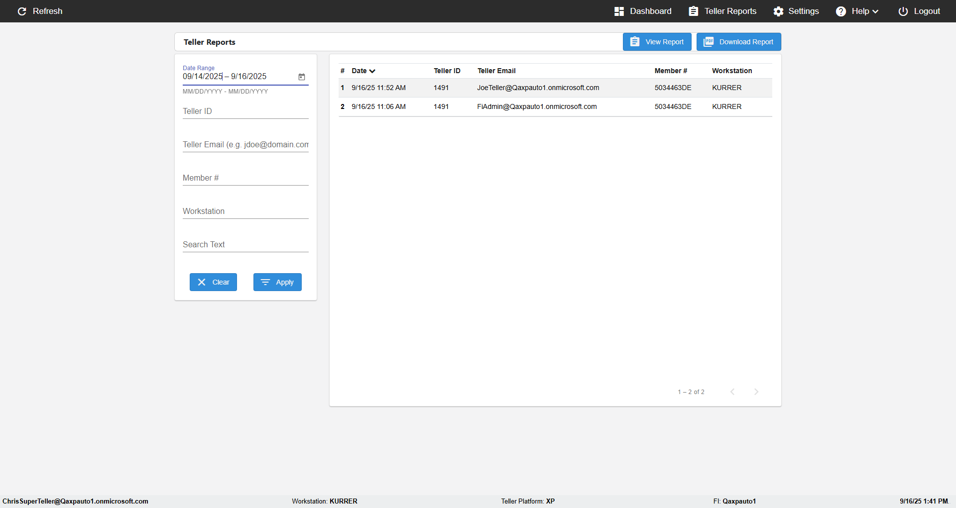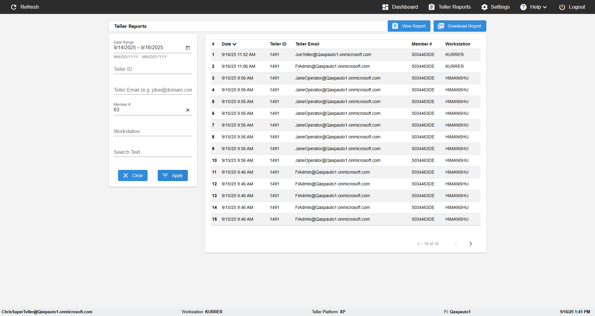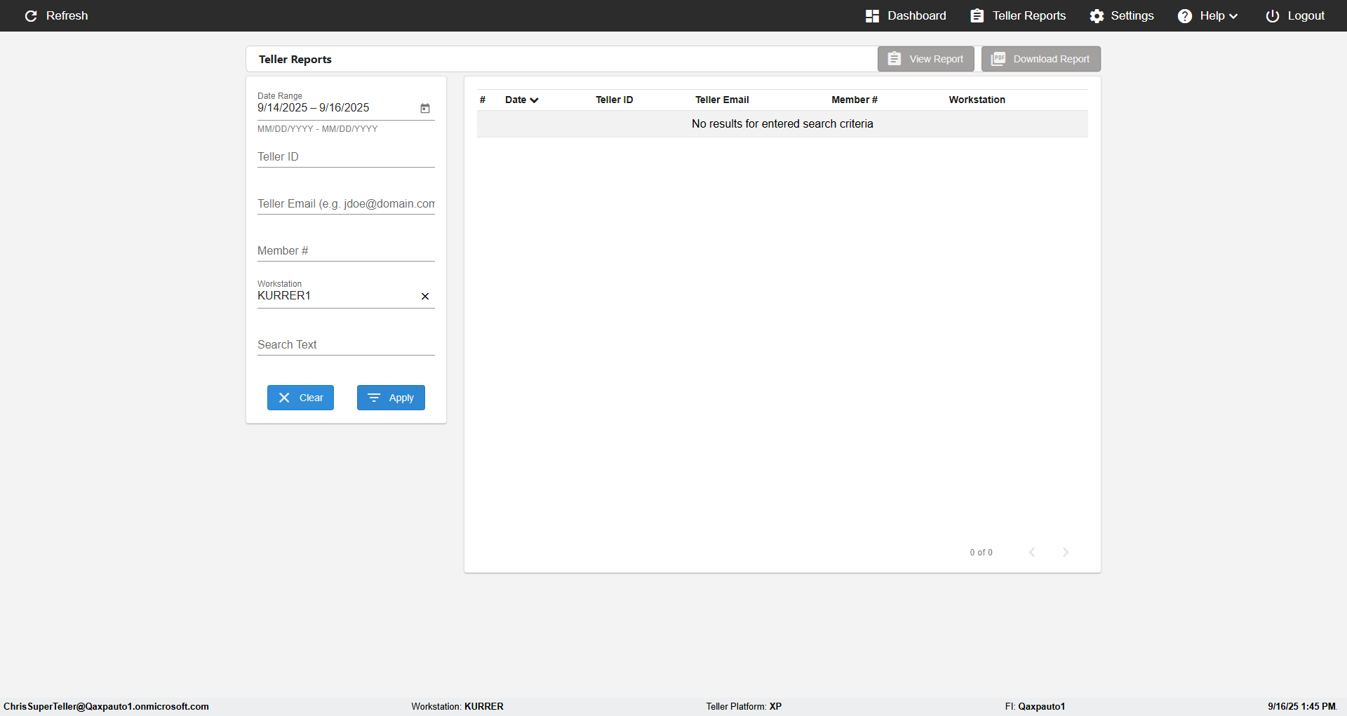 --- 16 Sep 13:37:42 011 - Page URL:: https://er-tellerportal-demo.azurewebsites.net/reports
