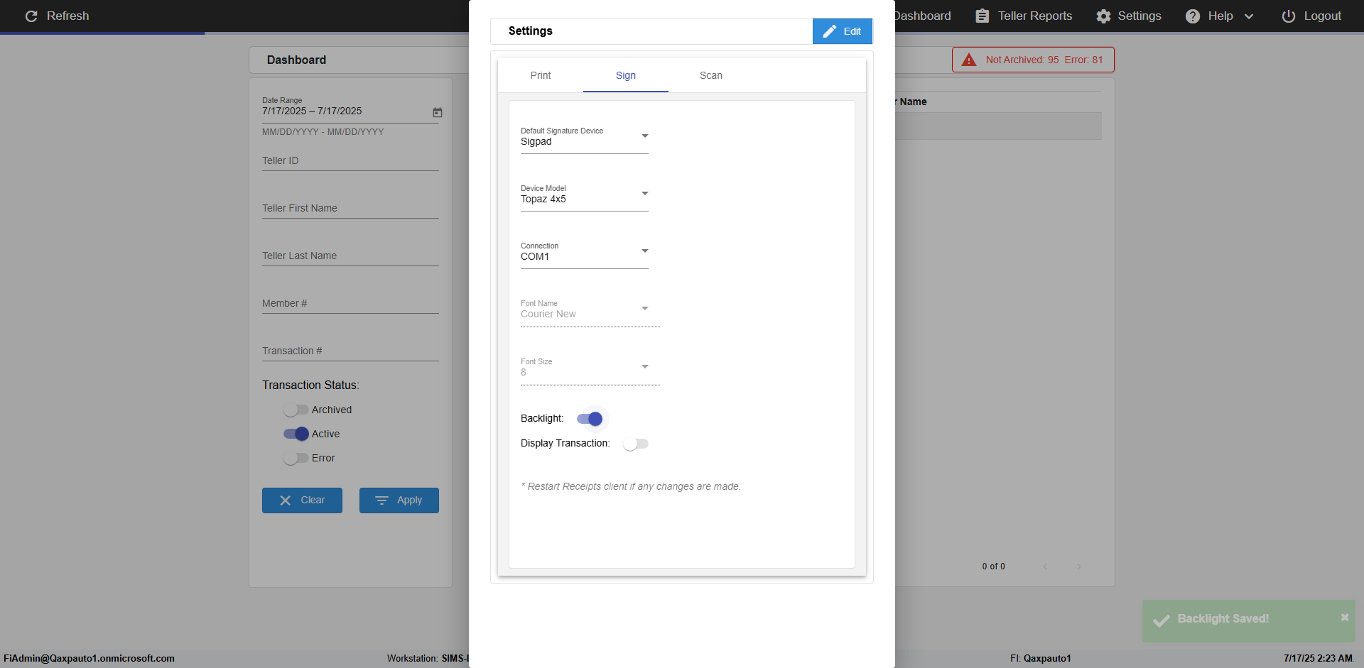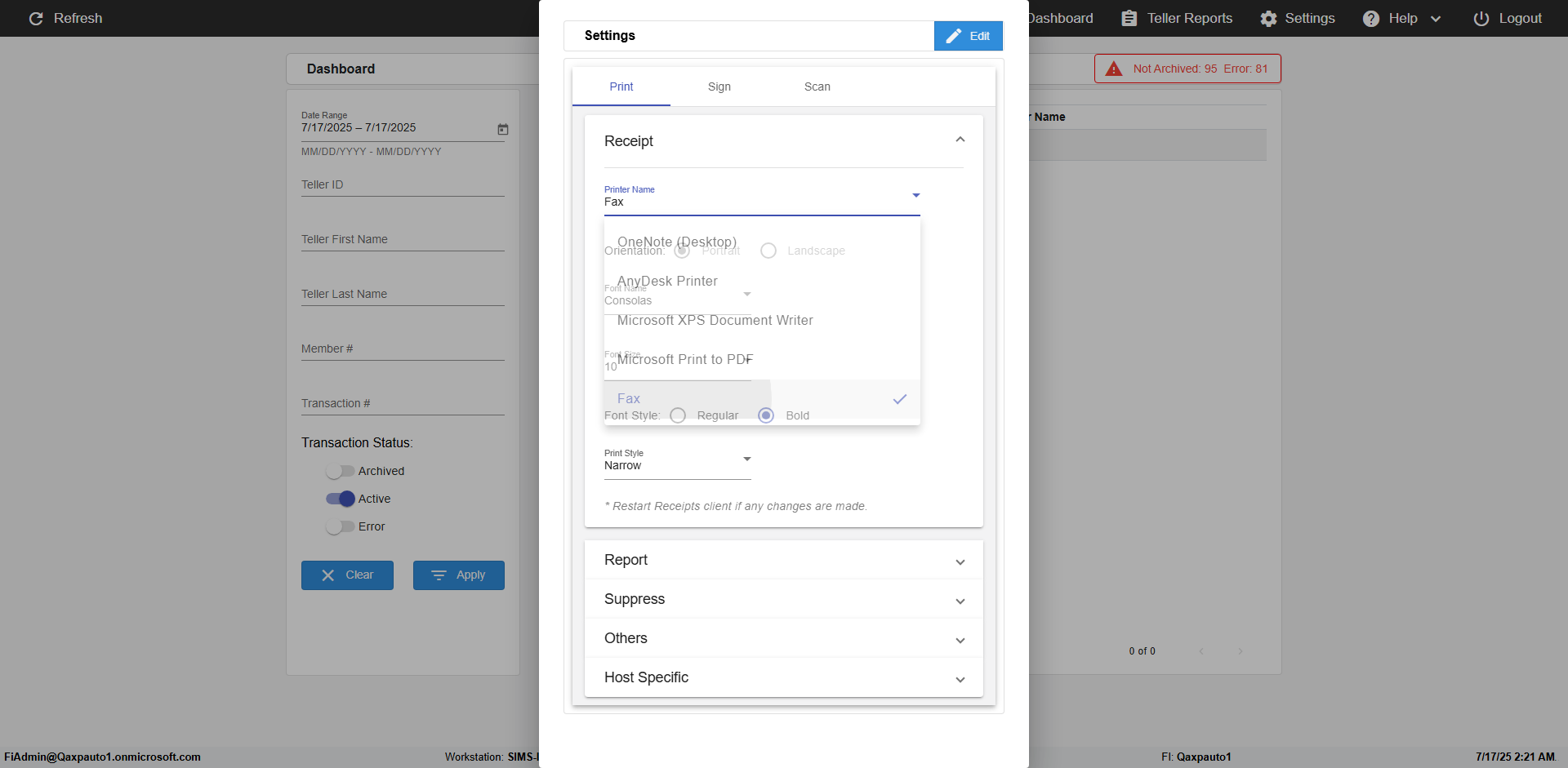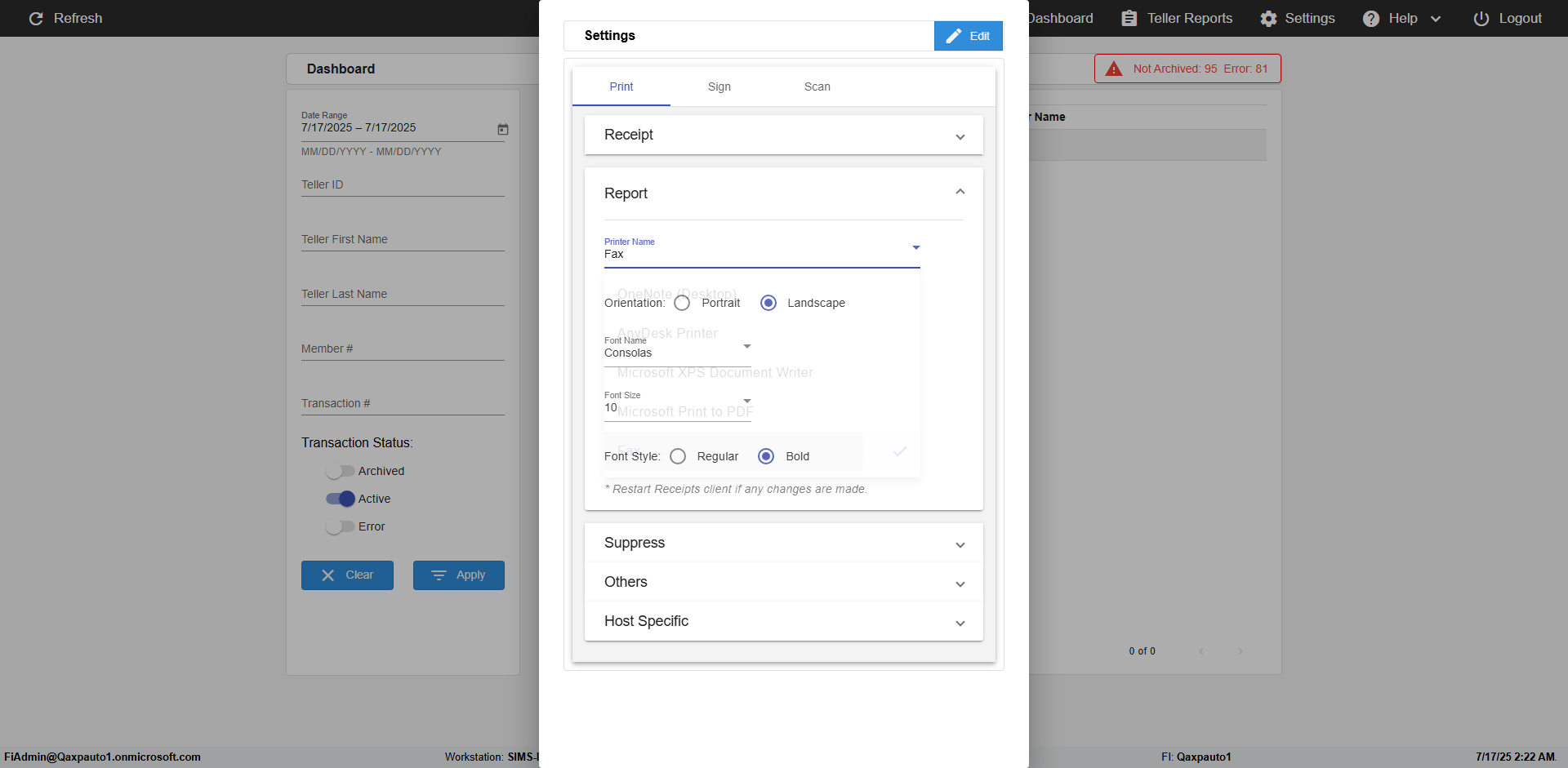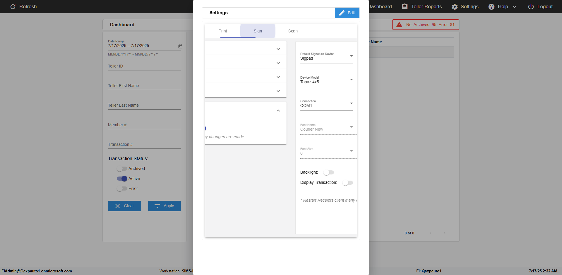 ({Description=verify Settings page In Teller Portal, Email=, Teller LastName=, print signatur=TRUE, errorint=, TestID=verifySettingsInTellerPage, Color Transactions=, Member=, UserPwd=iMM2022!, Transtatus=, Receipt=Printer Name-Fax;Name-Consolas;Size-10;Style-Bold,Narrow, Report=Printer Name-Fax;Orientation-Landscape;Name-Consolas;Size-10;Style-Bold, Teller=, Teller FirstName=, errorMessage=, Suppress=Log1-false;Log2-false;CuAddress-false;Member Address-false, Date=, print Disburstments=FALSE, Print signature line=print the sign, Type=, Transaction=, Header=, Username=fiAdmin@Qaxpauto1.onmicrosoft.com, SMS=, Sign=Default Signature Device-Sigpad;Device Model-Topaz 4x5;Connection-COM1;Backlight-true, Scan=Scanner Type-ScanShell 3000D;Image Mode-Singleside;USB Connection-false})