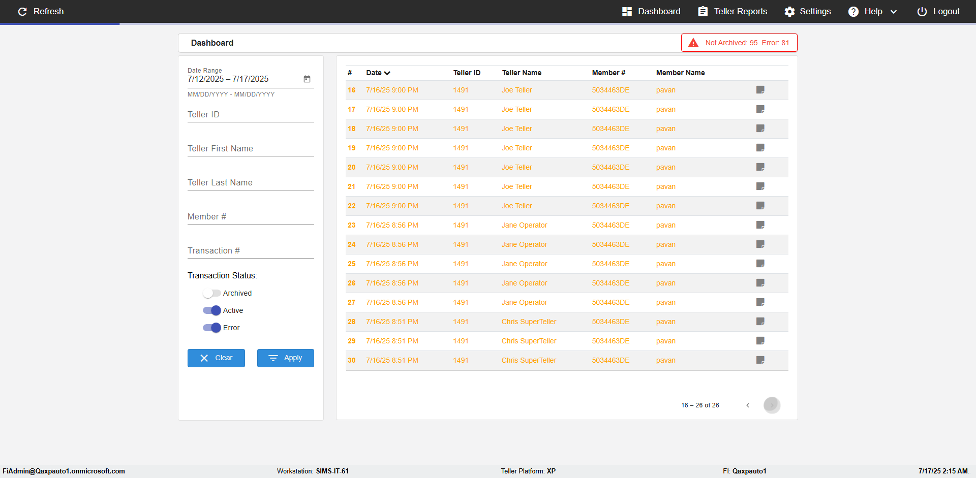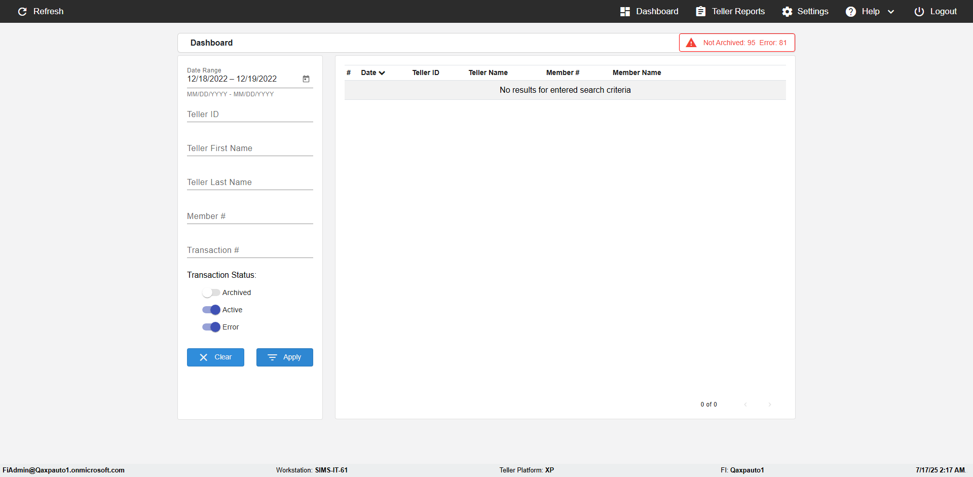 (Verify negative/invalid Search of the Date,Teller,Teller name,Member name in DashBoard page)