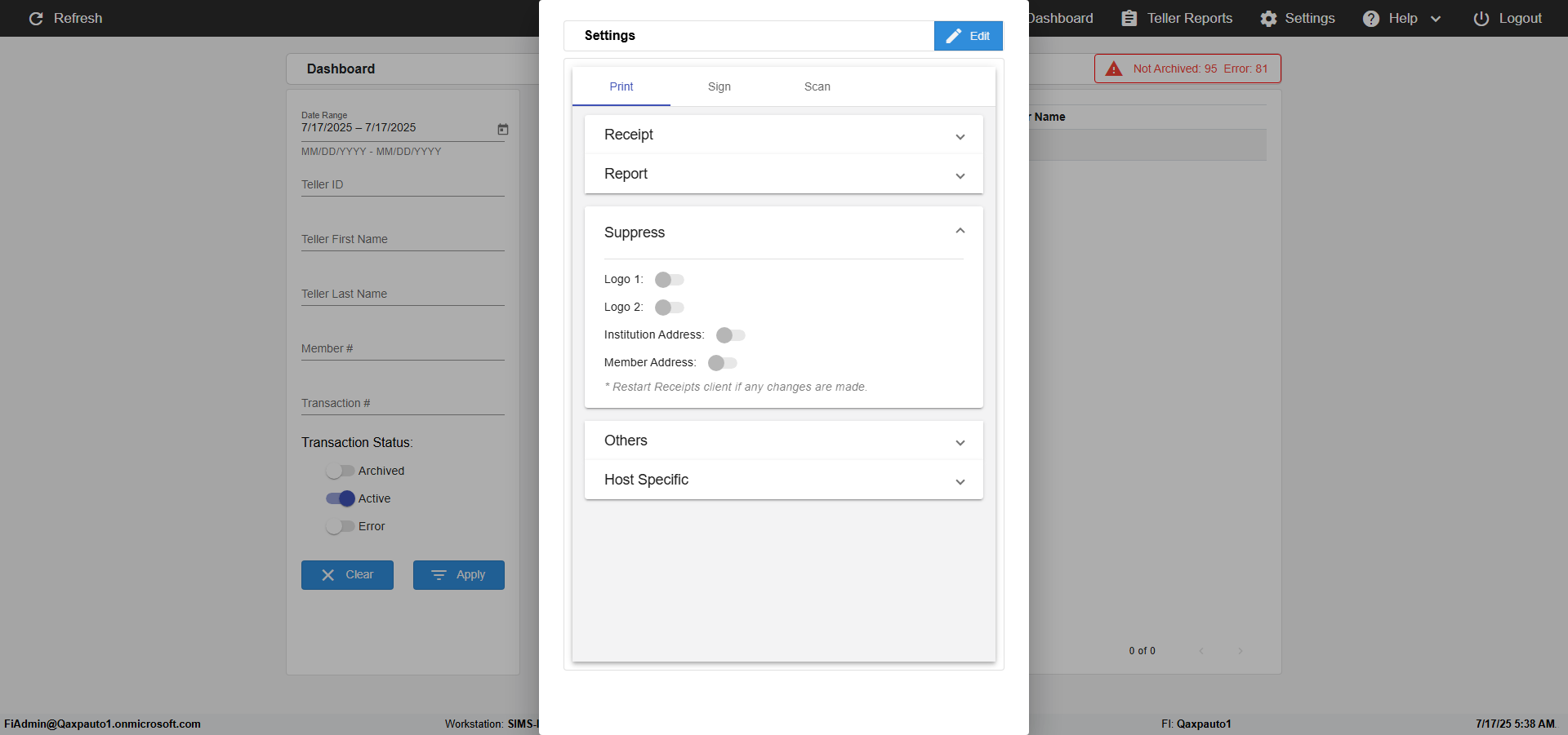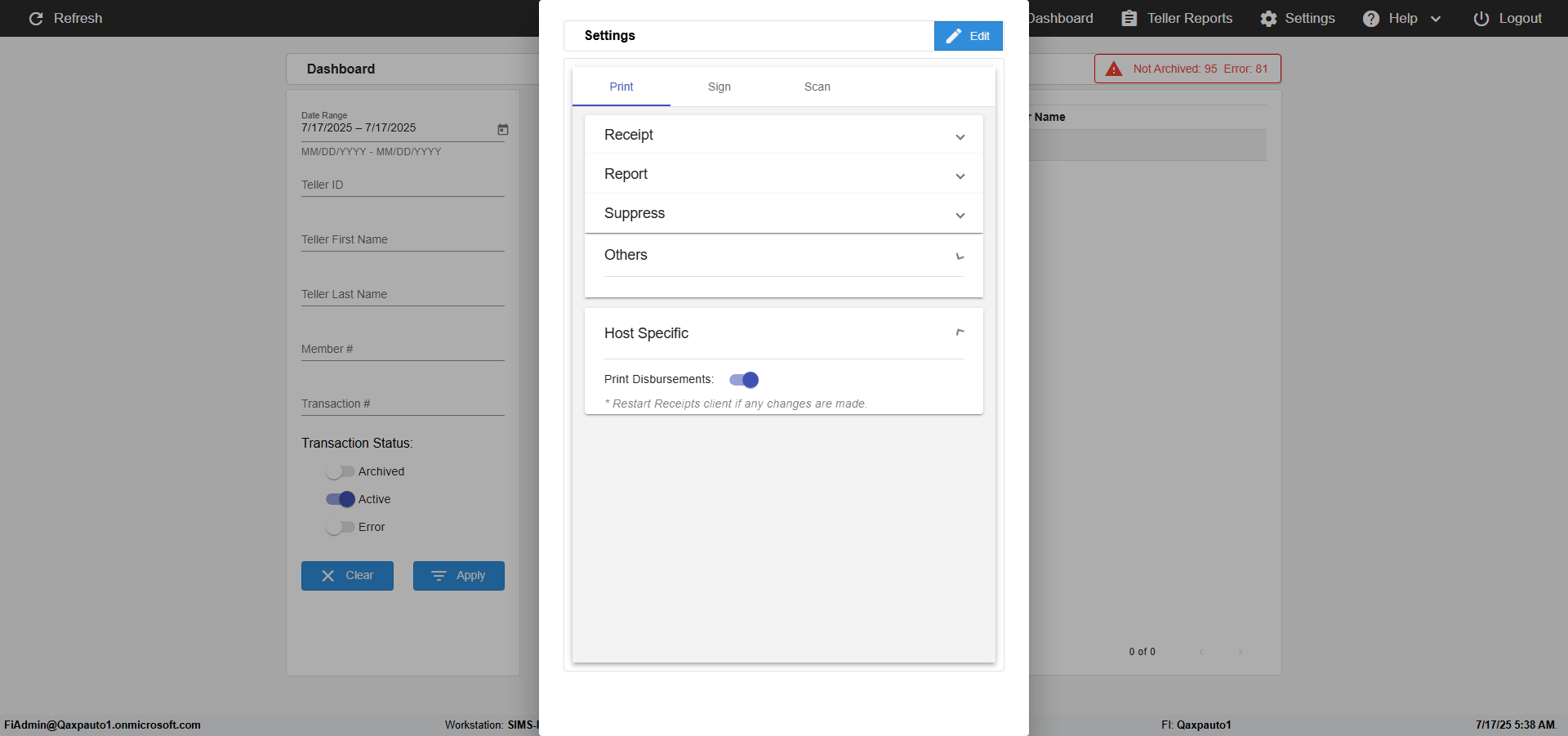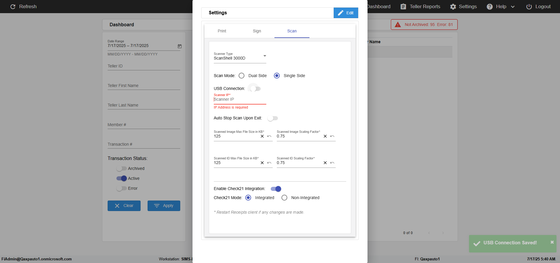 ({Description=verify Settings page In Teller Portal, Email=, Teller LastName=, print signatur=TRUE, errorint=, TestID=verifySettingsInTellerPage, Color Transactions=, Member=, UserPwd=iMM2022!, Transtatus=, Receipt=Printer Name-Fax;Name-Consolas;Size-10;Style-Bold,Narrow, Report=Printer Name-Fax;Orientation-Landscape;Name-Consolas;Size-10;Style-Bold, Teller=, Teller FirstName=, errorMessage=, Suppress=Log1-false;Log2-false;CuAddress-false;Member Address-false, Date=, print Disburstments=FALSE, Print signature line=print the sign, Type=, Transaction=, Header=, Username=fiAdmin@Qaxpauto1.onmicrosoft.com, SMS=, Sign=Default Signature Device-Sigpad;Device Model-Topaz 4x5;Connection-COM1;Backlight-true, Scan=Scanner Type-ScanShell 3000D;Image Mode-Singleside;USB Connection-false})
