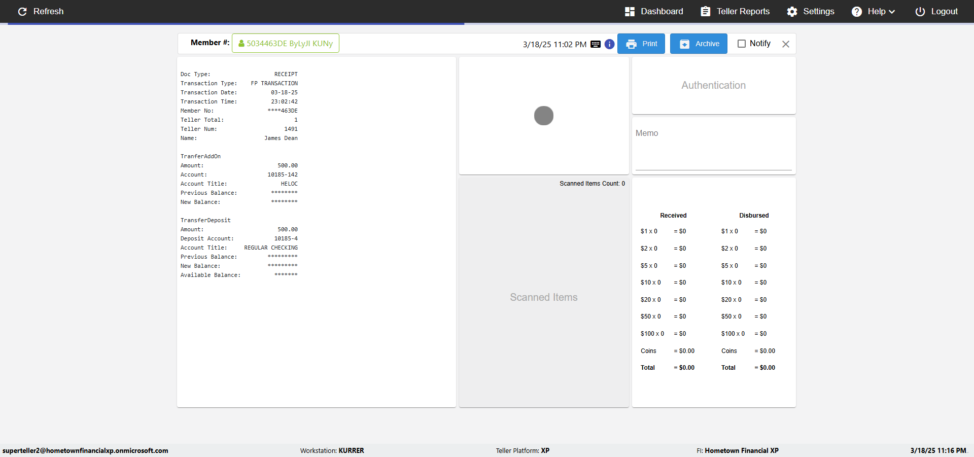 (verify MemberID And Archive Information for Normal teller In Receipt Page)