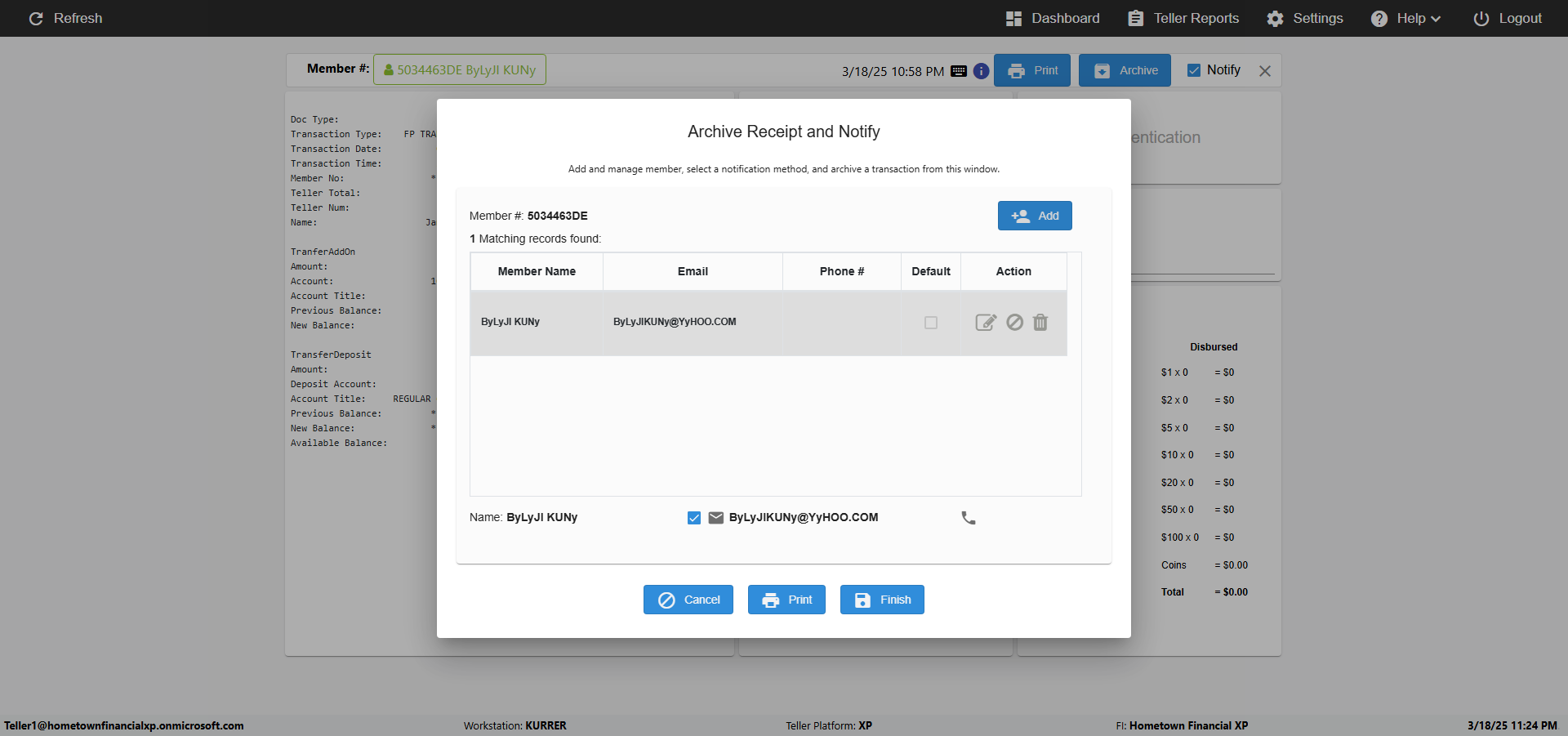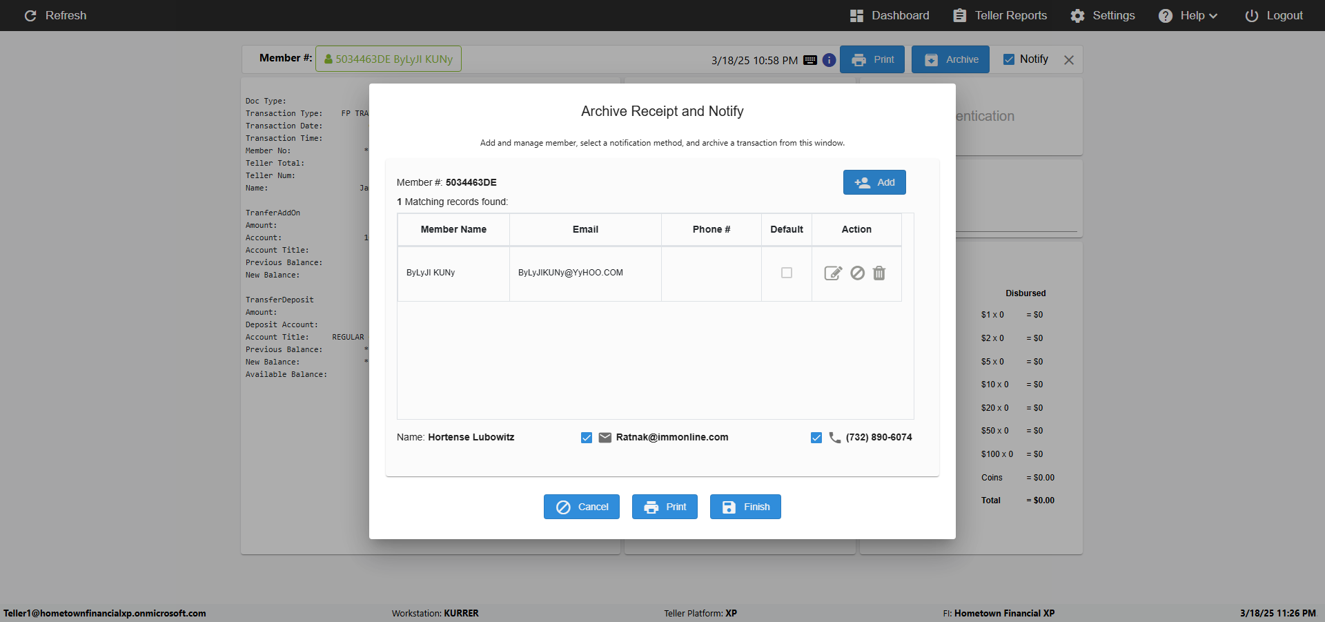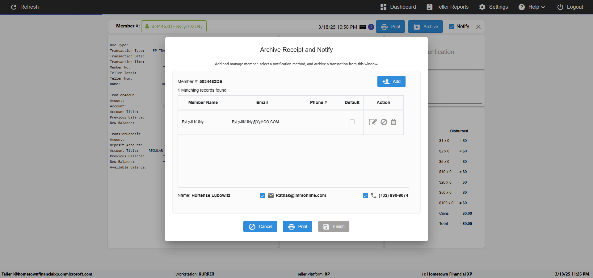 ({Toggel=TRUE, Archived Transactions=no, Description=verify Normal MemberID And Archive Information Update (Use Normal only), Email=Ratnak@immonline.com, Archive=, Document Type=, Notify=, SignatureTab=, DisbursedExpression=, Operation=, Teller LastName=, Disbursed cash=, errorint=, TestID=verifyNormalMemberAddUpdateContactInfo, Print=, DisbursedExpressionValue=, Phone=(732) 890-6074, ReceivedCashValue=, Member=5034463, UserPwd=iMM2025!, Transtatus=Archived-false;Active-true;Error-false, Docment ID=, Teller=, Teller FirstName=, errorMessage=, ReceivedExpressionValue=, Date=11/01/2021 - 11/20/2021, Platfrom=, Received cash=, Transaction=, Header=, Expression=, Username=Teller1@hometownfinancialxp.onmicrosoft.com, DisbursedCashValue=, FullName=Johna, ReceivedExpression=, SMS=, Memo=})