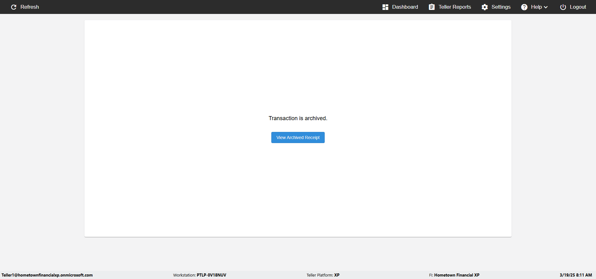 (verify MemberID And Archive Information for Normal teller In Receipt Page)