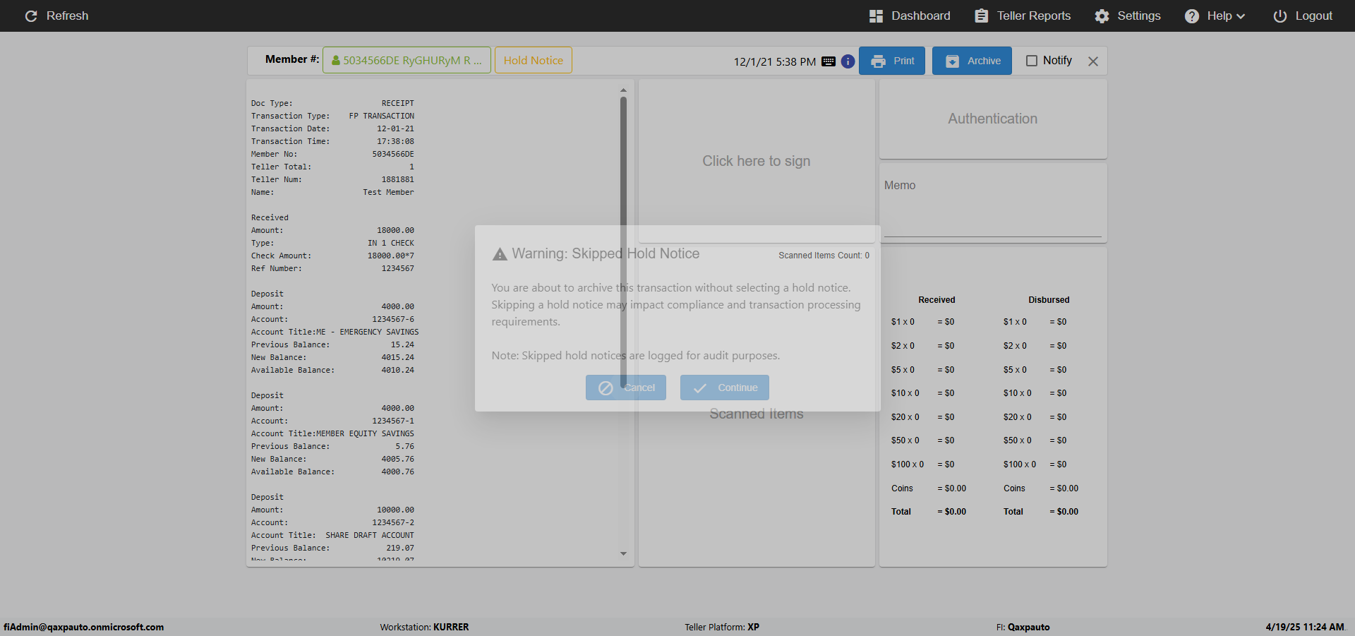 Actual(Passed): Successfully Checked the Hold Notice after opening Receipt Page[ScreenShot]