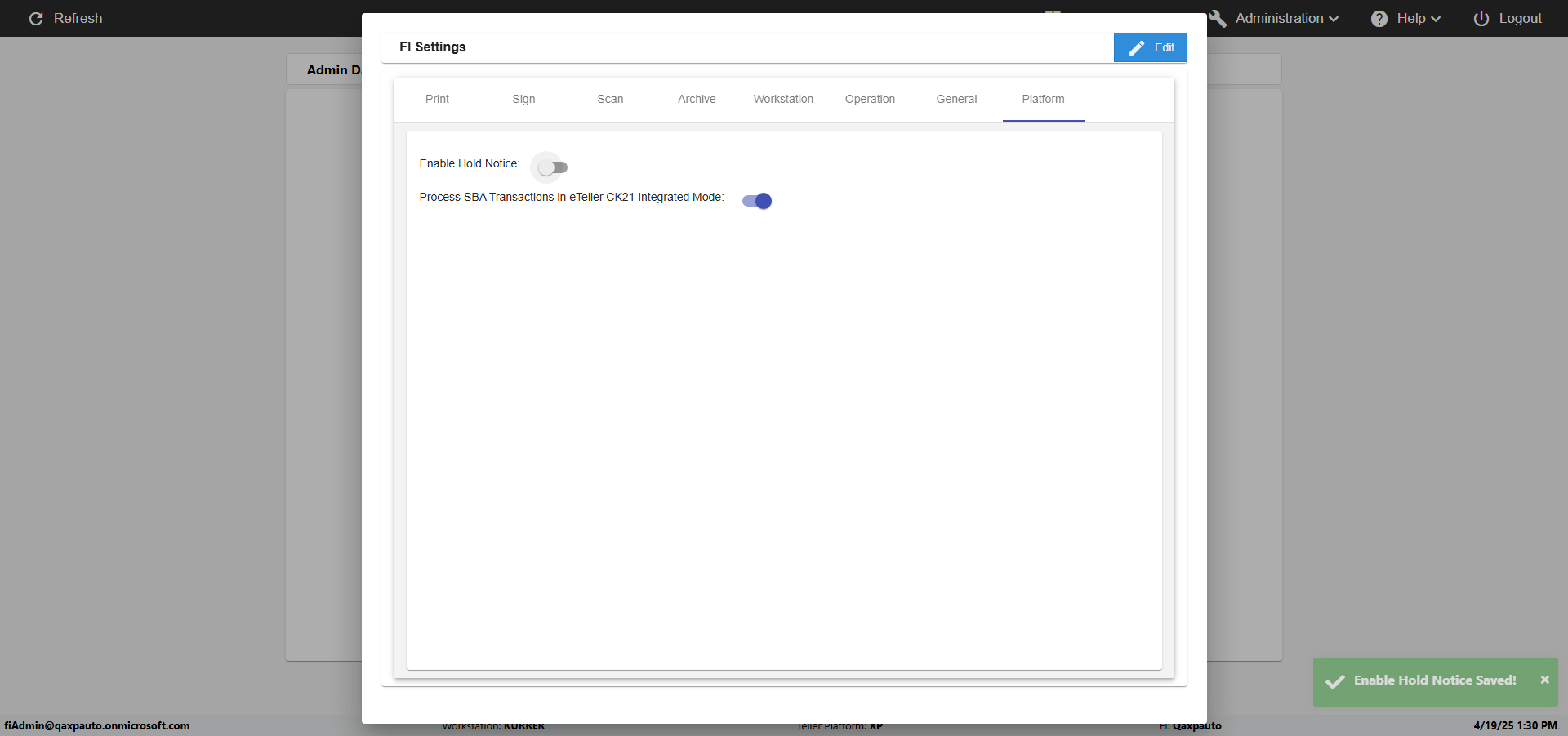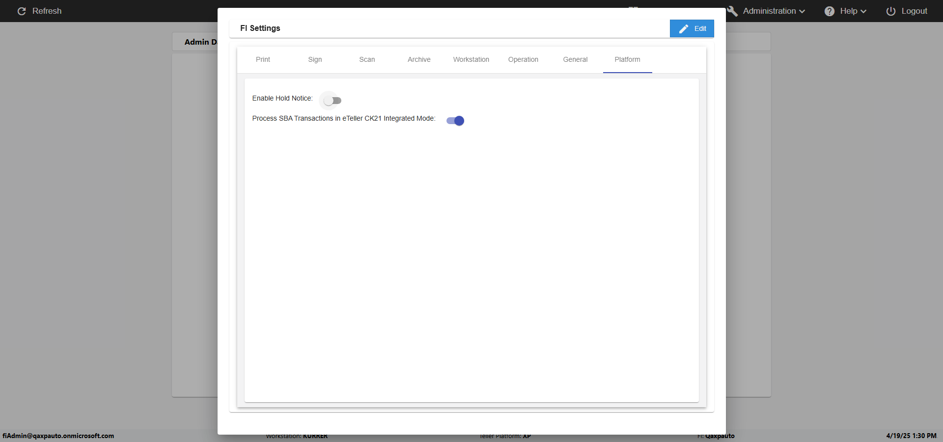 verifyFIPlatformSettingsInAdmin
