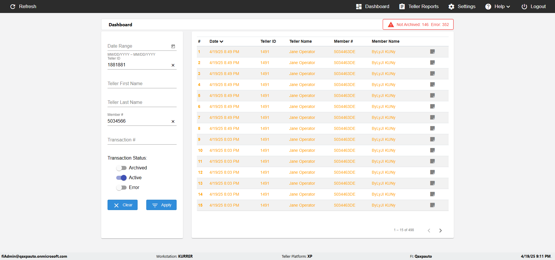 Actual(Passed): Sucessfully clicked on Settings button in Teller portal[ScreenShot]