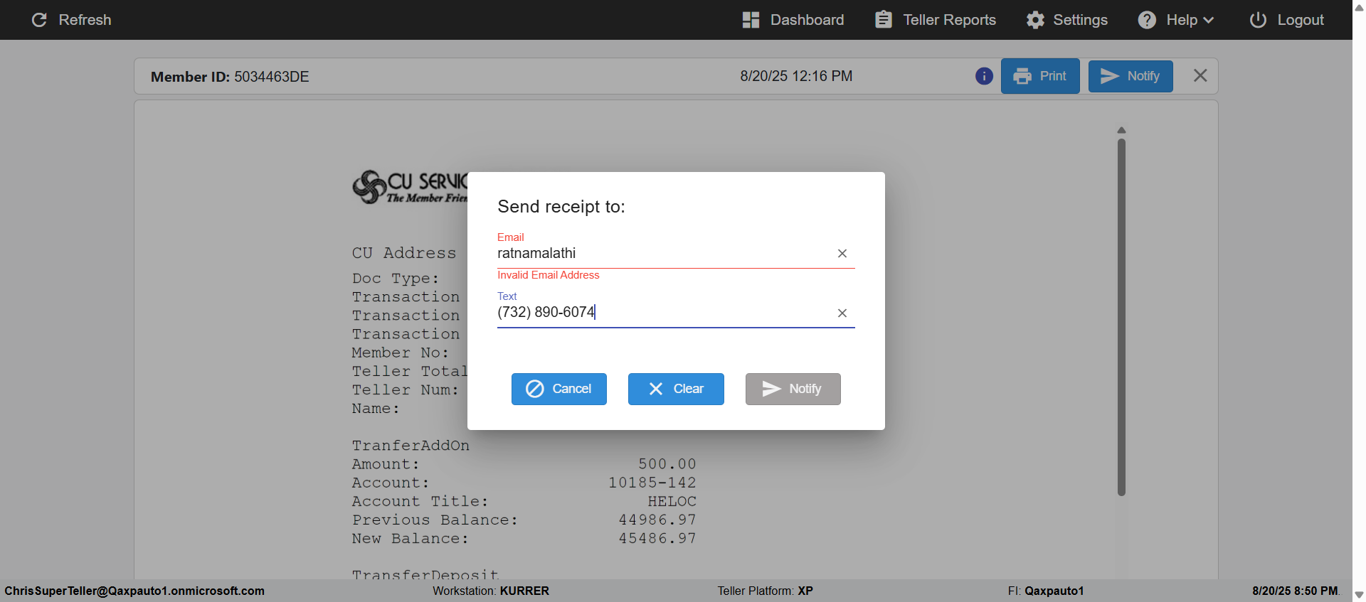 verifyInvalidEmailInNotifyInDashboardPage({Description=verify the invalid email in notify dashboard page, Email=ratnamalathi, Teller LastName=...)