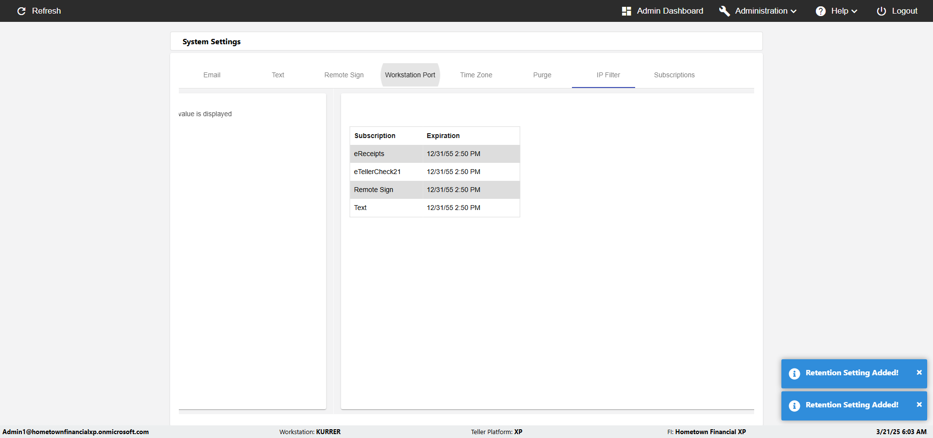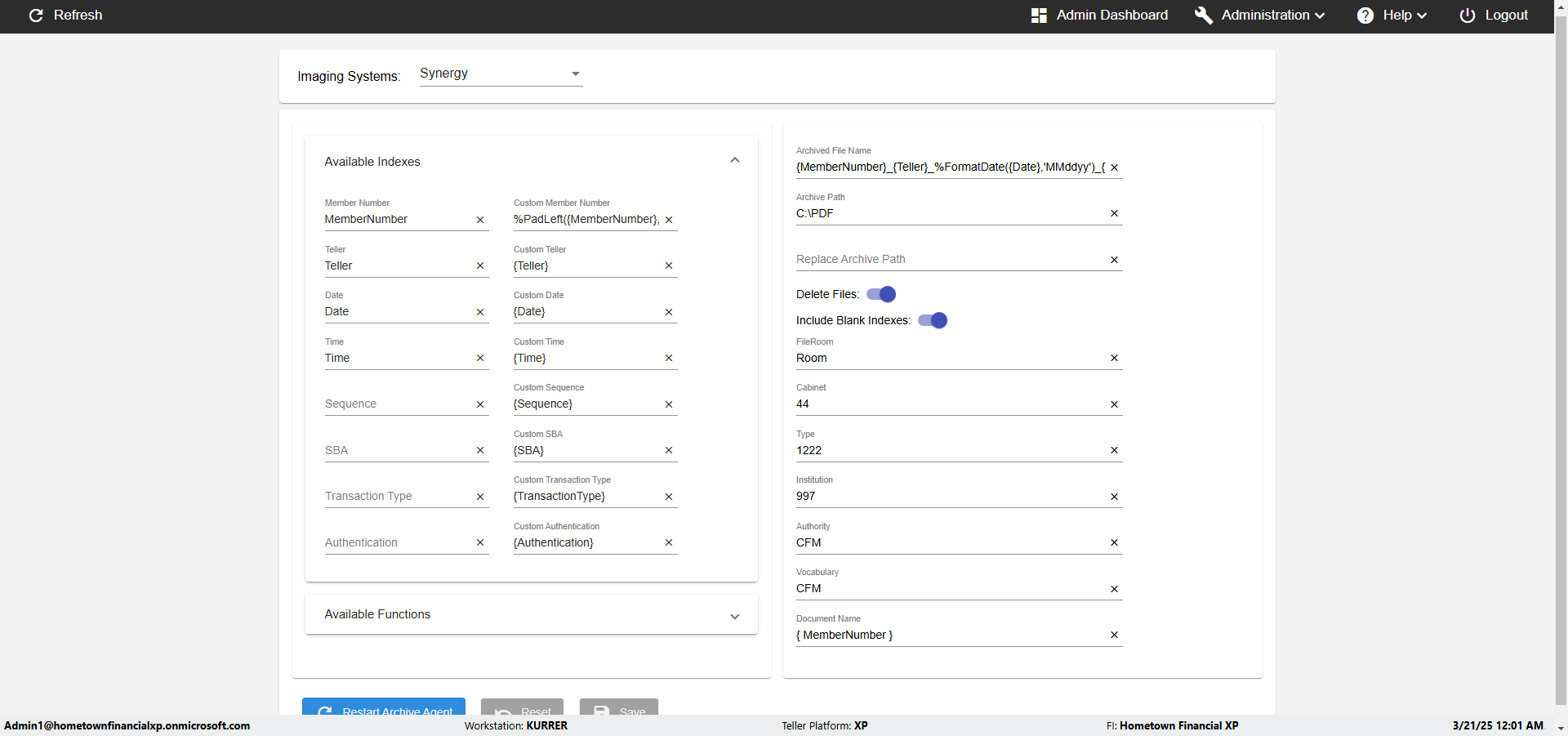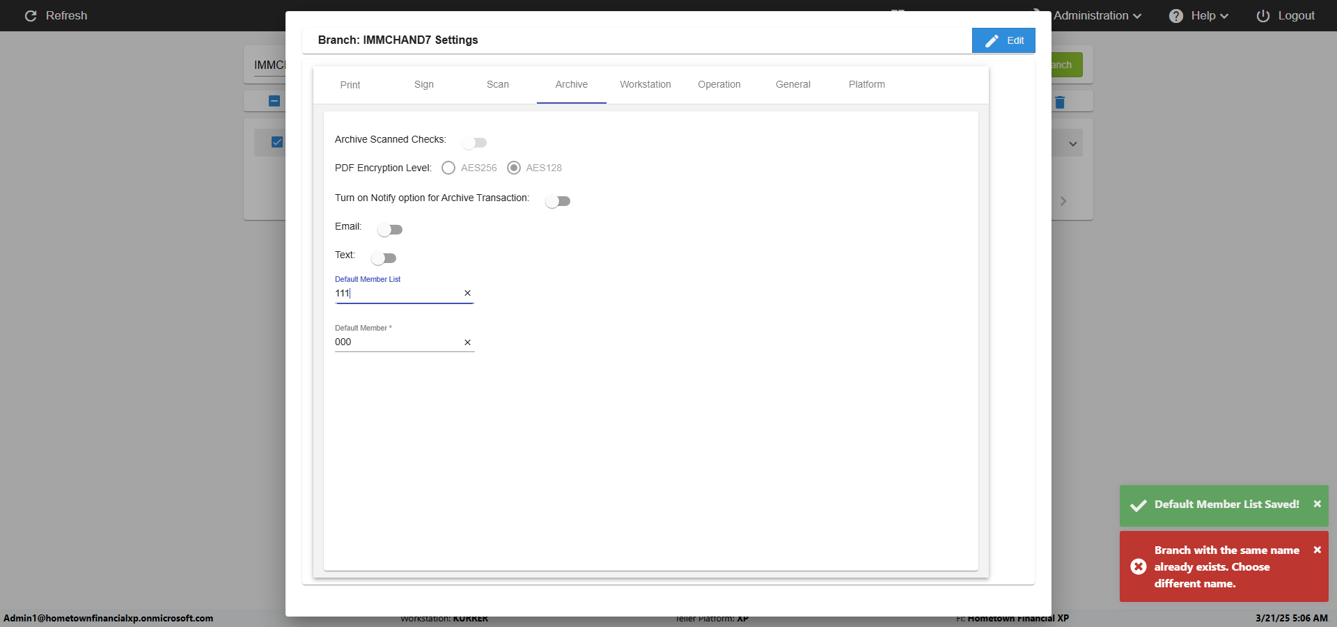 | {Archived Transactions=, Archive=, print signatur=, Name=, MultipleWorkstation=, WorkstationDeleteOption=, BranchName=, Agent=, UserPwd=iMM2022!, BranchDeleteOption=, Receipt=, Role=, Brand=, Print signature line=, TimeZone=, Header=, MappedOption=, Scan=, PortNumber=, FromWks=, FromBranch=, Description=Verify Imaging system UI elements, weeks=, Operation=, Clear=, TestID=verifyImagingSystem, Phone=, WorkstationName=, ToBranch=, ToWks=, Subscription Names=, FilePath=, Transtatus=Archived-false;Active-true;Error-false, Report=, Index_Field_Name=Archived File Name Template-{MemberNumber}_{Teller}_%FormatDate({Date},'MMddyy')_{Time}%GetCurrentDateTime('ffff').pdf ;Archived Path-C:\PDF;Include Blank Indexes-true;Delete Files-true;File Room-Room;Cabinet-44;Type-122212;Institution-9997;Authority-IMM;Vocabulary-IMM;Document Name-{ MemberNumber }-{ Teller };Archived Replace Path-C:\PDF;, Agents=, Text=, Hold Notice=, Suppress=, SchedualType=, Date=, Platfrom=, GroupId=, print Disburstments=, SMTP=, Imaging System=Synergy, MultipleBranches=, Username=Admin1@hometownfinancialxp.onmicrosoft.com, Sign=} |
