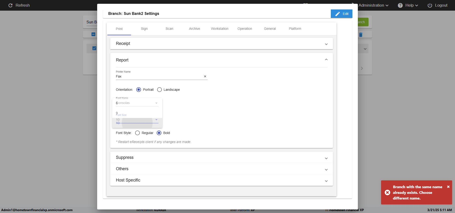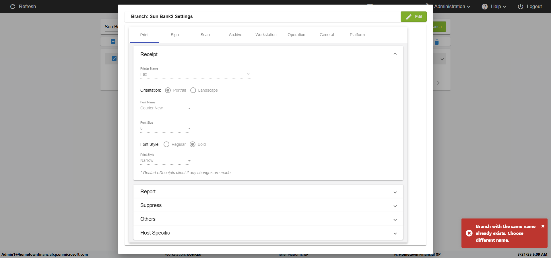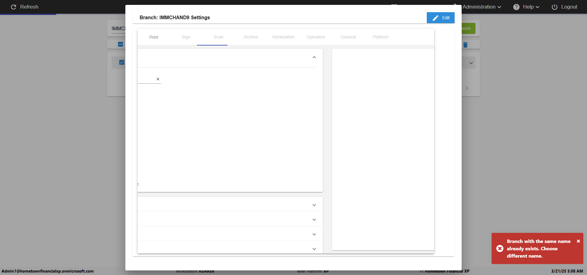 | {Archived Transactions=, Archive=, print signatur=, Name=, MultipleWorkstation=, WorkstationDeleteOption=, BranchName=RanBranch, Agent=, UserPwd=iMM2022!, BranchDeleteOption=True, Receipt=, Role=, Brand=, Print signature line=, TimeZone=, Header=, MappedOption=, Scan=, PortNumber=, FromWks=, FromBranch=, Description=Create Multiple Branches In Branches Page, weeks=, Operation=, Clear=, TestID=verifyAddMulitpleBrancesUsingJFairy, Phone=, WorkstationName=, ToBranch=, ToWks=, Subscription Names=, FilePath=, Transtatus=Archived-false;Active-true;Error-false, Report=, Index_Field_Name=, Agents=, Text=, Hold Notice=, Suppress=, SchedualType=, Date=, Platfrom=, GroupId=, print Disburstments=, SMTP=, Imaging System=, MultipleBranches=20, Username=Admin1@hometownfinancialxp.onmicrosoft.com, Sign=} |