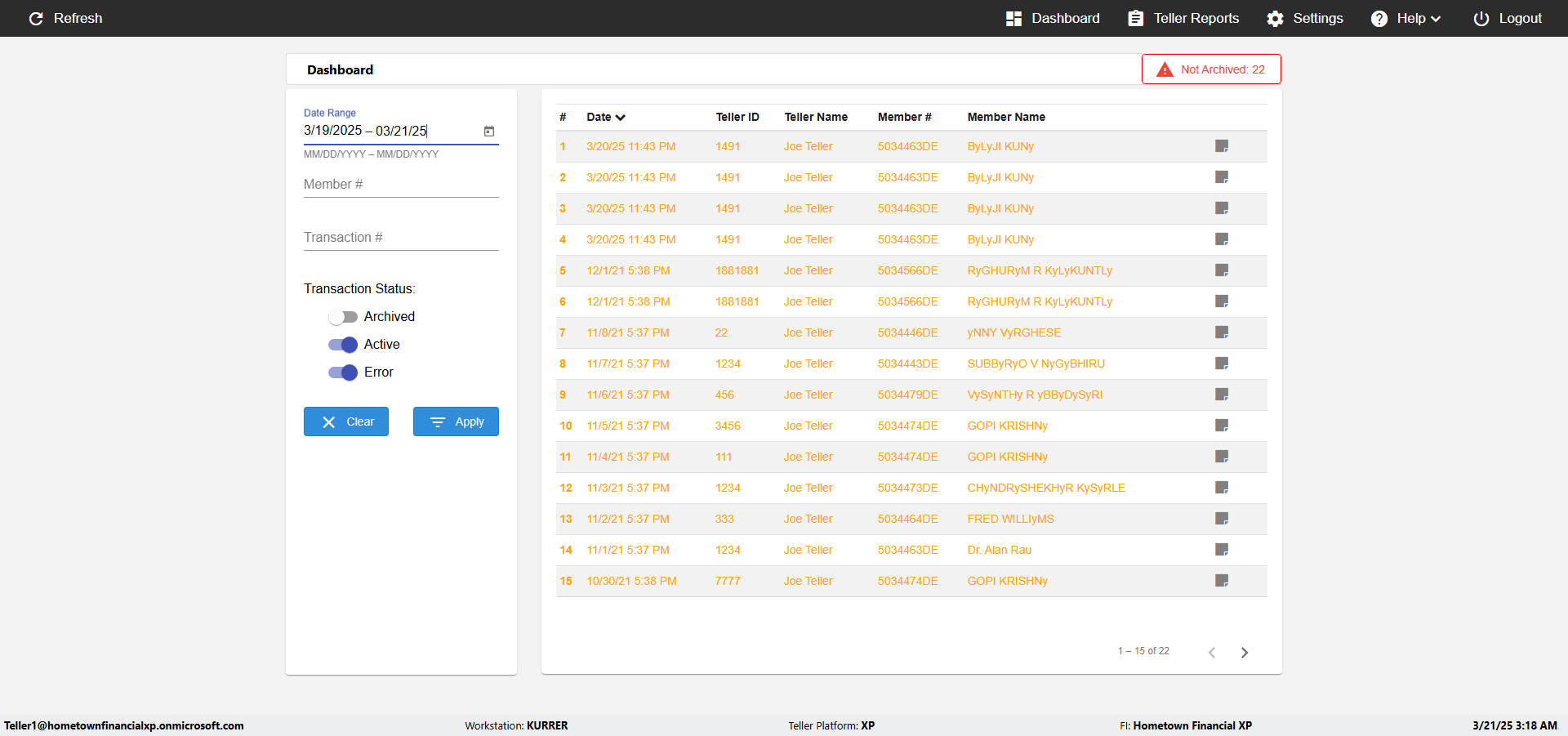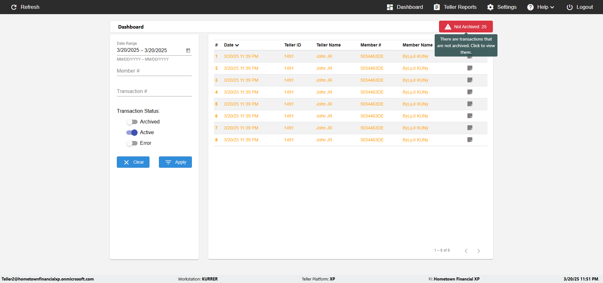 | {UserPwd=iMM2025!, Description=verify Search Elements In Report Page with Date and Teller ID, Teller ID=, errorMessage=, Teller Email=, View=, Date=2, Clear=, Workstation=, errorint=, TestID=verifySortingInReports, Transaction=, Header=Teller ID,, Username=superteller2@hometownfinancialxp.onmicrosoft.com, Export=, Member #=, Search Text=, Level=} |