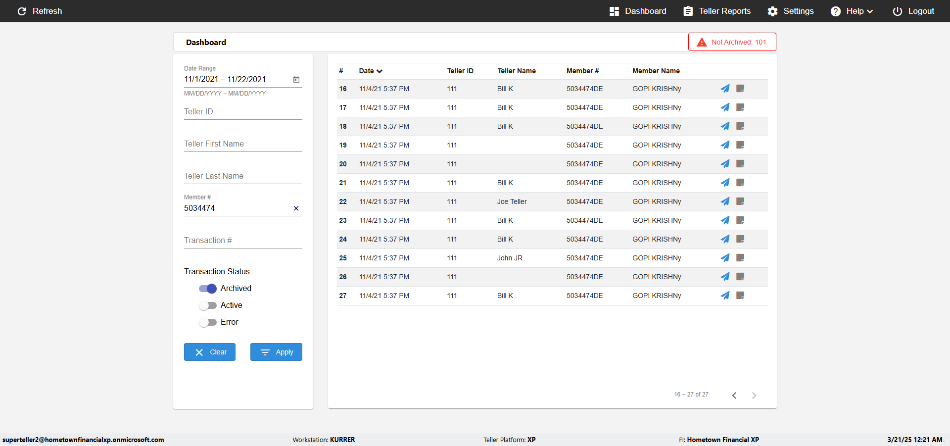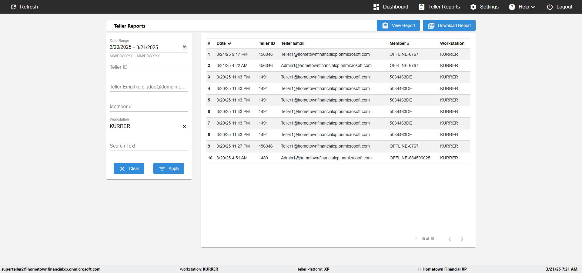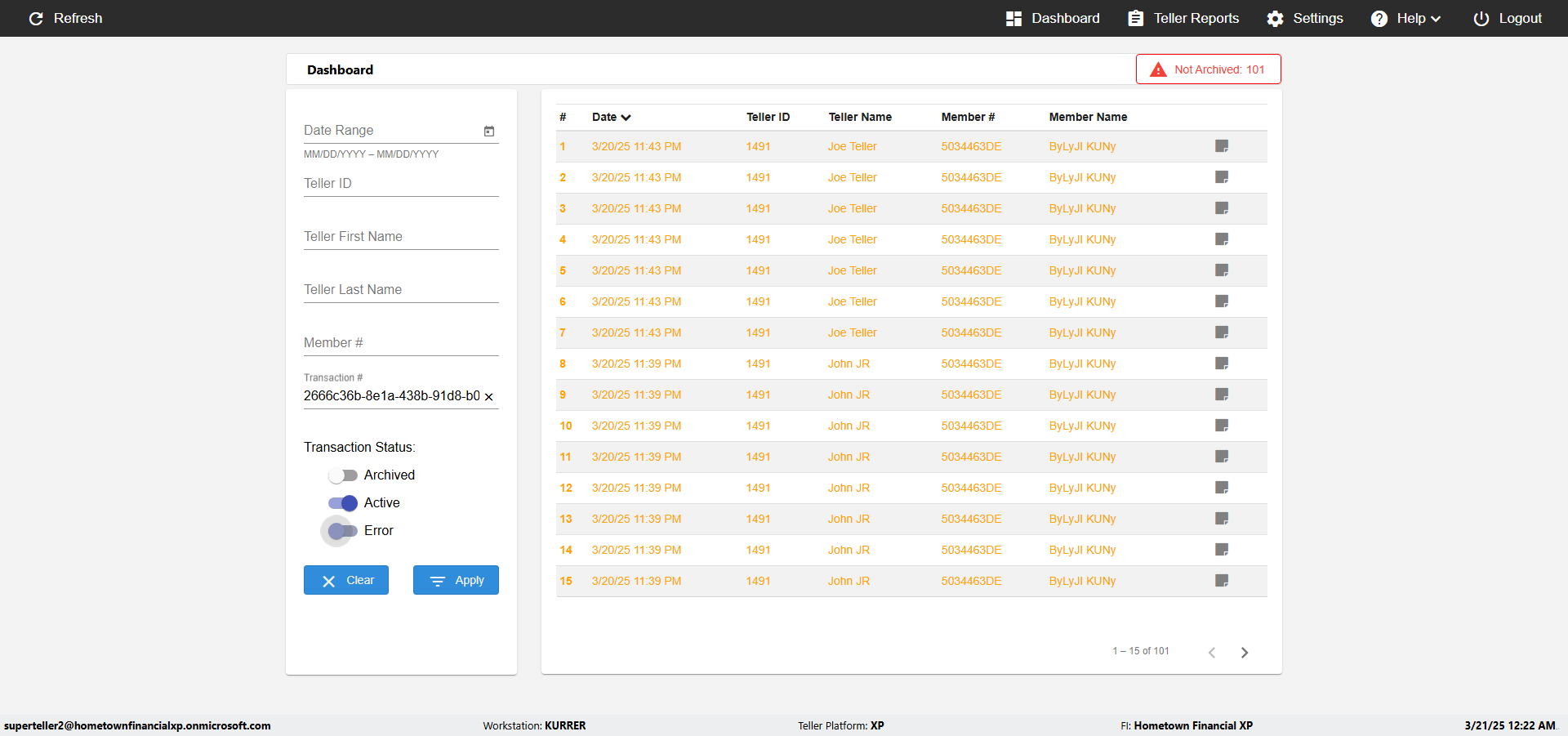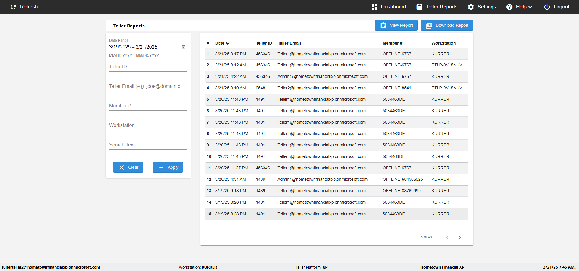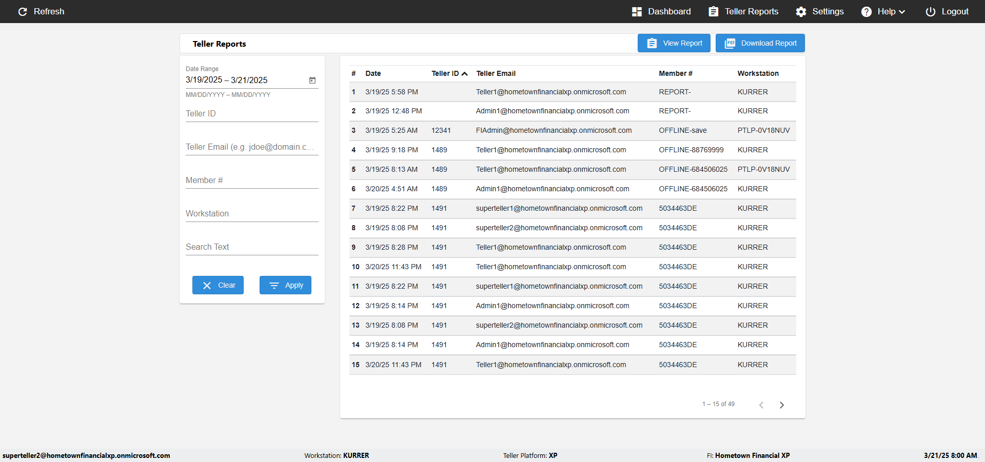 | {UserPwd=iMM2025!, Description=verify Search Elements In Report Page with Date and Teller Email, Teller ID=, errorMessage=, Teller Email=, View=, Date=2, Clear=, Workstation=, errorint=, TestID=verifySortingInReports, Transaction=, Header=Teller Email,, Username=superteller2@hometownfinancialxp.onmicrosoft.com, Export=, Member #=, Search Text=, Level=} |