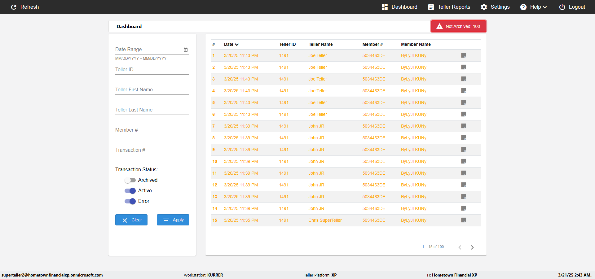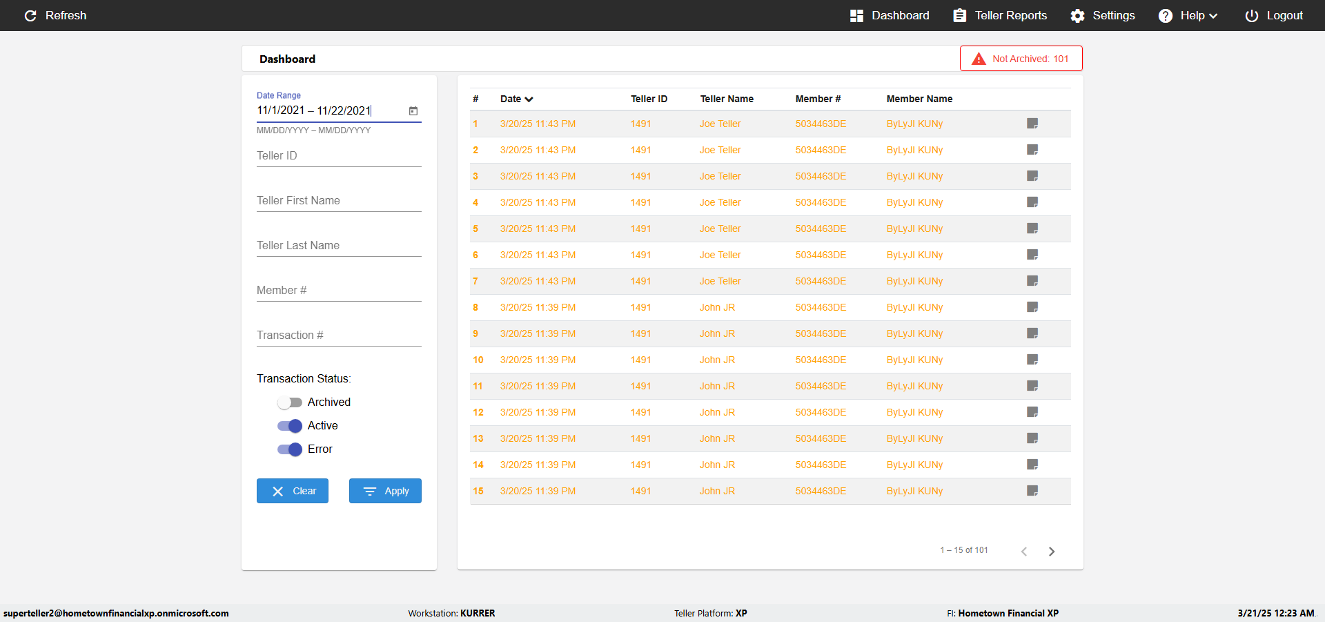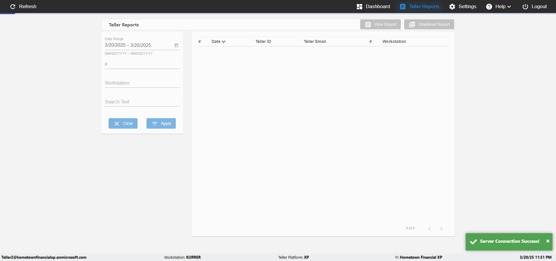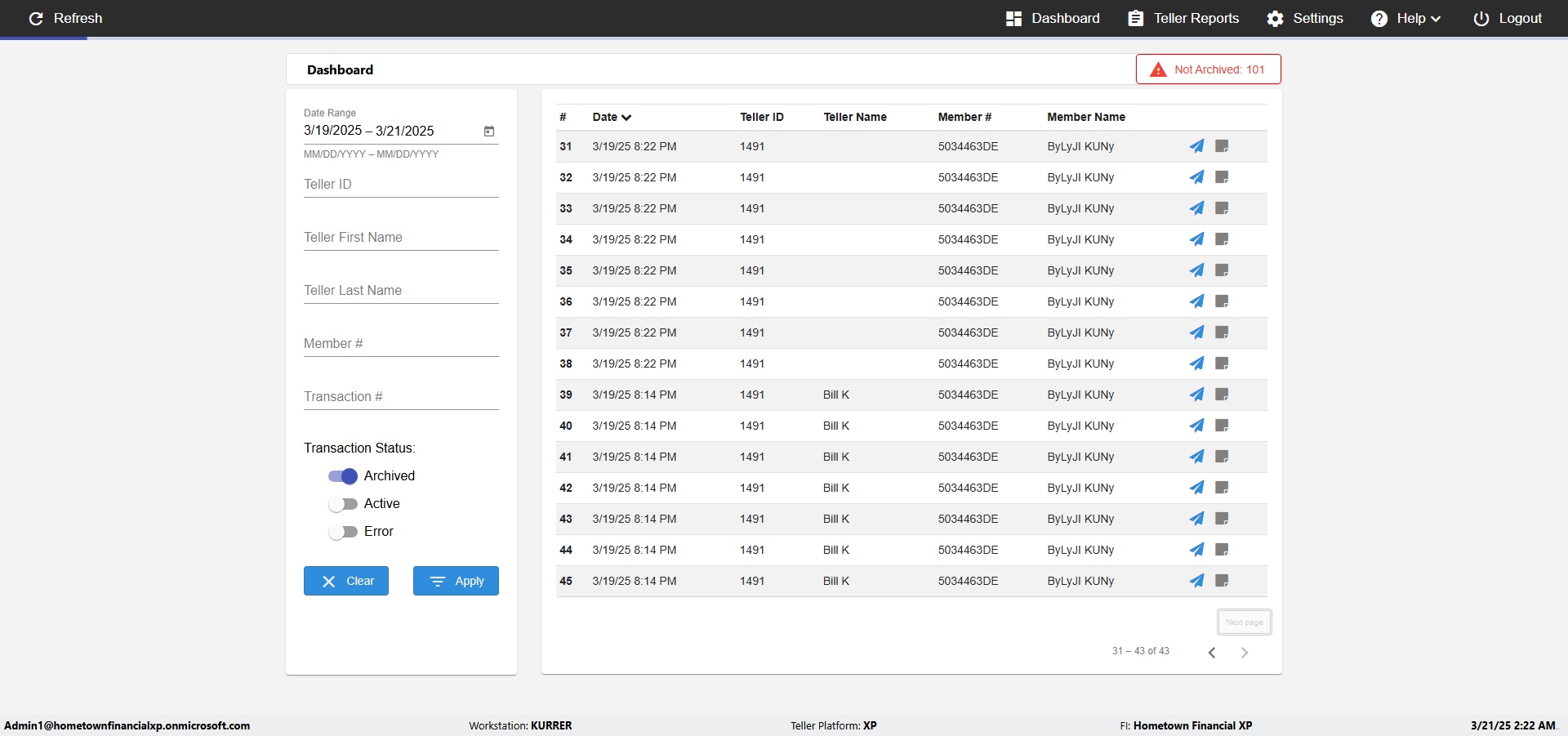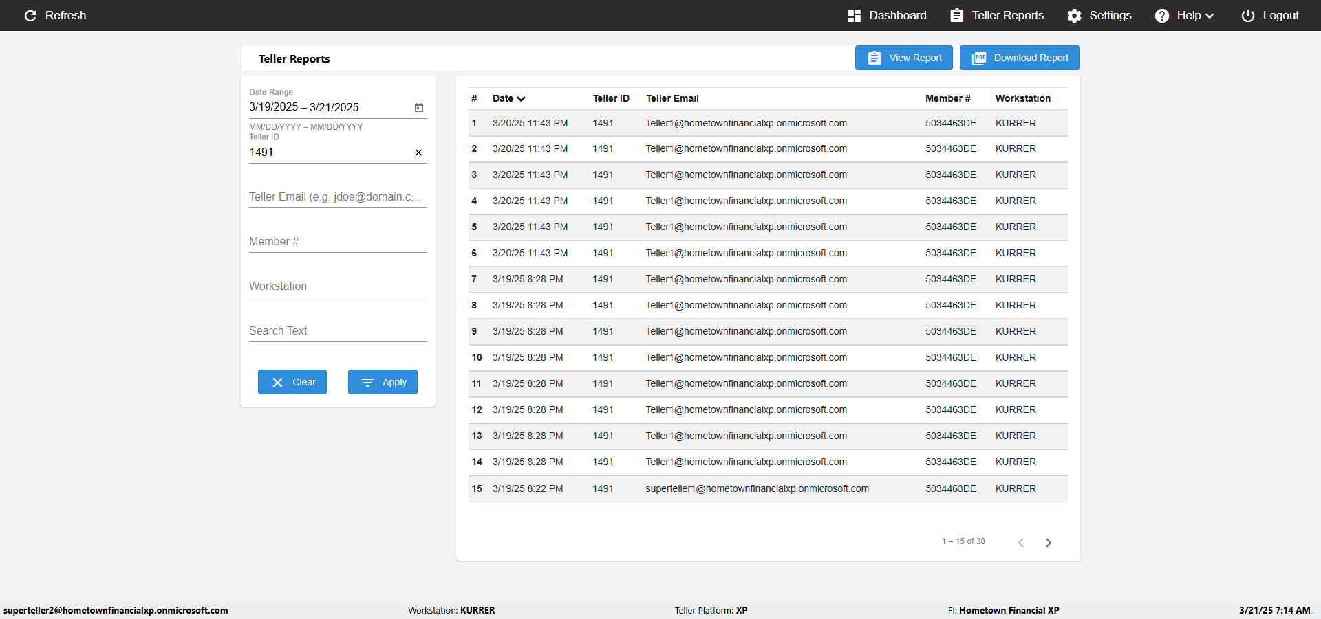 | {UserPwd=iMM2025!, Description=verify Search Elements In Report Page with Date and Teller Email, Teller ID=, errorMessage=, Teller Email=, View=, Date=2, Clear=, Workstation=, errorint=, TestID=verifySortingInReports, Transaction=, Header=Teller Email,, Username=superteller2@hometownfinancialxp.onmicrosoft.com, Export=, Member #=, Search Text=, Level=} |