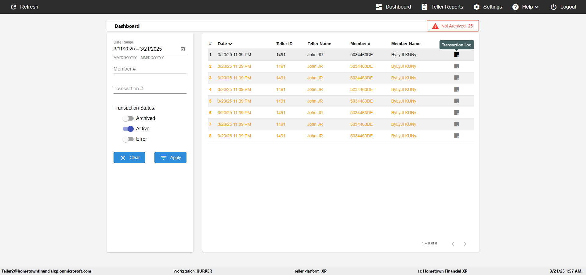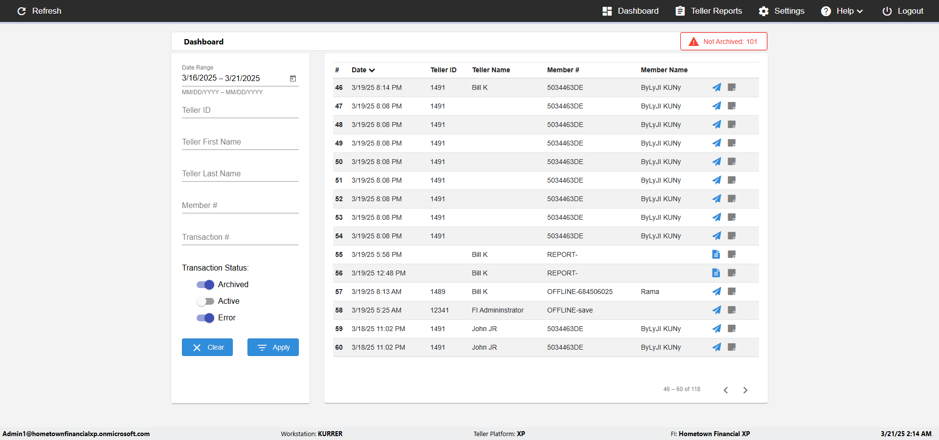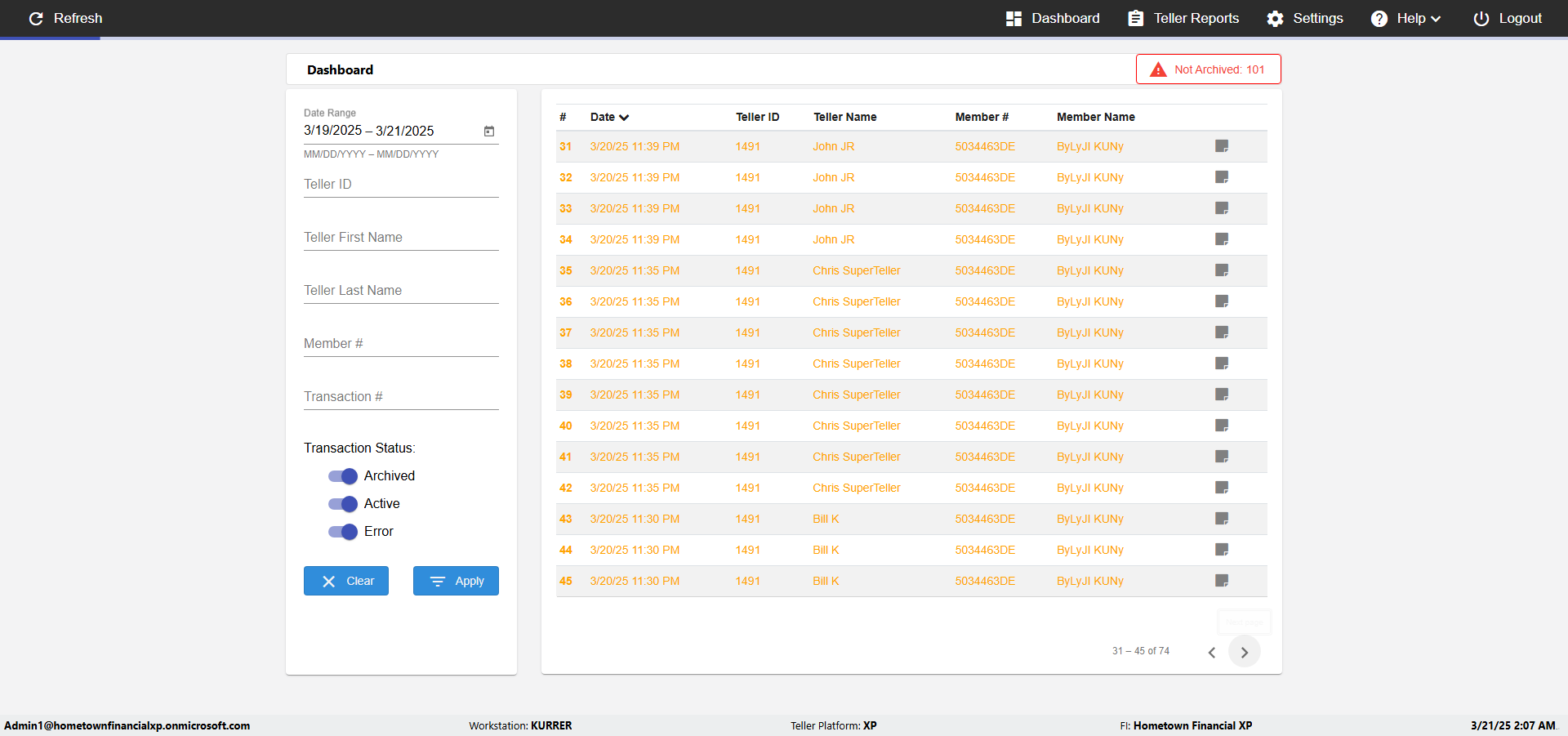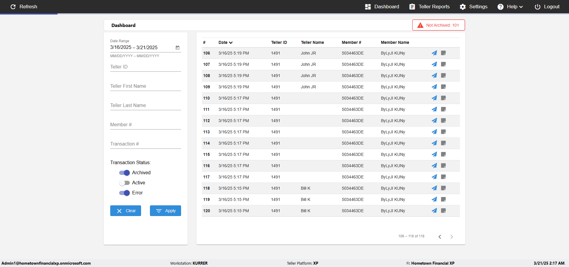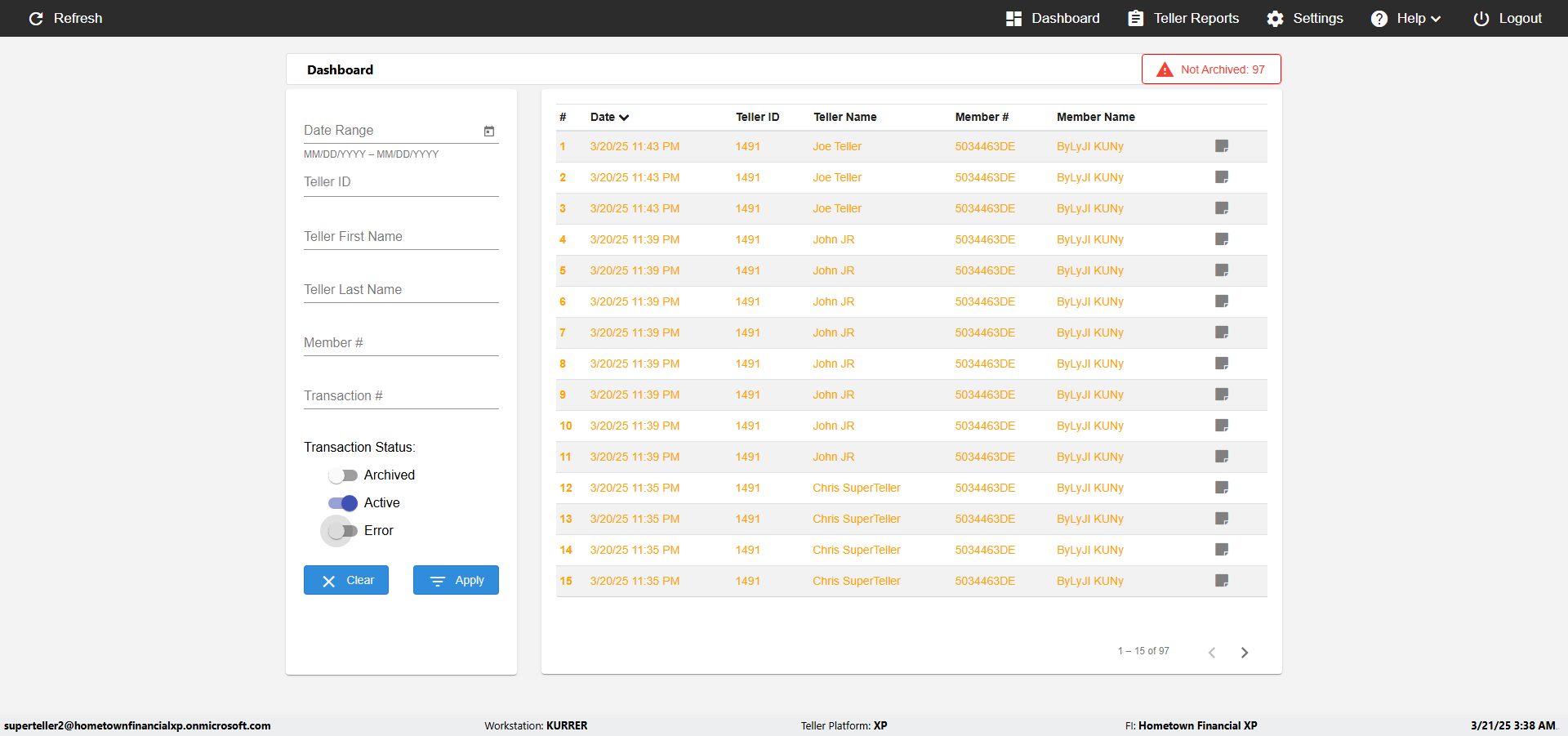| {UserPwd=iMM2025!, Description=verify Search Elements In Report Page with Date and Teller Email, Teller ID=, errorMessage=, Teller Email=, View=, Date=2, Clear=, Workstation=, errorint=, TestID=verifySortingInReports, Transaction=, Header=Teller Email,, Username=superteller2@hometownfinancialxp.onmicrosoft.com, Export=, Member #=, Search Text=, Level=} |