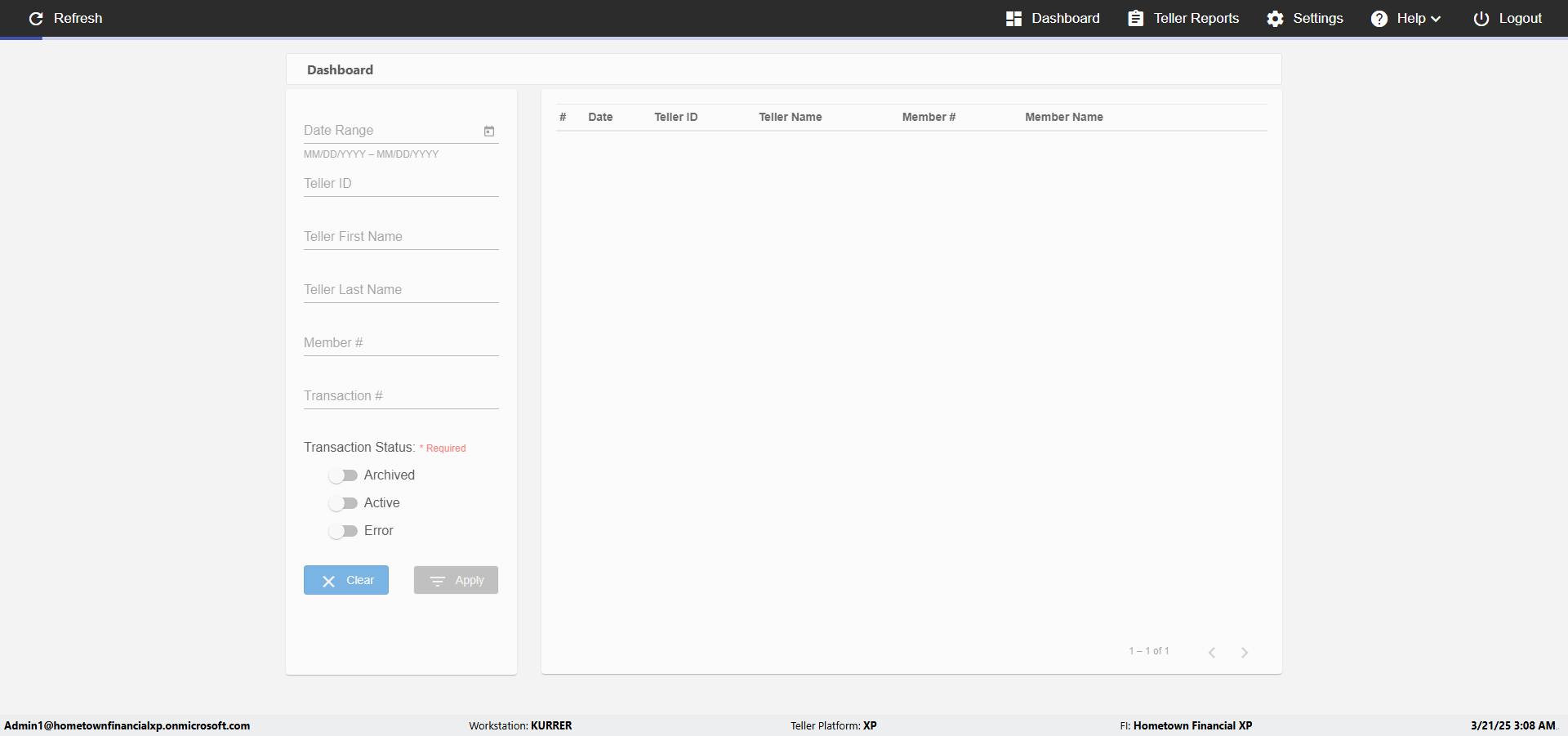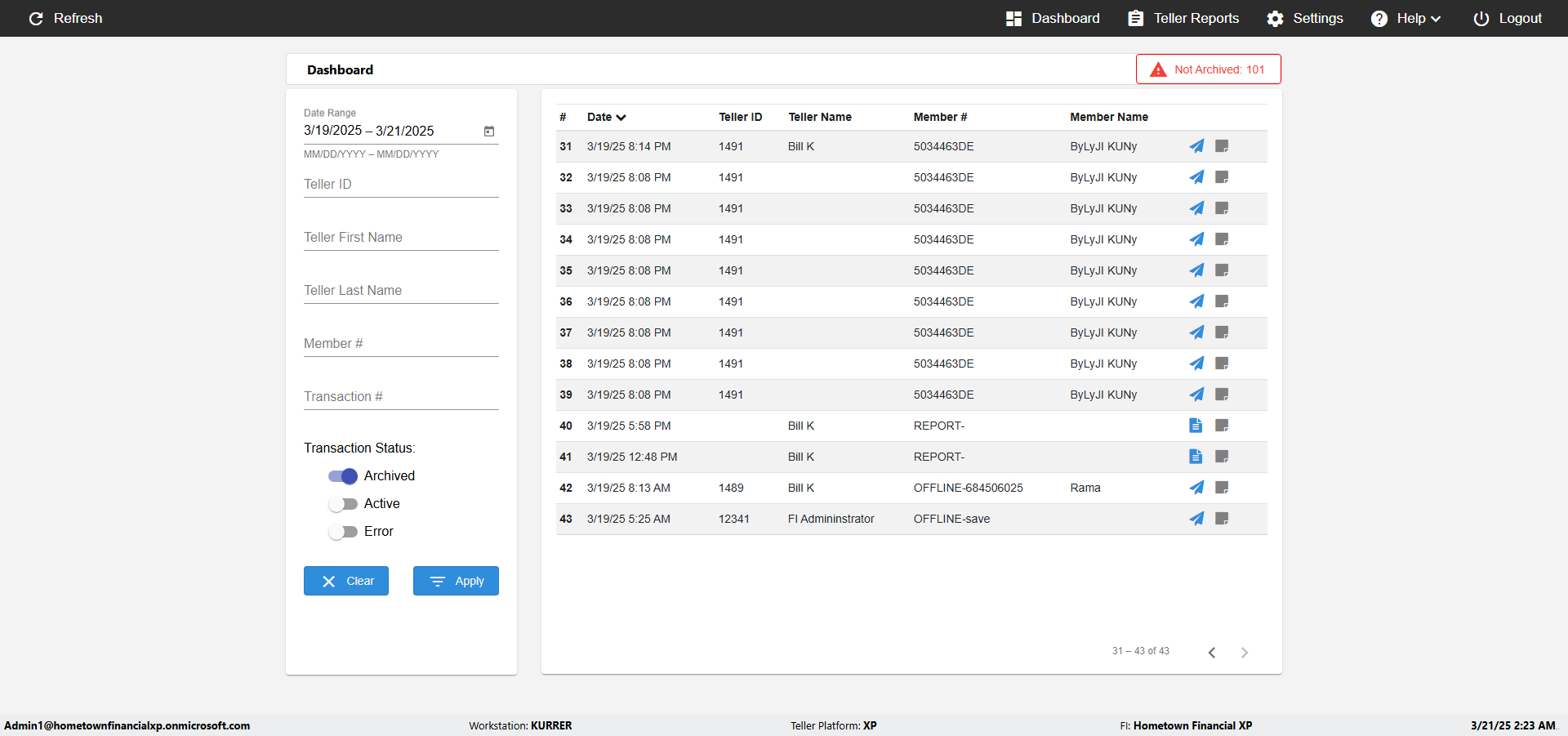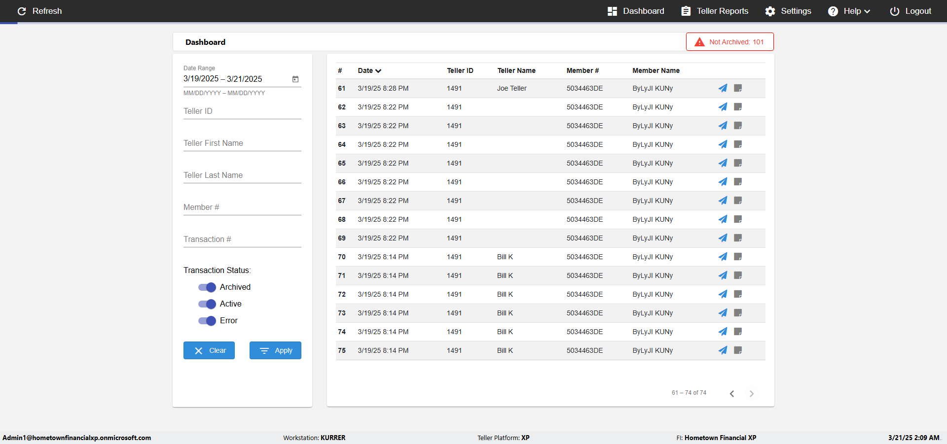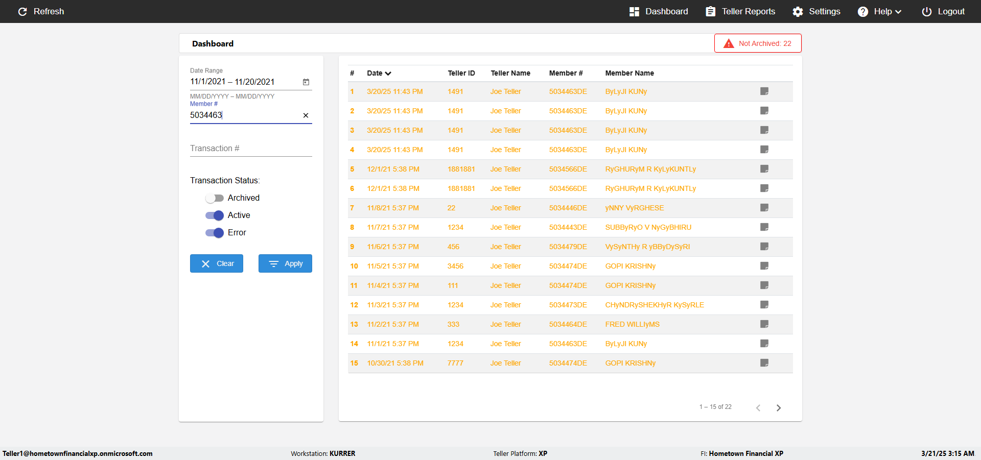 | {UserPwd=iMM2025!, Description=verify Search Elements In Report Page with Date and Teller Email, Teller ID=, errorMessage=, Teller Email=, View=, Date=2, Clear=, Workstation=, errorint=, TestID=verifySortingInReports, Transaction=, Header=Teller Email,, Username=superteller2@hometownfinancialxp.onmicrosoft.com, Export=, Member #=, Search Text=, Level=} |