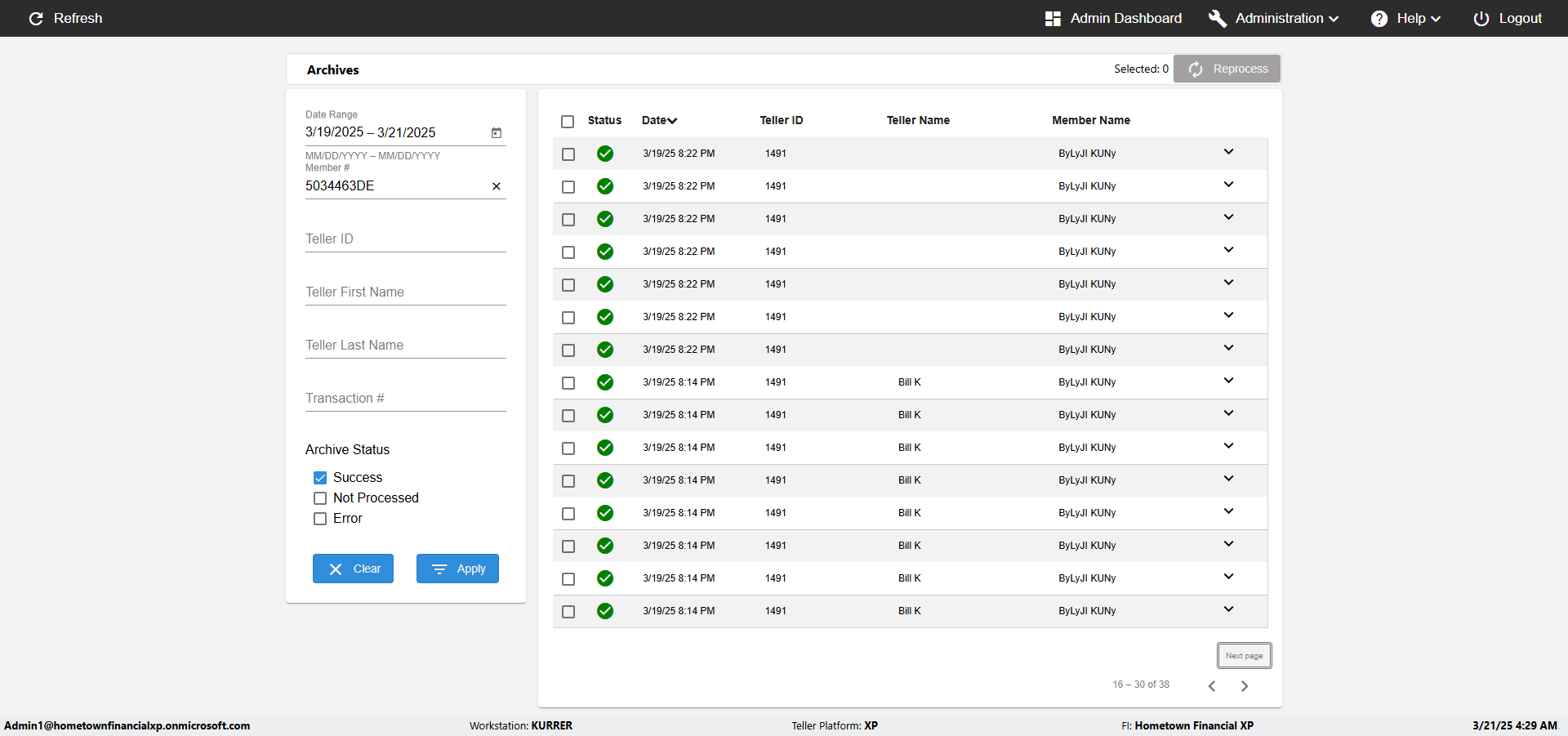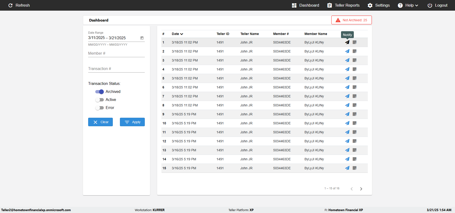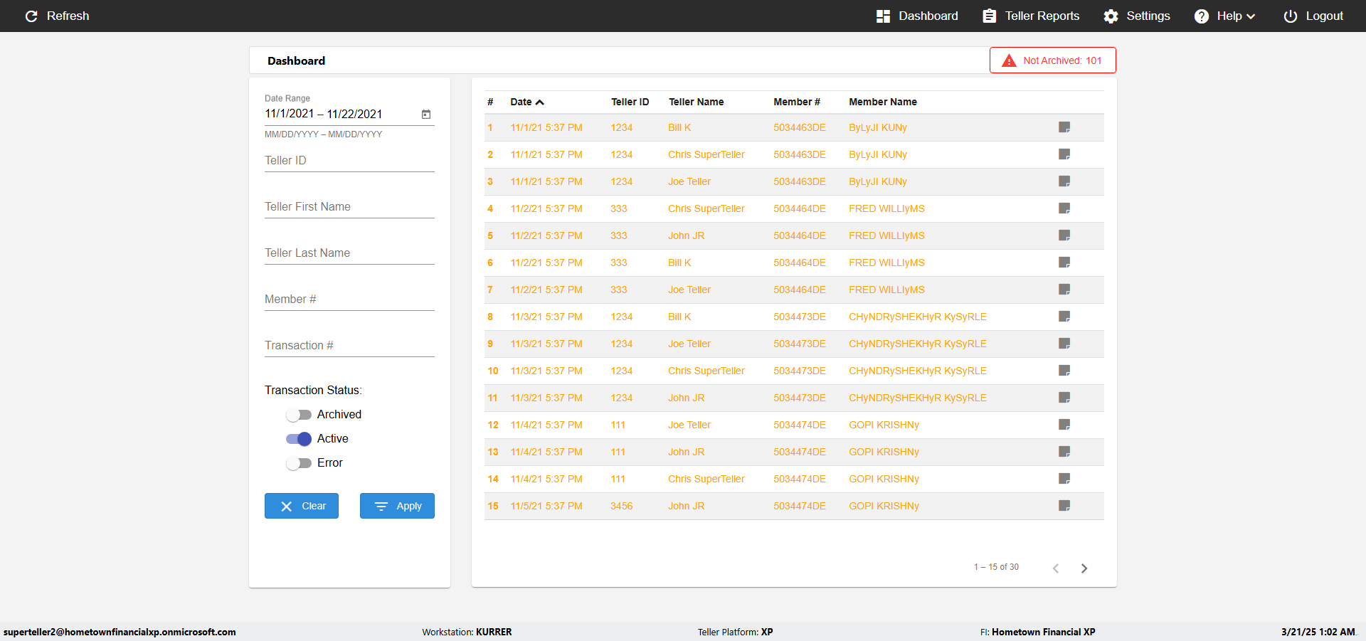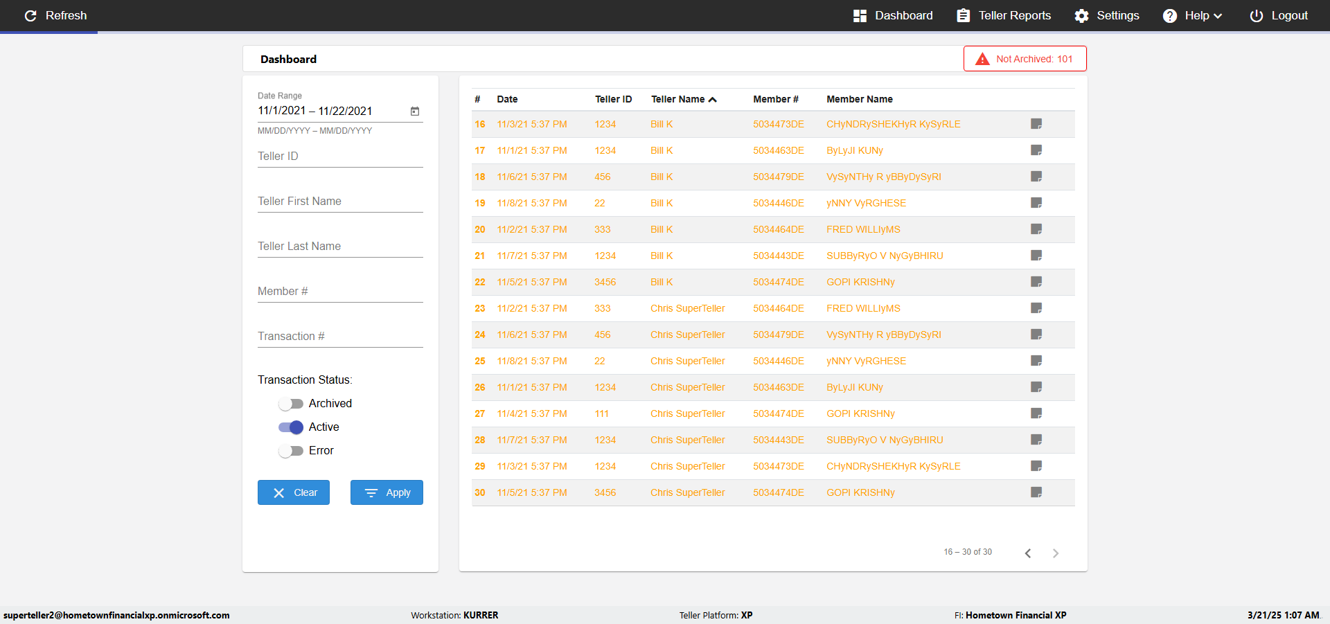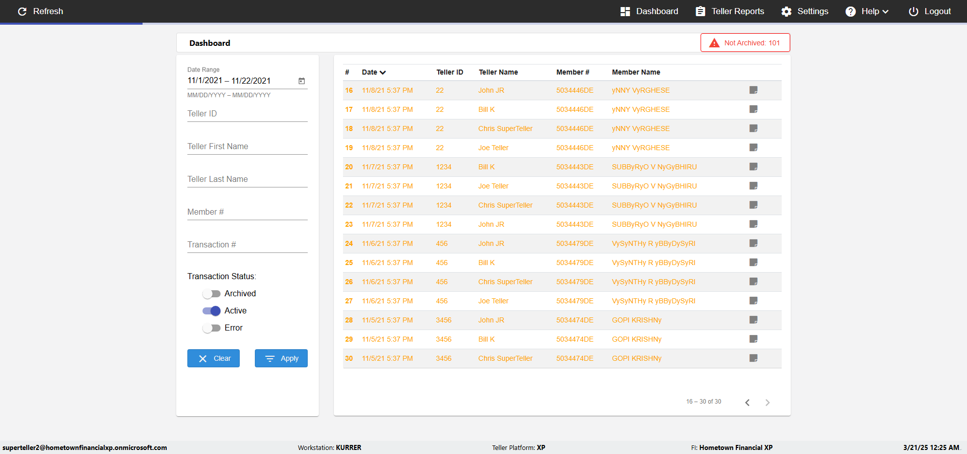 | {UserPwd=iMM2025!, Description=verify Search Elements In Report Page with Date and Teller Email, Teller ID=, errorMessage=, Teller Email=, View=, Date=2, Clear=, Workstation=, errorint=, TestID=verifySortingInReports, Transaction=, Header=Teller Email,, Username=superteller2@hometownfinancialxp.onmicrosoft.com, Export=, Member #=, Search Text=, Level=} |