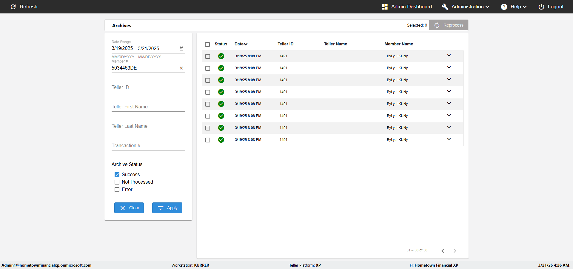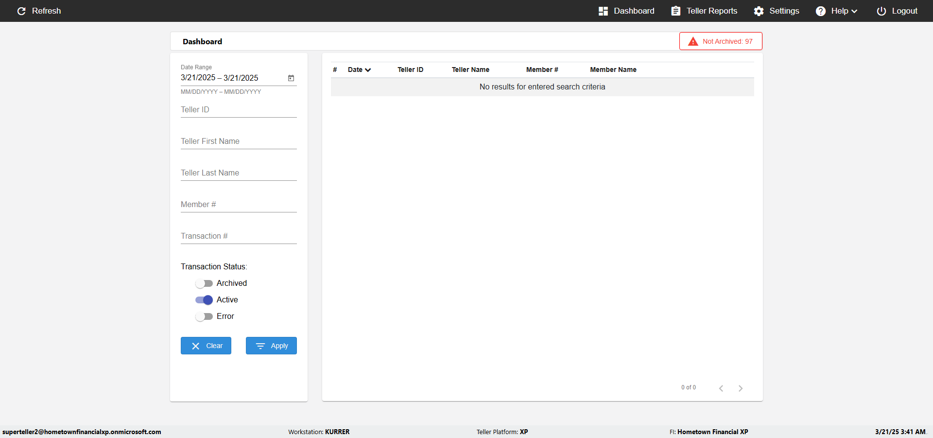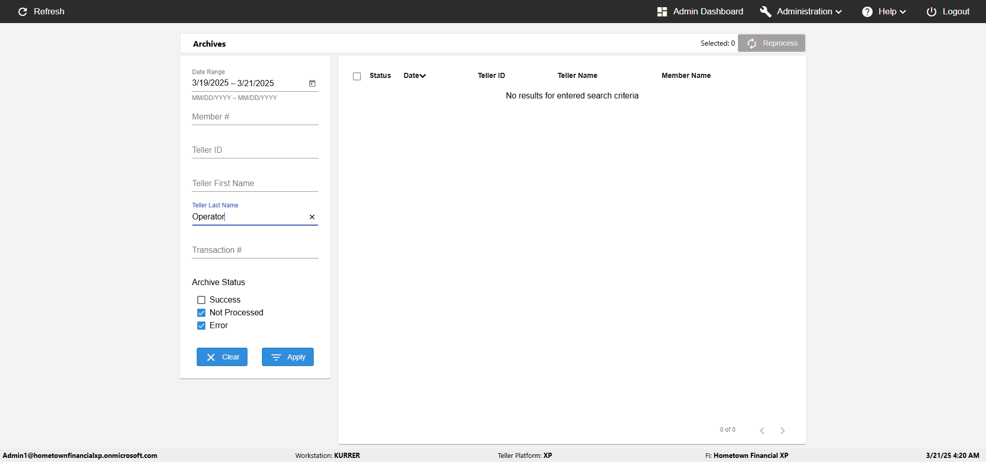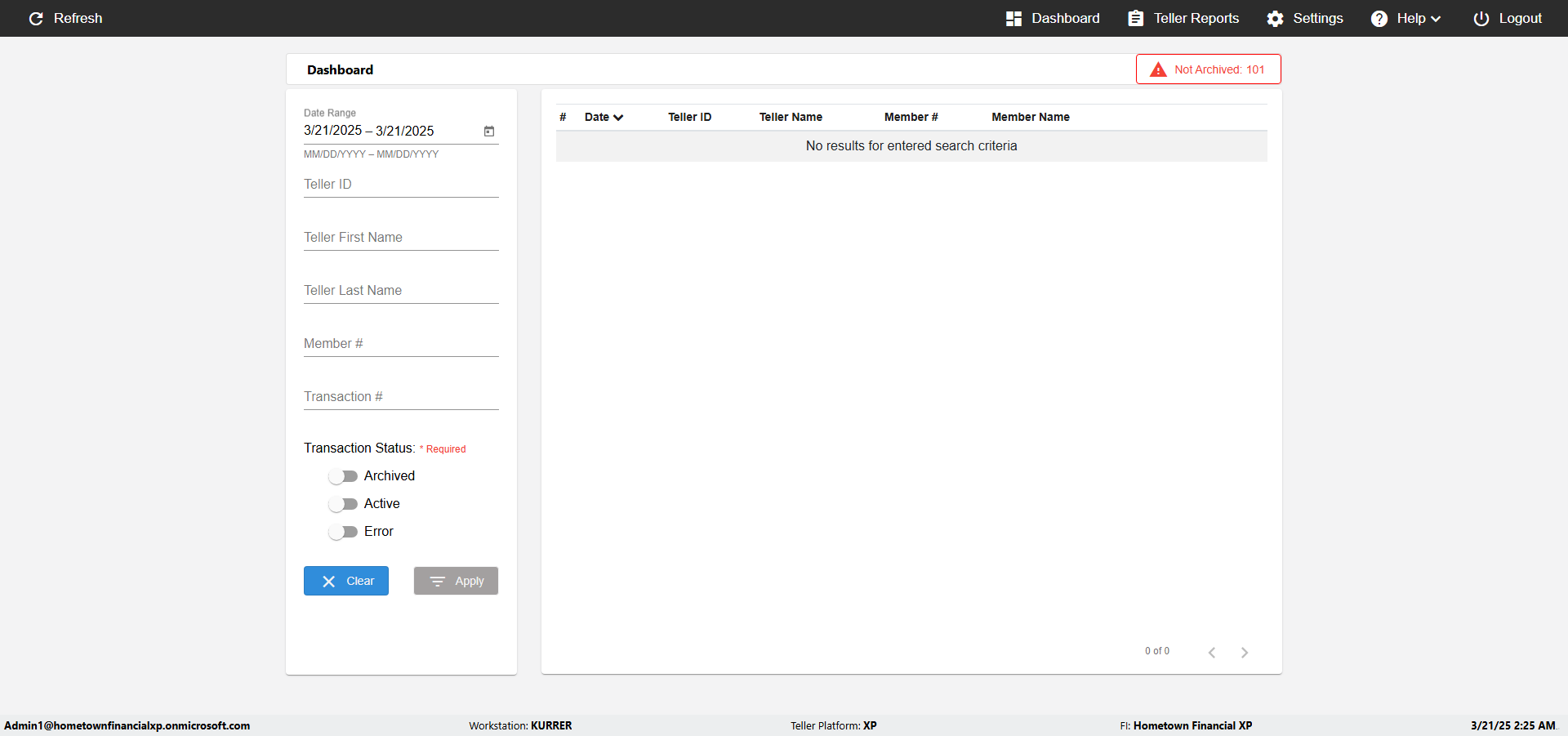 | {UserPwd=iMM2025!, Description=verify Search Elements In Report Page Teller ID, Teller ID=1491, errorMessage=, Teller Email=, View=, Date=2, Clear=, Workstation=, errorint=, TestID=verifySearchInReports, Transaction=, Header=, Username=superteller2@hometownfinancialxp.onmicrosoft.com, Export=, Member #=, Search Text=, Level=} |