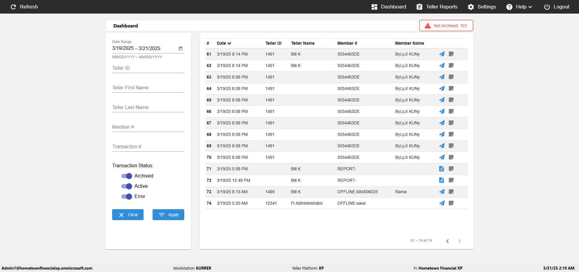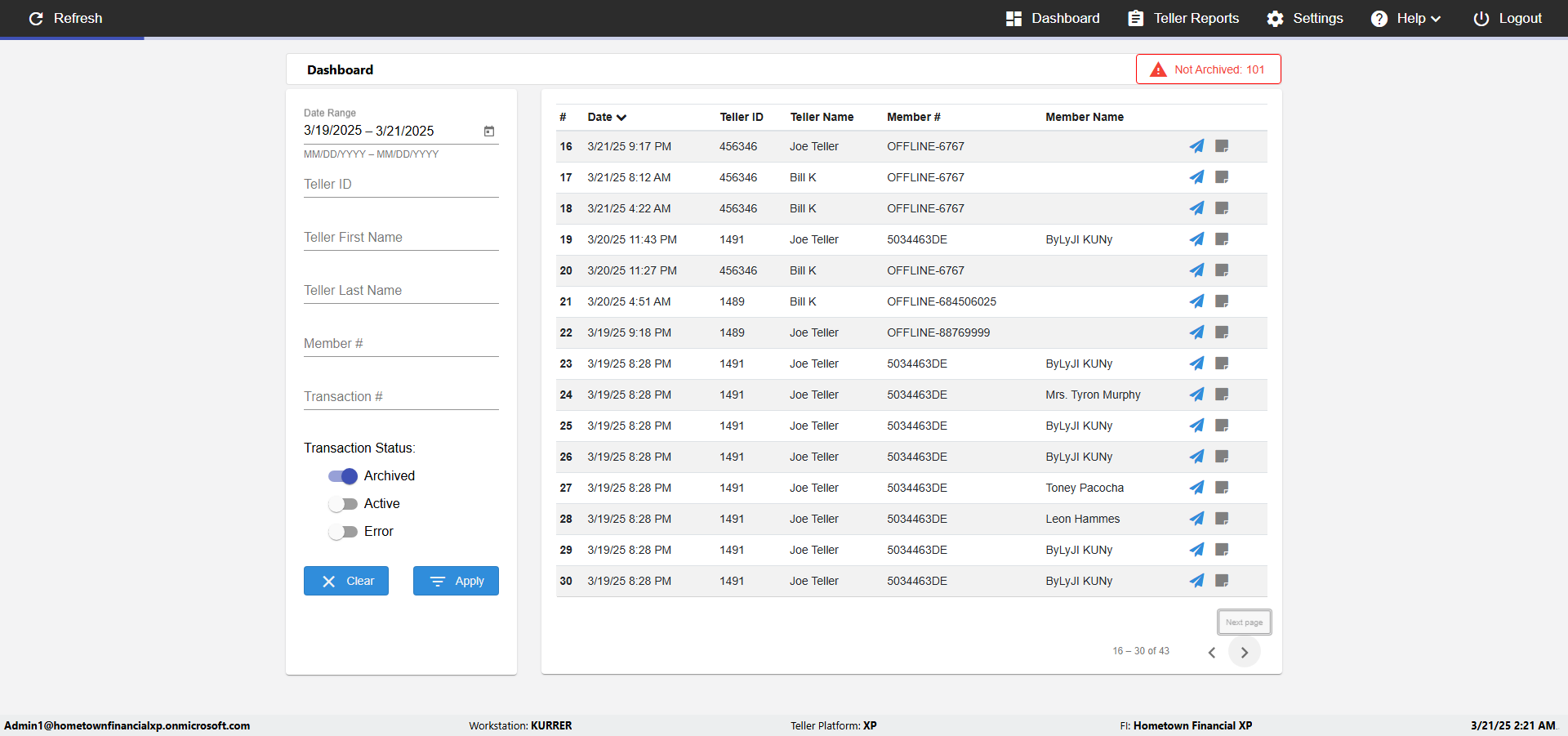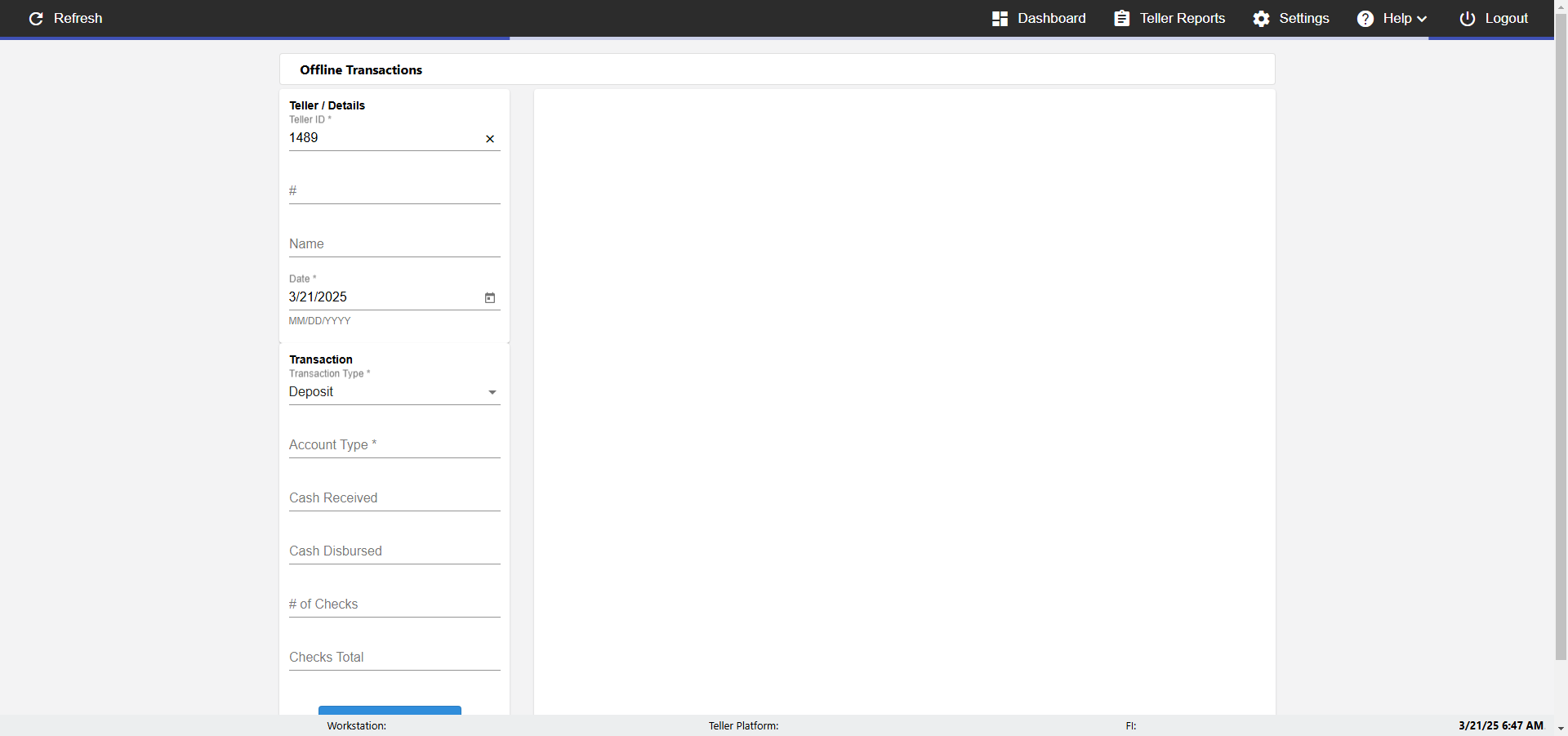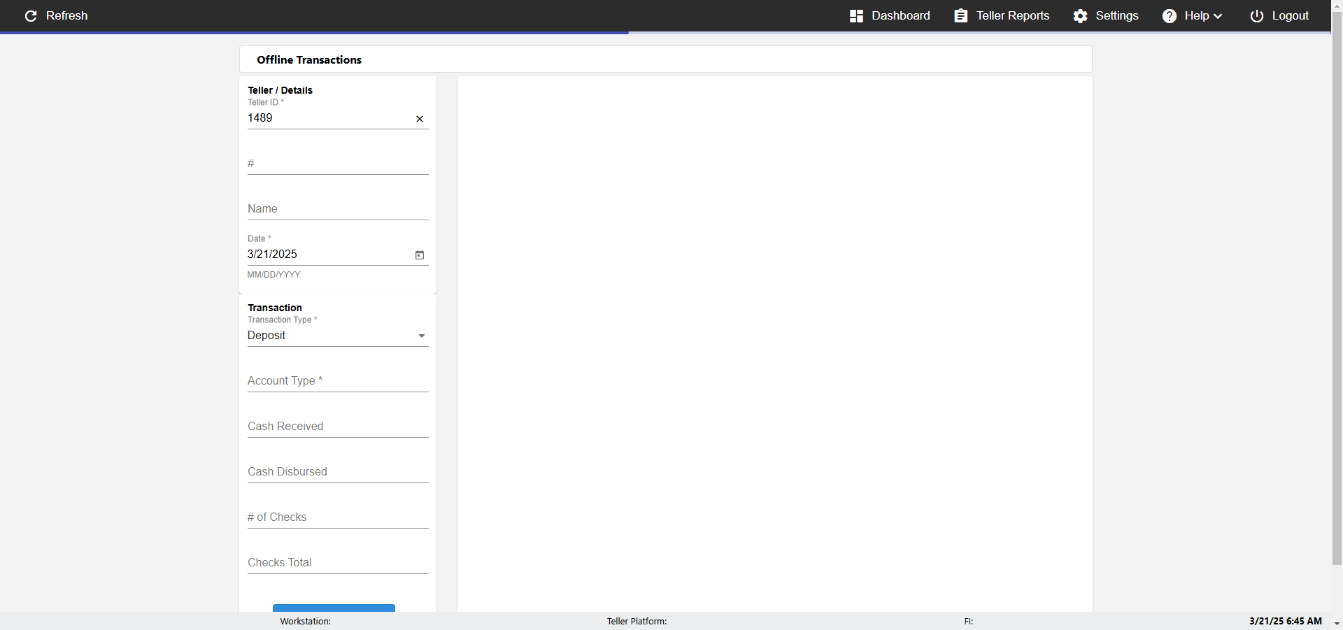 | {Description=Verify Teller ID error in Offline Transaction demo, From Account #=1212, Teller ID=3456@, To Account #=1414, Amount=555, errorMessage=Special characters not allowed.;, Transaction Type=Deposit, userpwd=iMM2025!, # of Checks=5, Member#=789, Member Name=Rahim, Cash Received=2233, From Account Type=checking, Date=, To Account Type=savings, errorint=1, TestID=verifyOfflineErrorMessagesTellerIDDetails, offlineurl=/offlinereceipt/demo, Cash Disbursed=3000, Account Type=Saving, Checks Total=221, username=Admin1@hometownfinancialxp.onmicrosoft.com} |