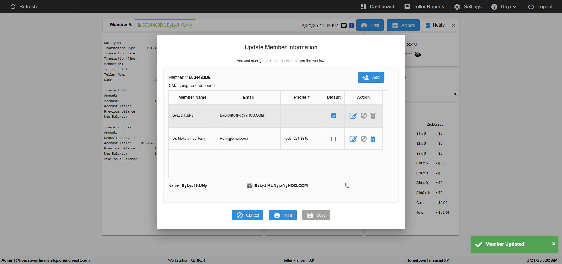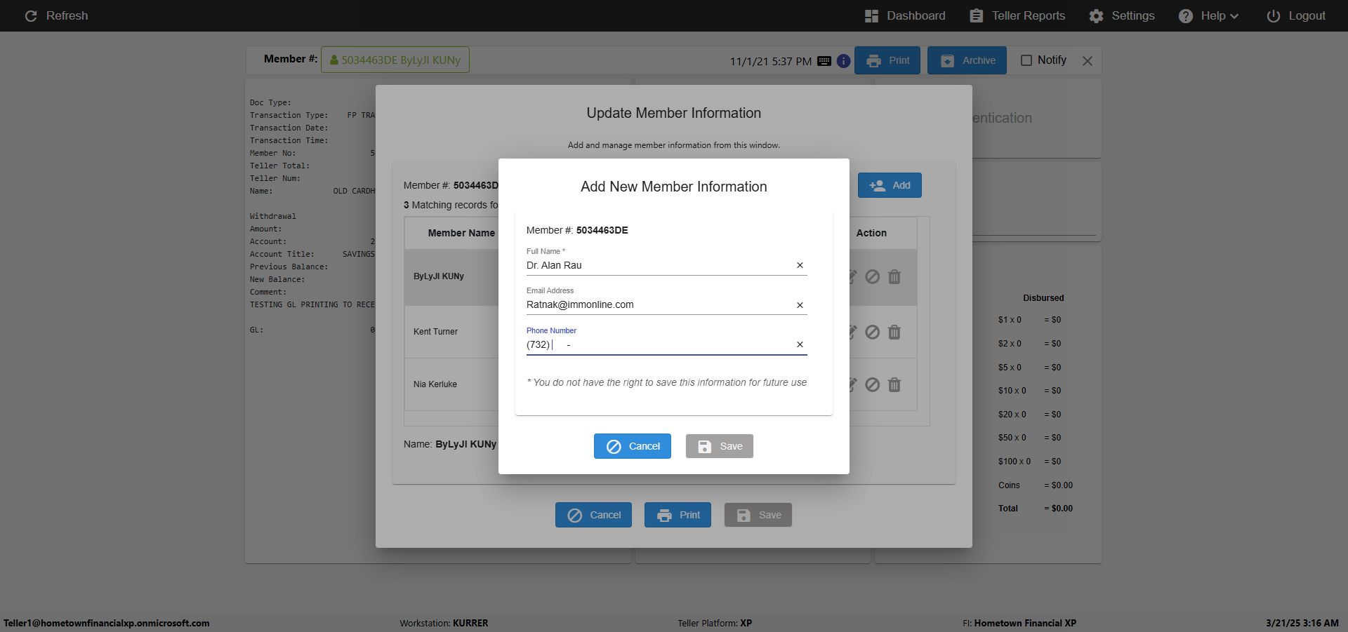 | {Toggel=TRUE, Archived Transactions=no, Description=verify Normal MemberID And Archive Information Update (Use Normal only), Email=Ratnak@immonline.com, Archive=, Document Type=, Notify=, SignatureTab=, DisbursedExpression=, Operation=, Teller LastName=, Disbursed cash=, errorint=, TestID=verifyNormalMemberAddUpdateContactInfo, Print=, DisbursedExpressionValue=, Phone=(732) 890-6074, ReceivedCashValue=, Member=5034463, UserPwd=iMM2025!, Transtatus=Archived-false;Active-true;Error-false, Docment ID=, Teller=, Teller FirstName=, errorMessage=, ReceivedExpressionValue=, Date=11/01/2021 - 11/20/2021, Platfrom=, Received cash=, Transaction=, Header=, Expression=, Username=Teller1@hometownfinancialxp.onmicrosoft.com, DisbursedCashValue=, FullName=Johna, ReceivedExpression=, SMS=, Memo=} |
