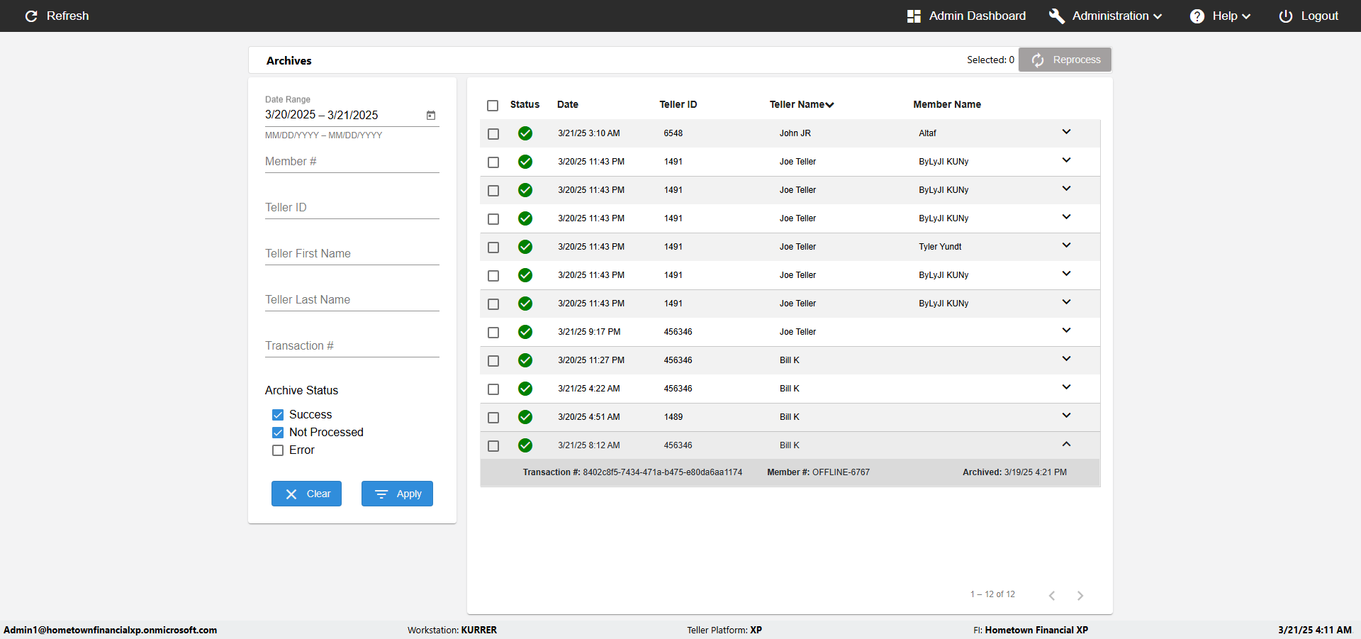 | {Description=Verify Other in Offline Transaction demo, From Account #=1212, Teller ID=103984601984, To Account #=1414, Amount=555, errorMessage=, Transaction Type=Deposit, userpwd=iMM2025!, # of Checks=5, Member#=789, Member Name=Rahim, Cash Received=2233, From Account Type=checking, Date=5, To Account Type=savings, errorint=, TestID=verifyOfflineOtherTransaction, offlineurl=/offlinereceipt/demo, Cash Disbursed=3000, Account Type=Saving, Checks Total=221, username=Admin1@hometownfinancialxp.onmicrosoft.com} |