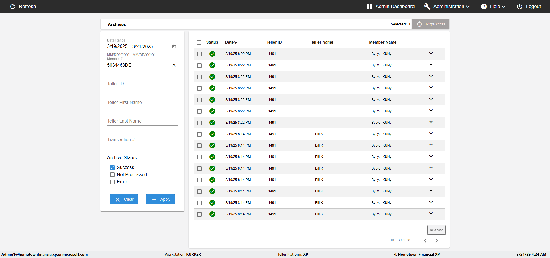 | {UserPwd=iMM2025!, Description=verify Search Elements In Report Page with Date and workstation, Teller ID=, errorMessage=, Teller Email=, View=, Date=1, Clear=, Workstation=KURRER, errorint=, TestID=verifySearchInReports, Transaction=, Header=, Username=superteller2@hometownfinancialxp.onmicrosoft.com, Export=yes, Member #=, Search Text=, Level=} |
