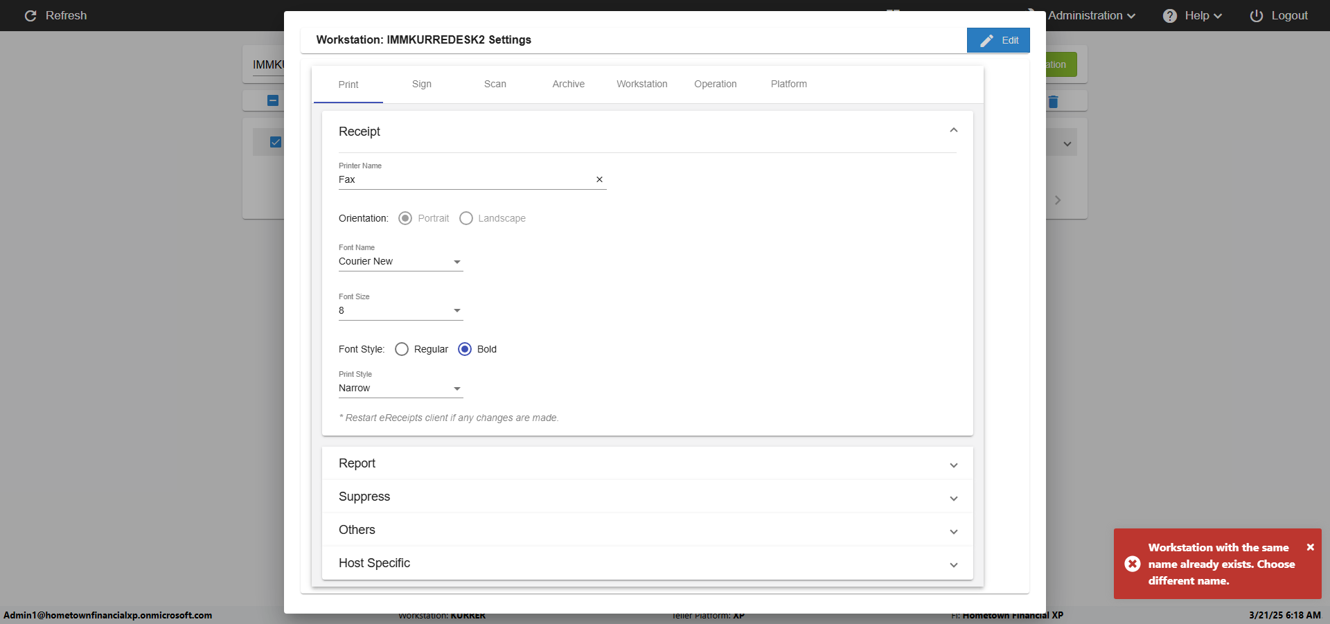 | {Archived Transactions=, Archive=, print signatur=, Name=, MultipleWorkstation=, WorkstationDeleteOption=, BranchName=QABranch, Agent=, UserPwd=iMM2022!, BranchDeleteOption=FALSE, Receipt=, Role=, Brand=, Print signature line=, TimeZone=, Header=, MappedOption=, Scan=, PortNumber=, FromWks=Arya, FromBranch=Chunty, Description=Copy Workstation In Page, weeks=, Operation=, Clear=, TestID=verifyCopyWorkstationInfo, Phone=, WorkstationName=, ToBranch=Bunty, ToWks=Syra, Subscription Names=, FilePath=, Transtatus=Archived-false;Active-true;Error-false, Report=, Index_Field_Name=, Agents=, Text=, Hold Notice=, Suppress=, SchedualType=, Date=, Platfrom=, GroupId=, print Disburstments=, SMTP=, Imaging System=, MultipleBranches=, Username=Admin1@hometownfinancialxp.onmicrosoft.com, Sign=} |