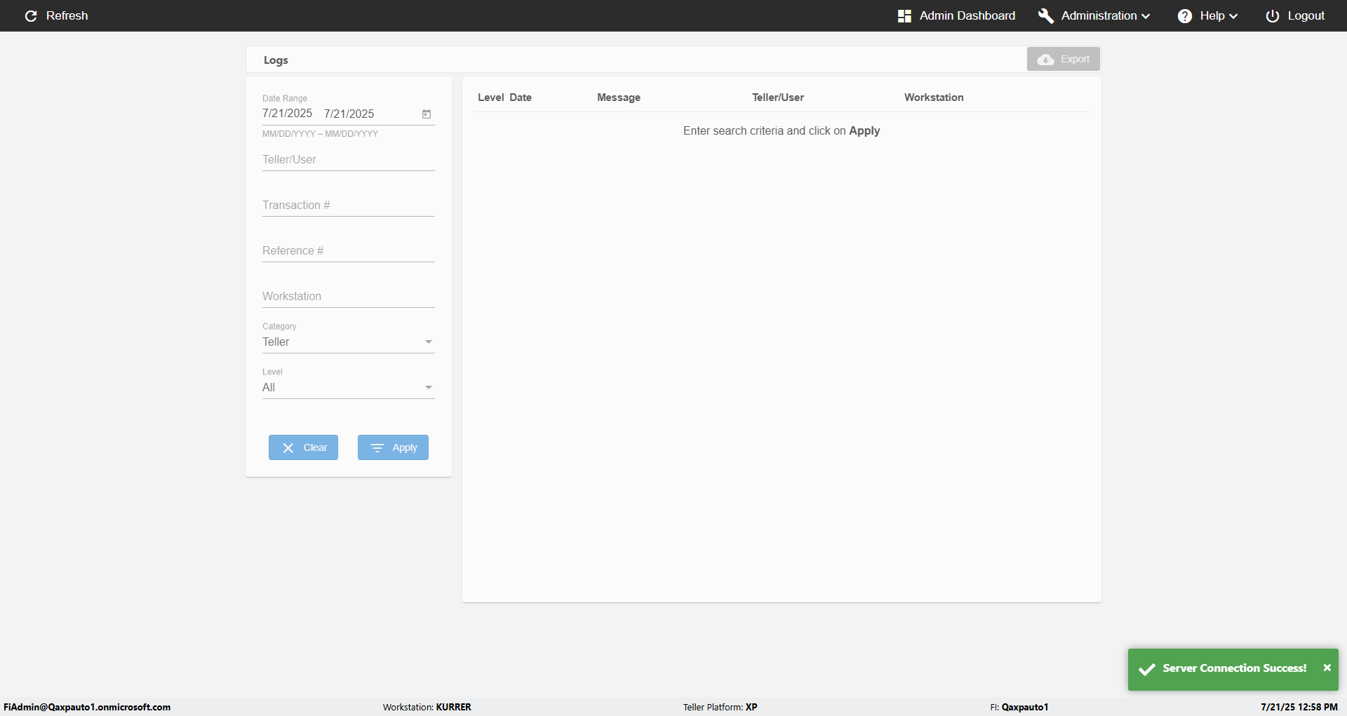 Successfully navigated to the 'Logging' page after refresh [ScreenShot] --- 21 Jul 12:58:10 091 - Element is displayed:: [[RemoteWebDriver: chrome on Windows 10 (a4cff8544b22405beaf07f0cf7c1861d)] -> id: immAdministration]