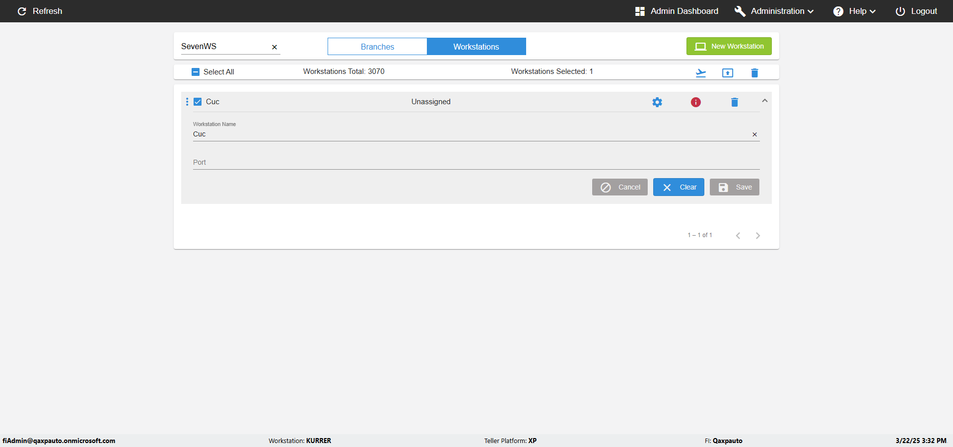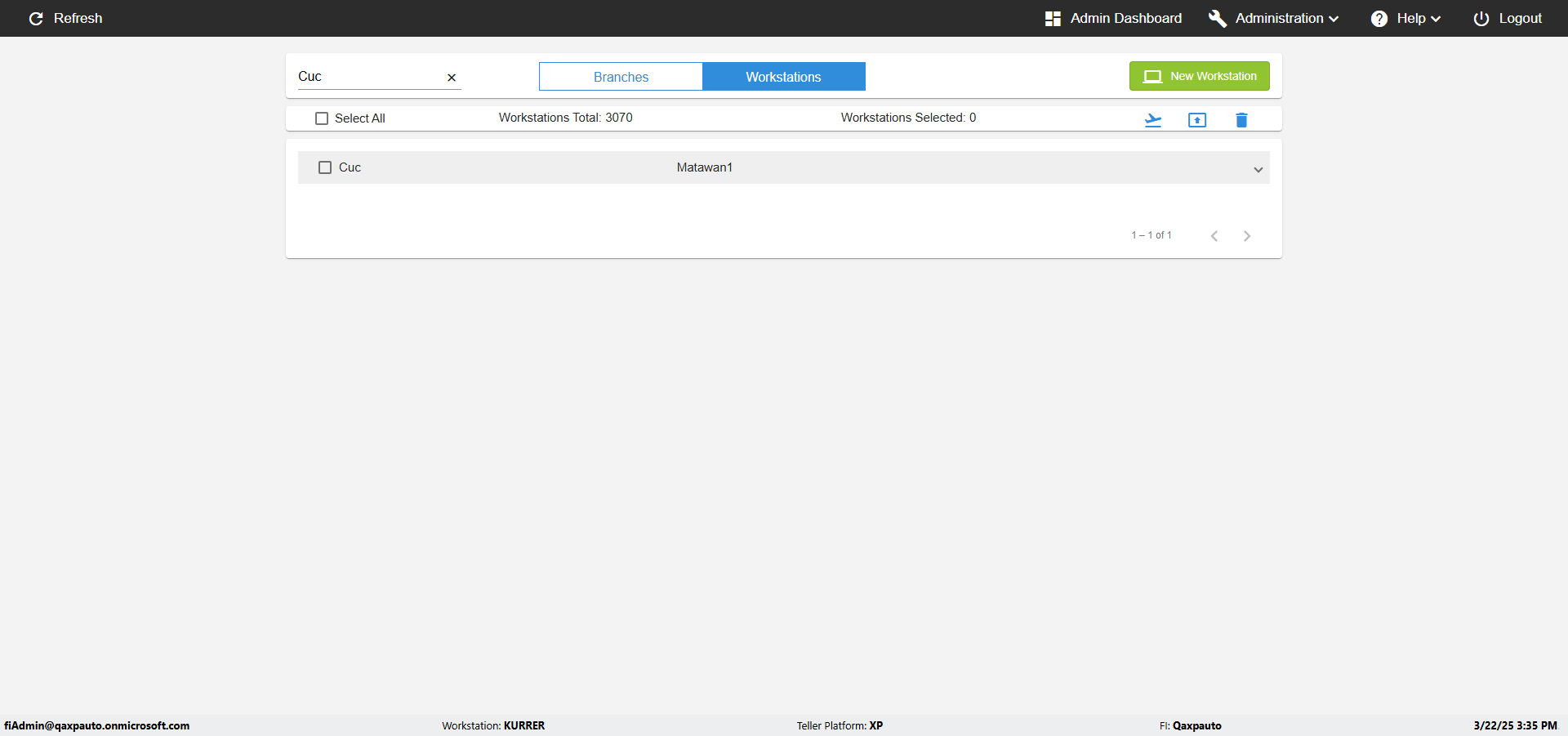 Actual(Passed): Successfully verified the Workstation Branch name in 'Workstations' page[ScreenShot]