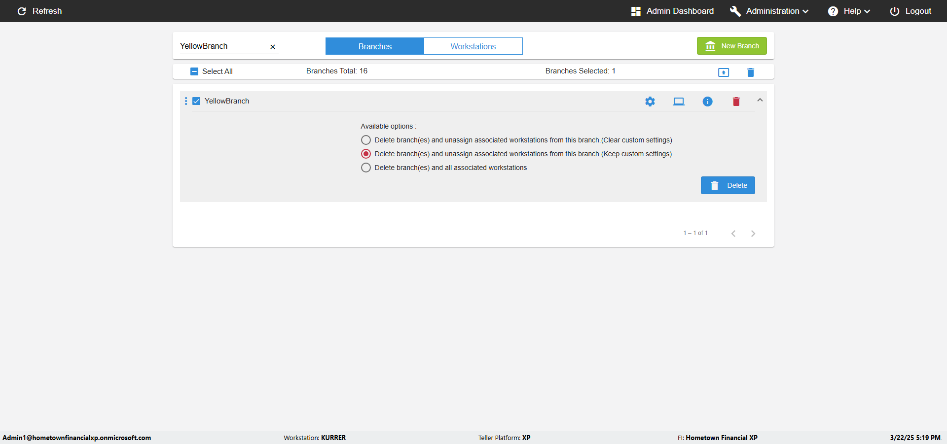 ({Archived Transactions=, Archive=, print signatur=, Name=, MultipleWorkstation=, WorkstationDeleteOption=, BranchName=GreenBranch, Agent=, UserPwd=iMM2025!, BranchDeleteOption=Clear Custom Settings, Receipt=, Role=, Brand=, Print signature line=, TimeZone=, Header=, MappedOption=, Scan=, PortNumber=, FromWks=, FromBranch=, Description=Delete options In Branches Page, weeks=, Operation=, Clear=, TestID=veriyDeleteOptonsinBranch, Phone=, WorkstationName=GB WStation1, ToBranch=, ToWks=, Subscription Names=, FilePath=, Transtatus=Archived-false;Active-true;Error-false, Report=, Index_Field_Name=, Agents=, Text=, Hold Notice=, Suppress=, SchedualType=, Date=, Platfrom=, GroupId=, print Disburstments=, SMTP=, Imaging System=, MultipleBranches=, Username=Admin1@hometownfinancialxp.onmicrosoft.com, Sign=})