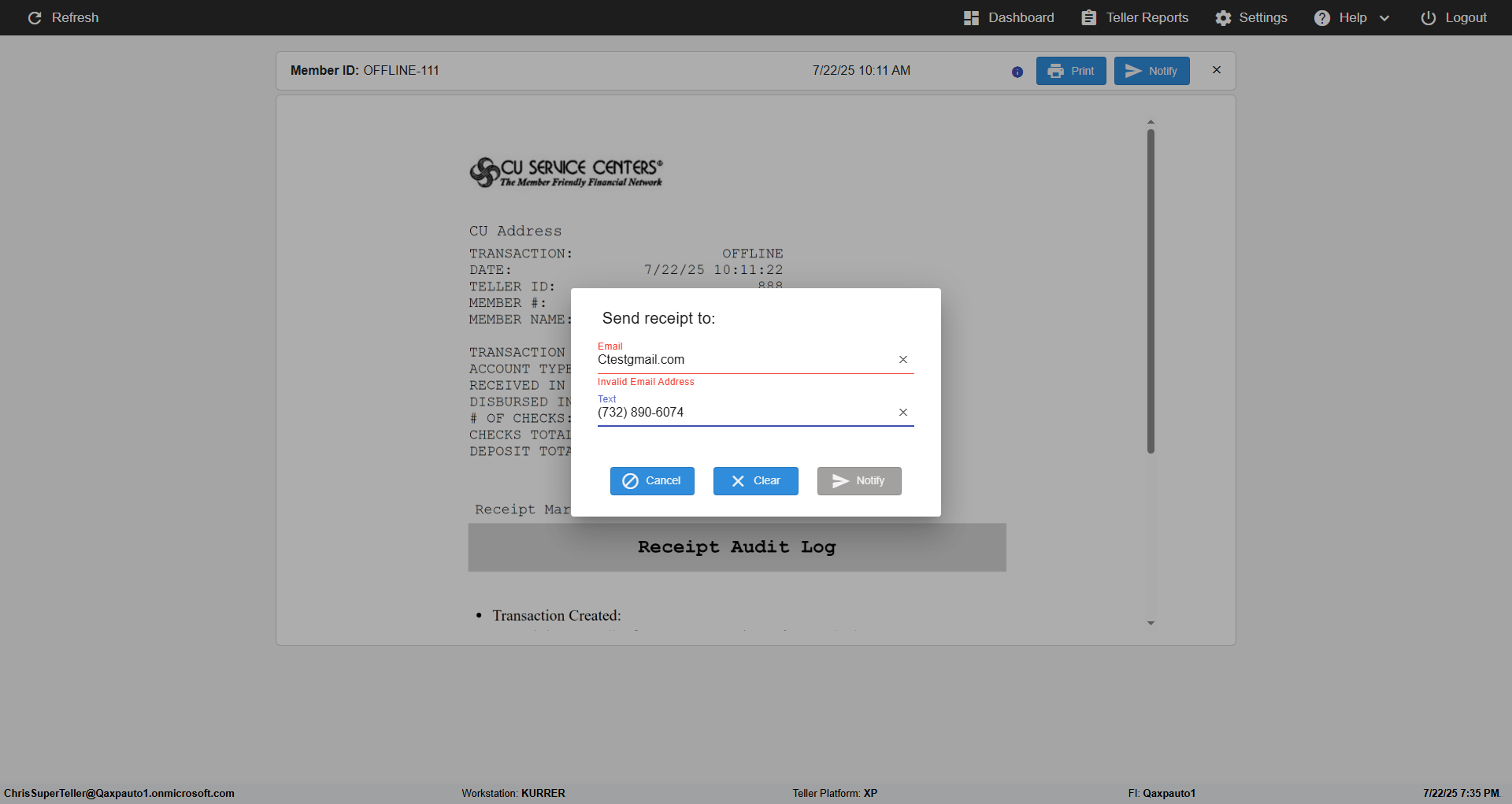 {Description=verify Notify In Archive Receipt Page, Email=Ctest@gmail.com, Teller LastName=, print signatur=, errorint=2, TestID=verifyNotifyInArchiveReceiptPage, Color Transactions=yes, Member=, UserPwd=iMM2022!, Transtatus=Archived-True;Active-False;Error-False, Receipt=, Report=, Teller=, Teller FirstName=, errorMessage=Invalid Email Address;Invalid Phone Number, Suppress=, Date=, print Disburstments=, Print signature line=, Type=, Transaction=, Header=, Username=ChrisSuperTeller@Qaxpauto1.onmicrosoft.com, SMS=(732) 890-6074, Sign=, Scan=}