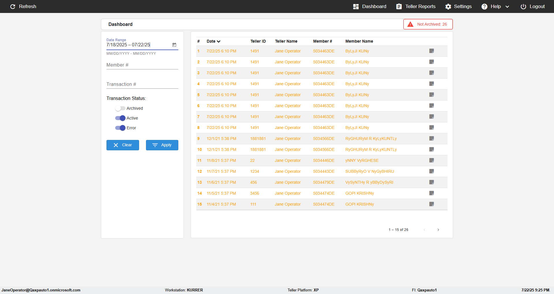 | 09:25:03 PM | ***** verify Transactions in Teller ***** | |