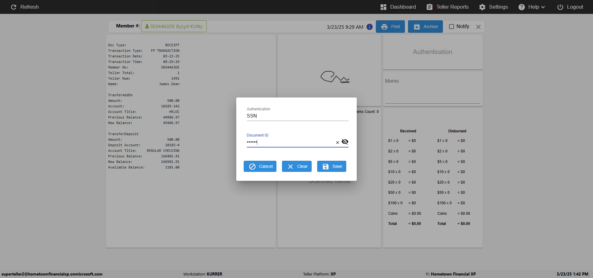| 02:16:40 PM | logged with the Username:superteller2@hometownfinancialxp.onmicrosoft.com | |