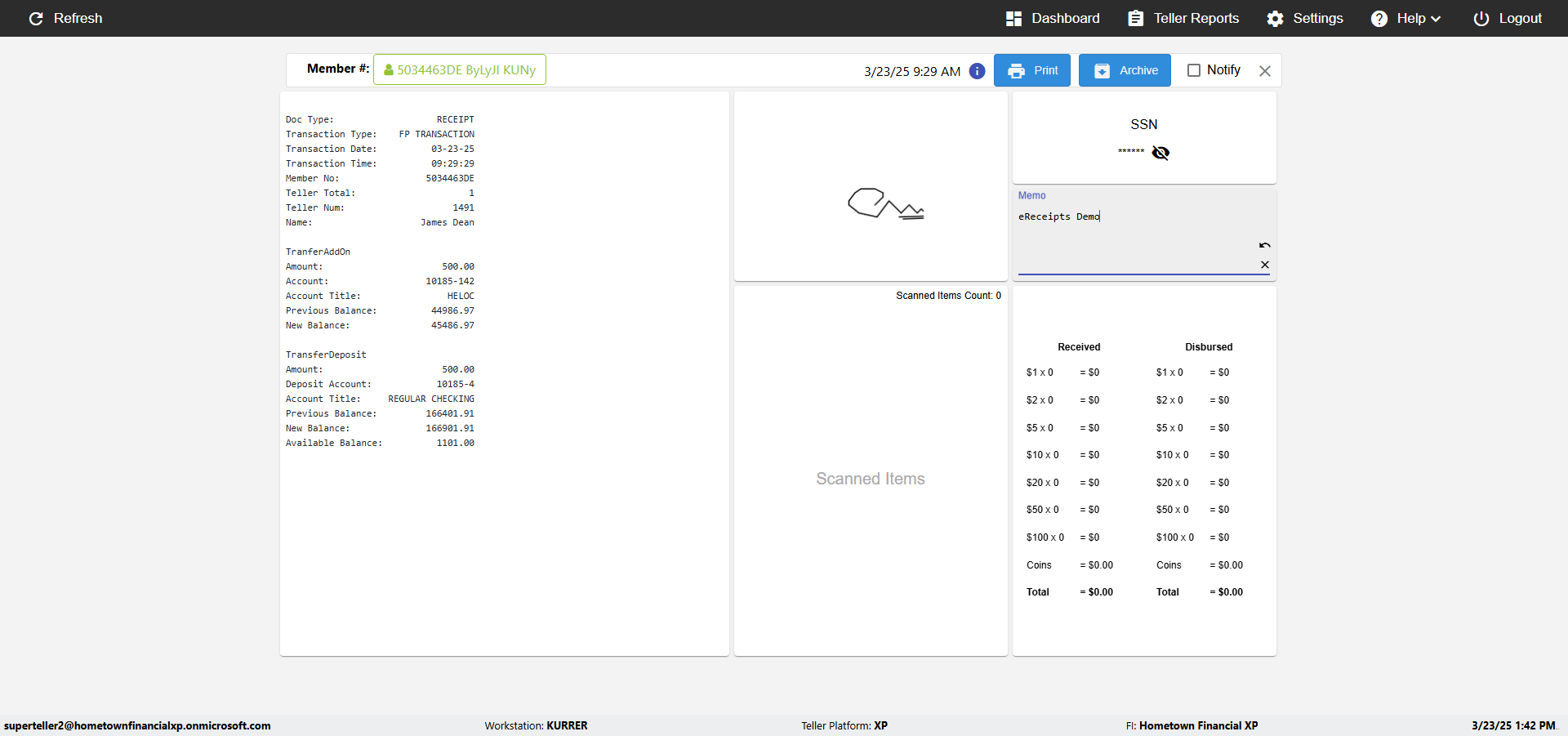 | 02:16:27 PM | Successfully navigated to 'eReceipts Teller' Page | |
