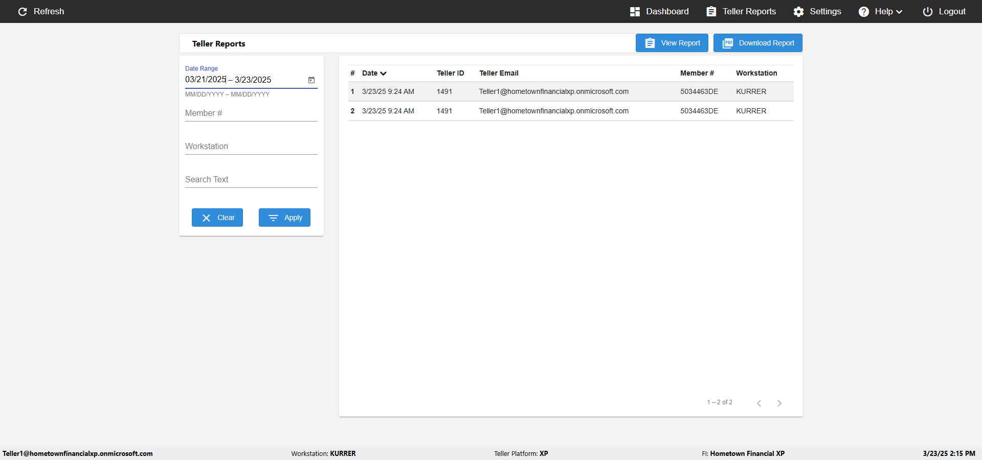 | 02:14:03 PM | logged with the Username:Teller1@hometownfinancialxp.onmicrosoft.com | |