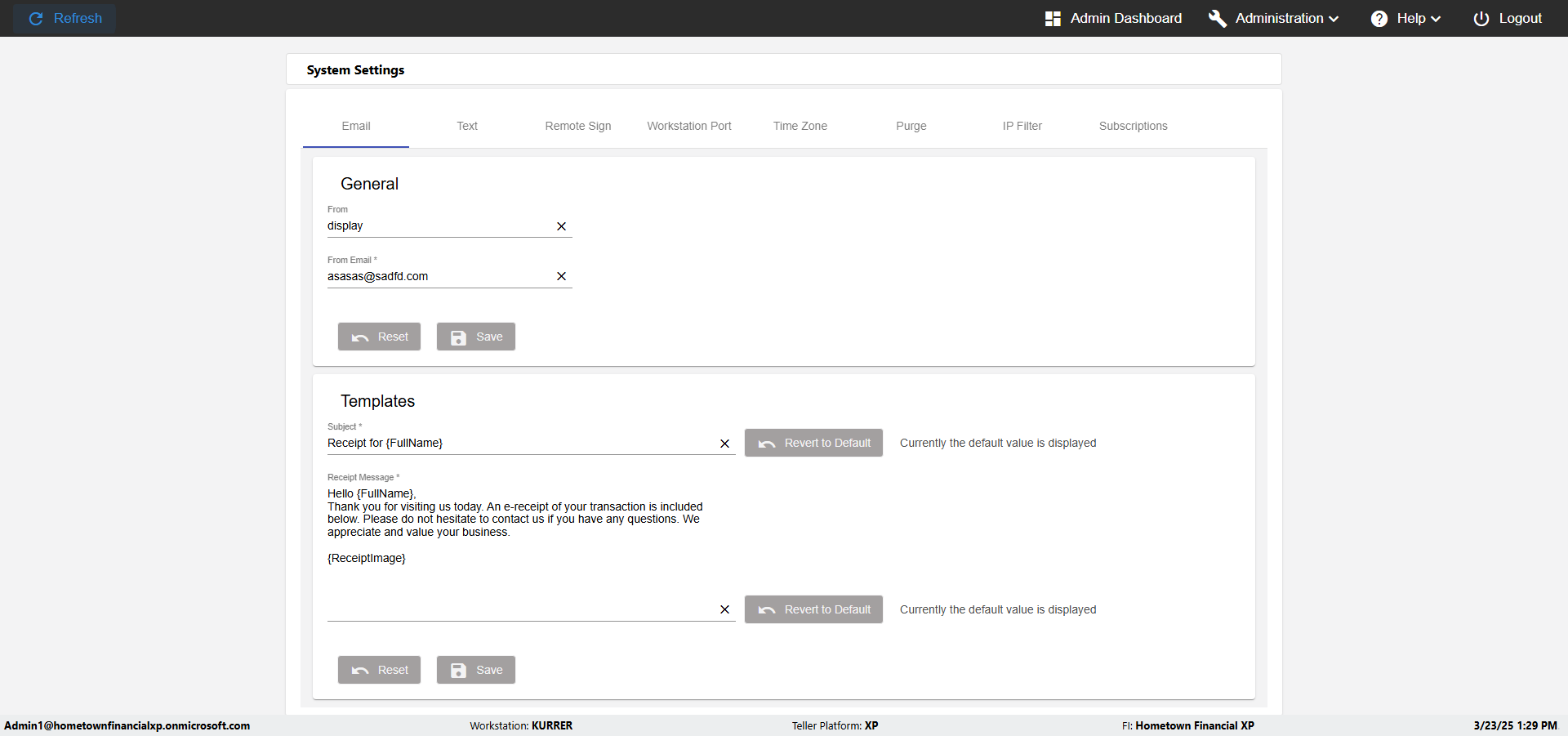 | 01:25:15 PM | Successfully navigated to 'eReceipts FI Admin' Page | |