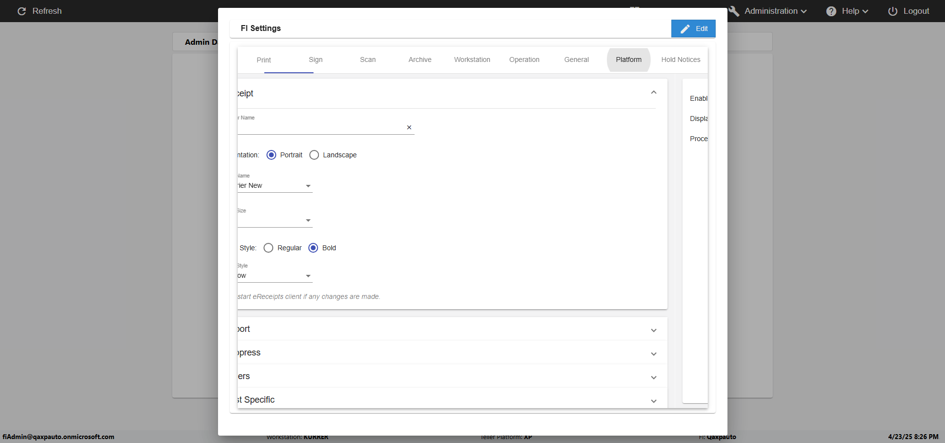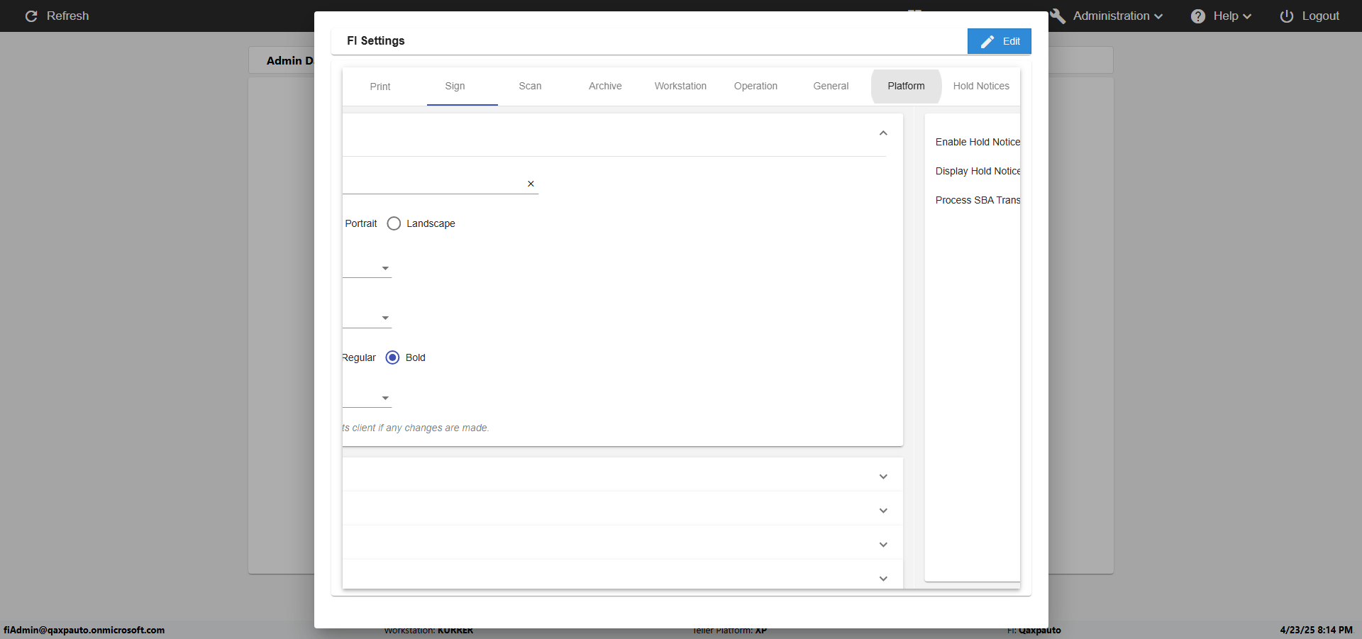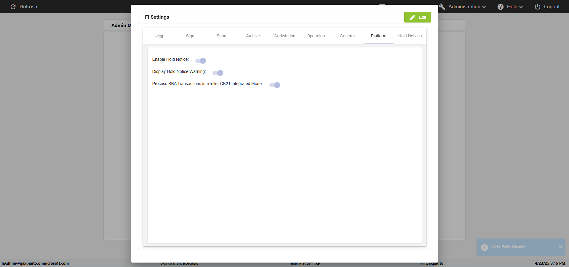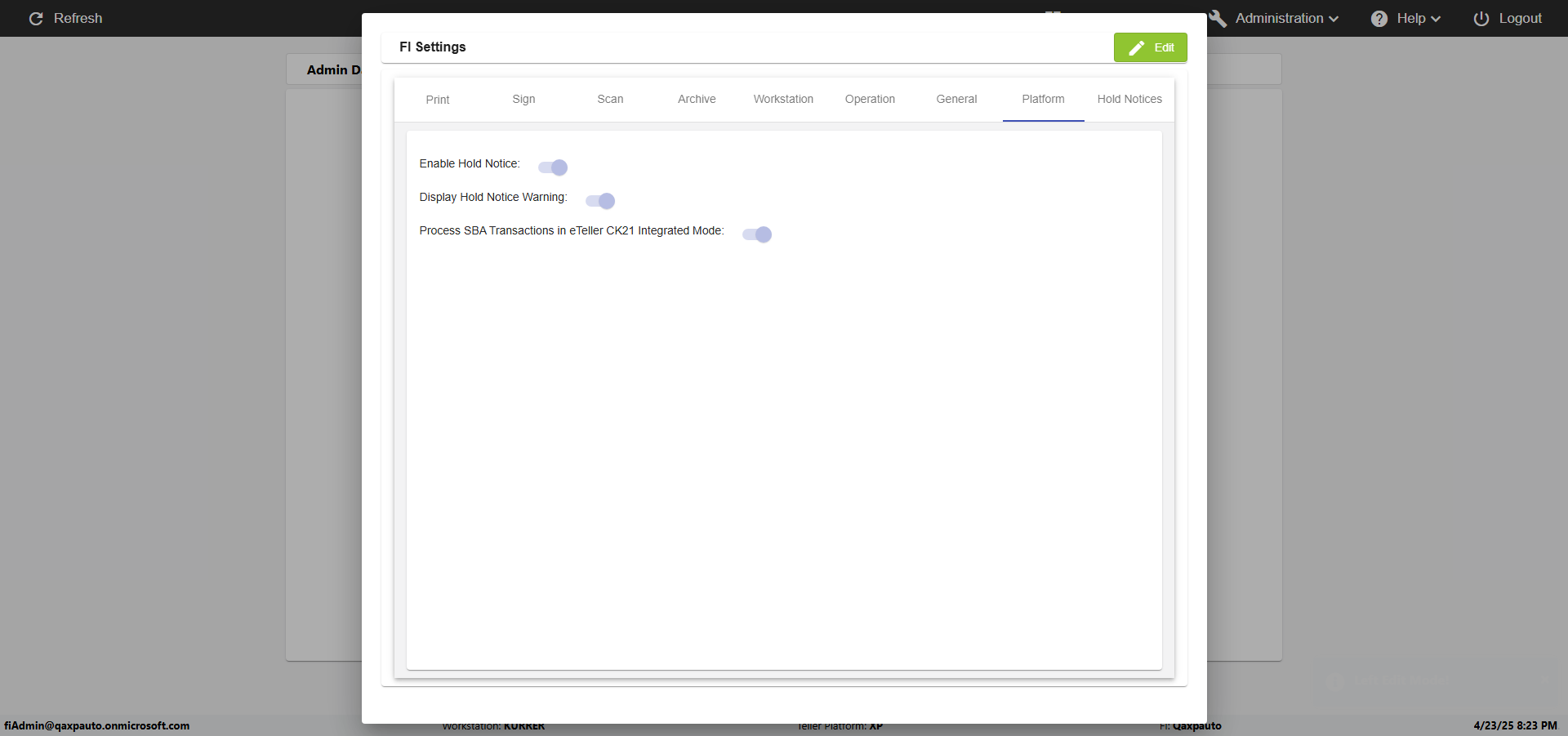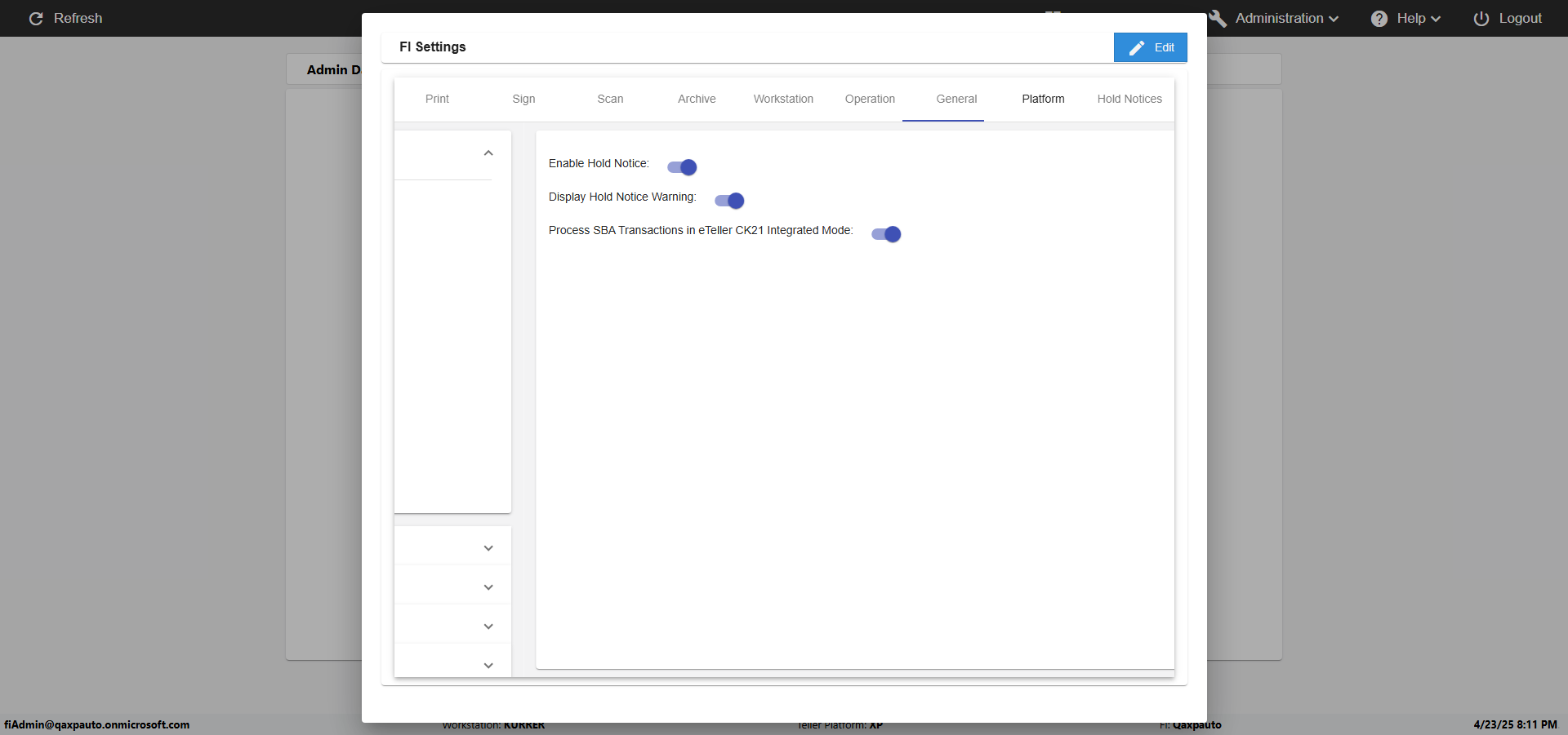 Actual(Passed): Sucessfully clicked on Settings button in Teller portal[ScreenShot]