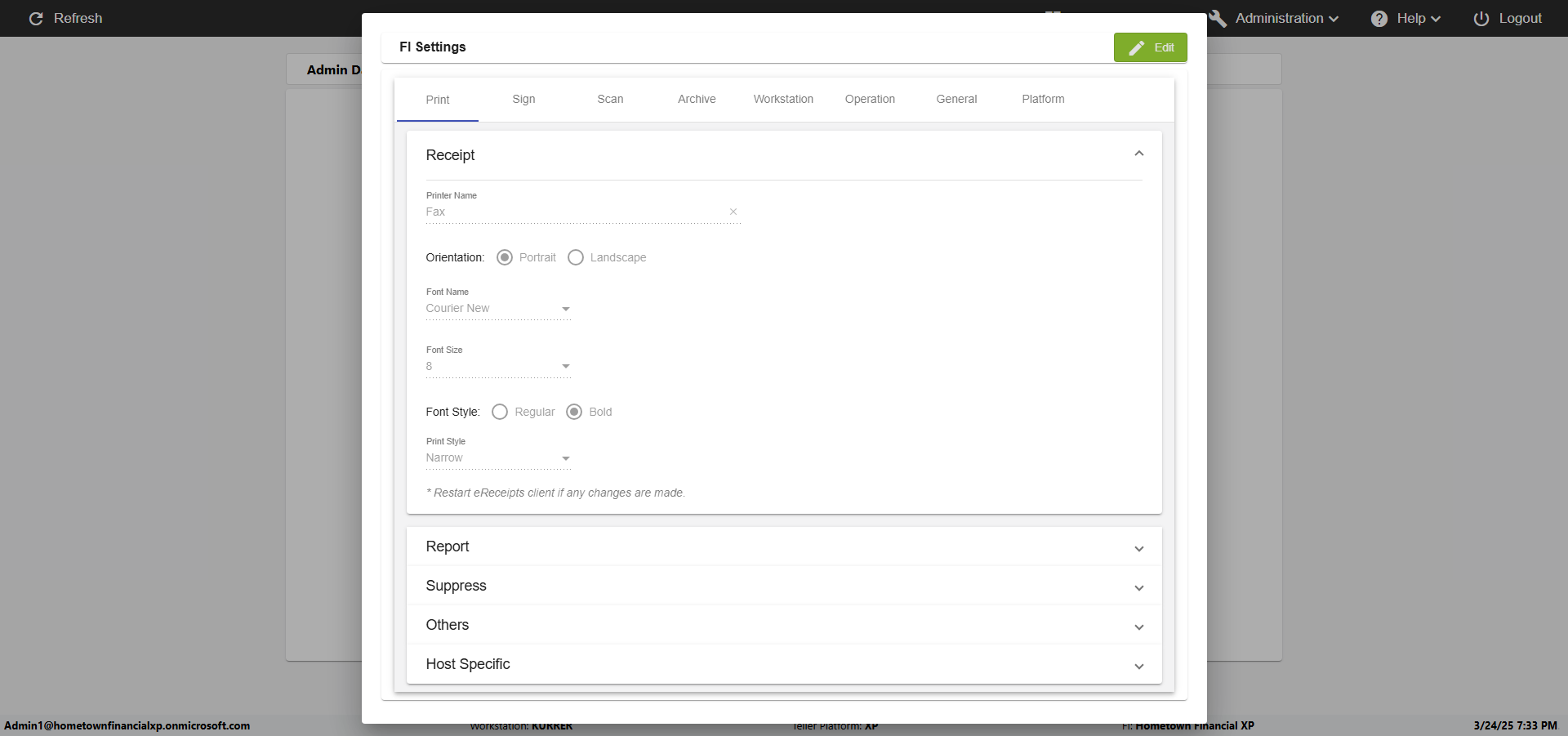 | 07:34:43 PM | Successfully navigated to 'eReceipts FI Admin' Page | |