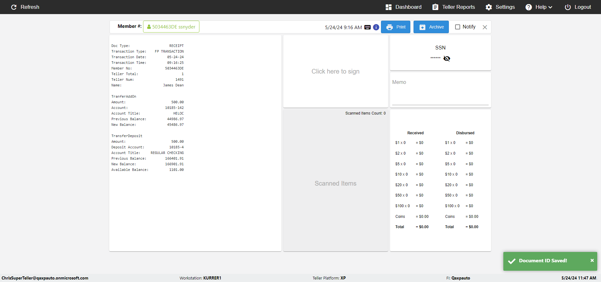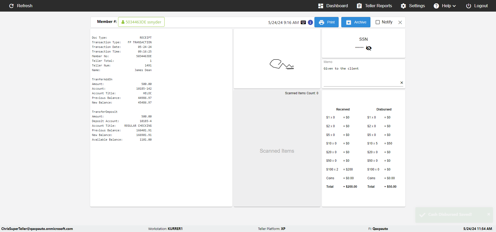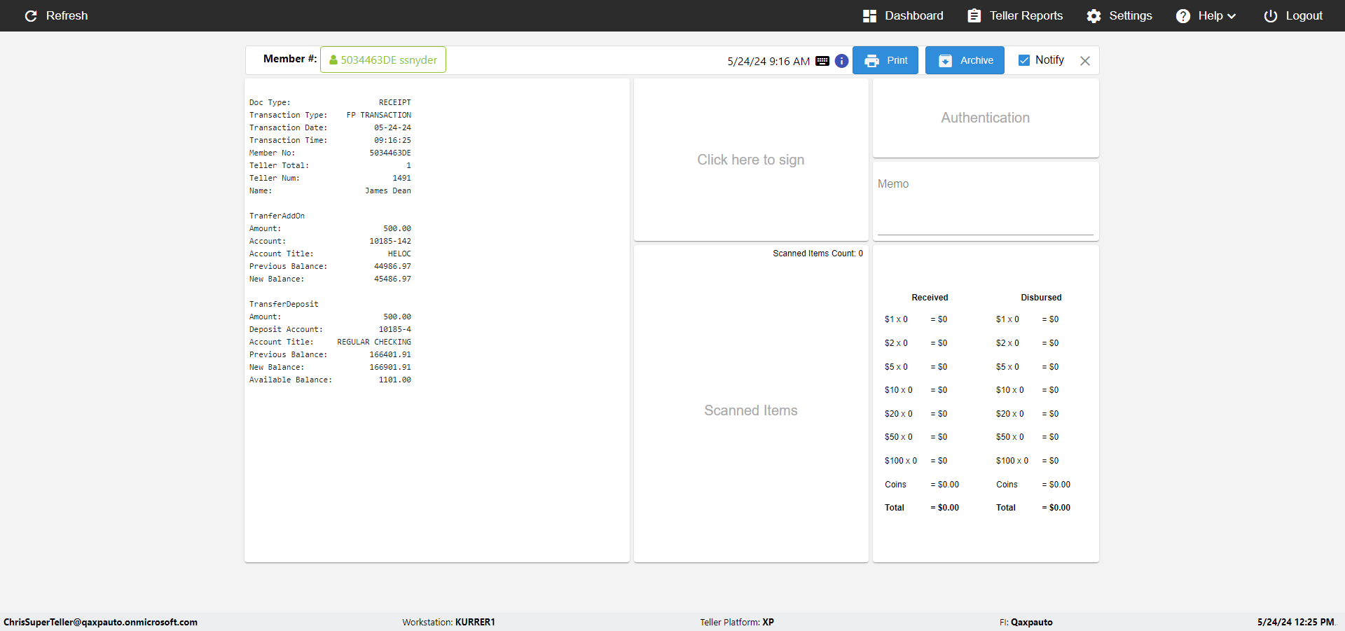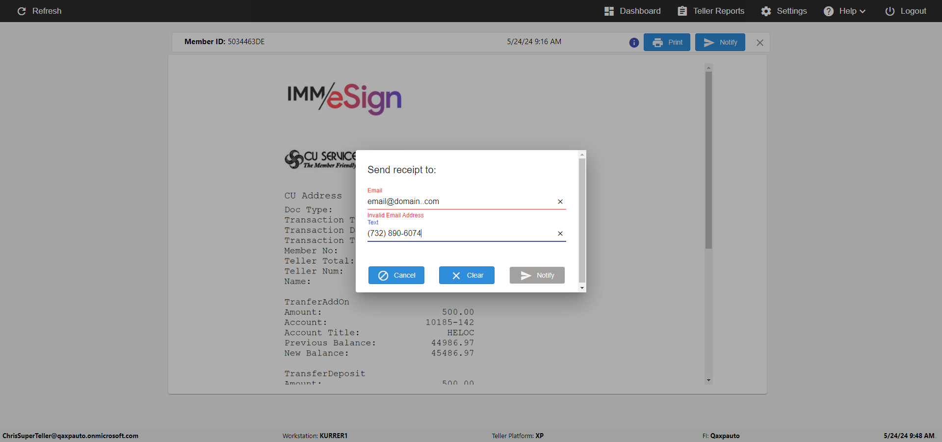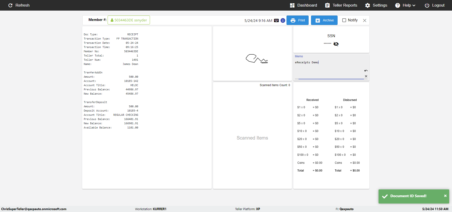 | 09:24:12 AM | Successfully navigated to 'eReceipts Teller' Page | |