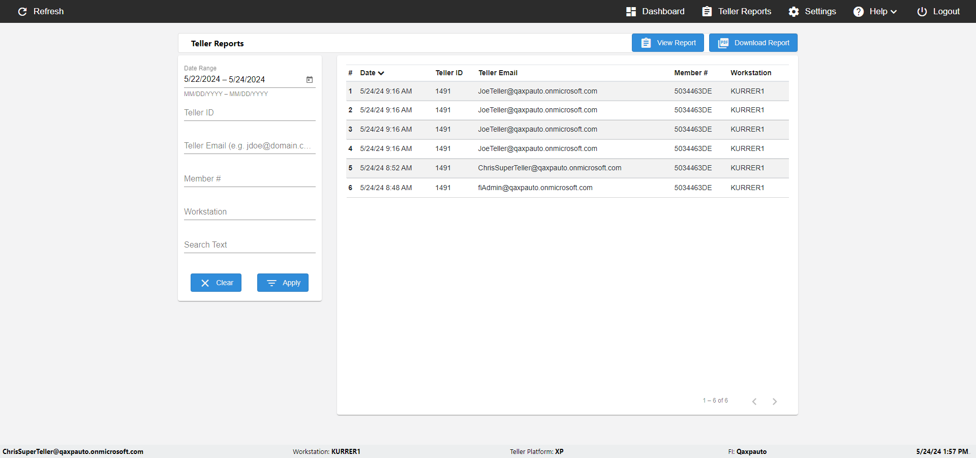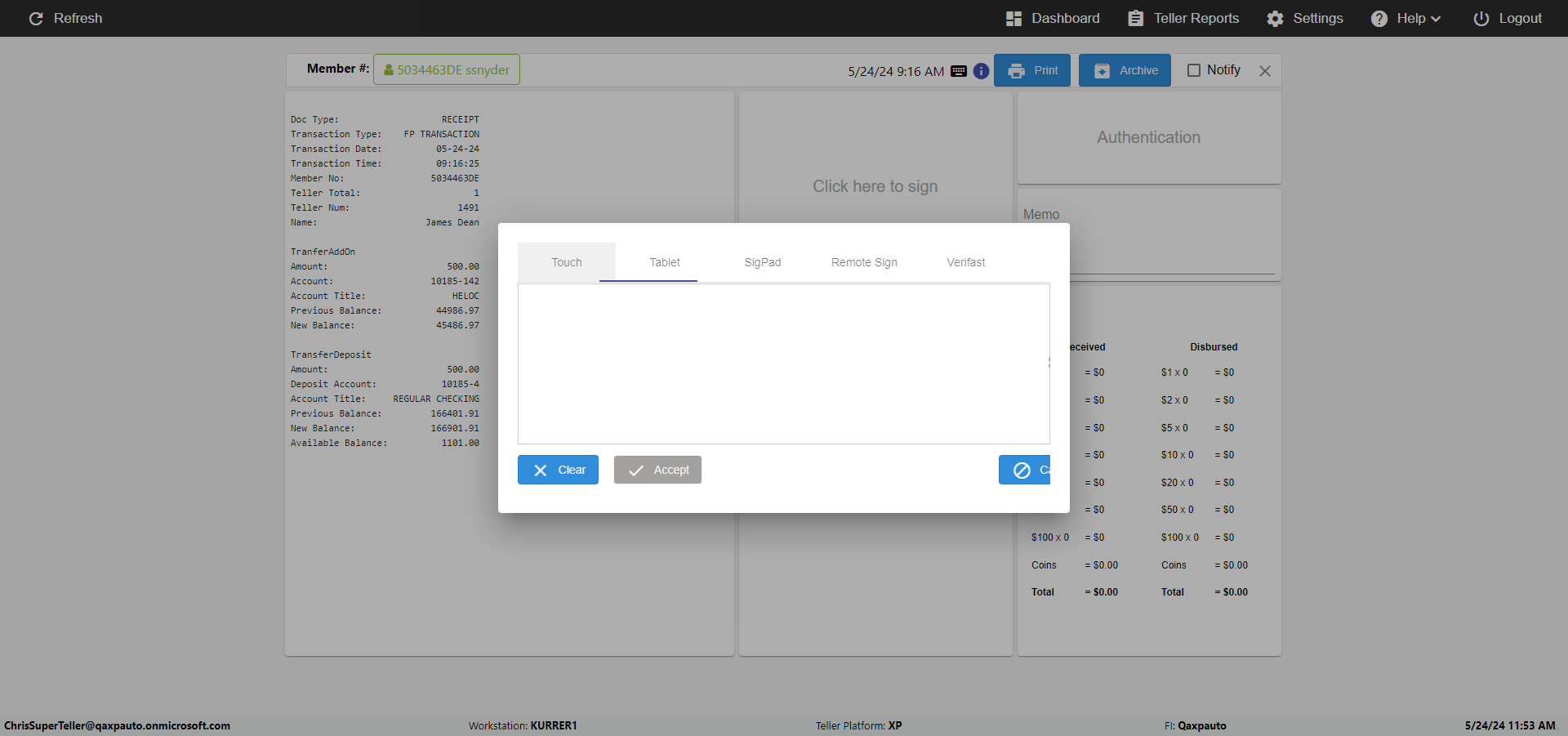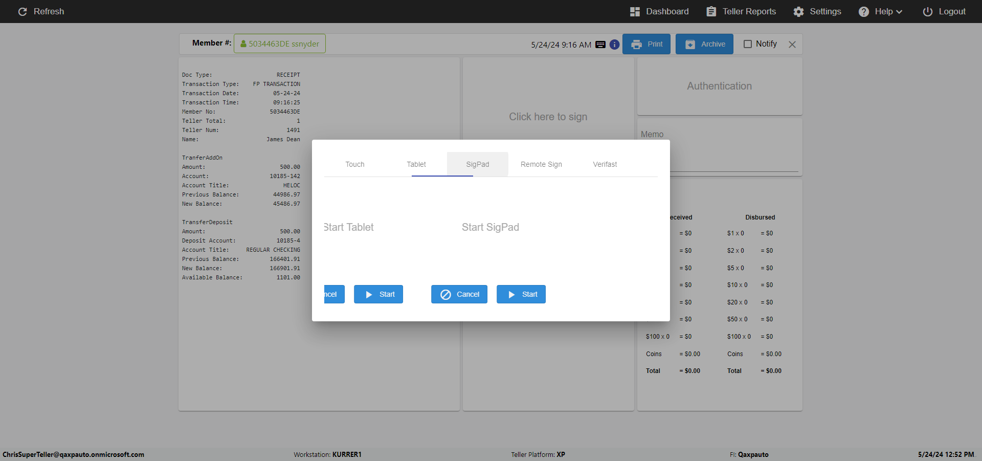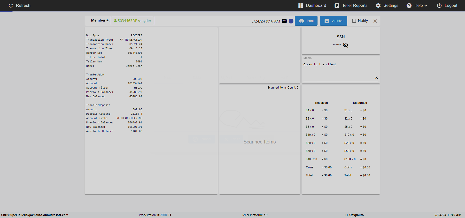| 09:24:12 AM | Successfully navigated to 'eReceipts Teller' Page | |