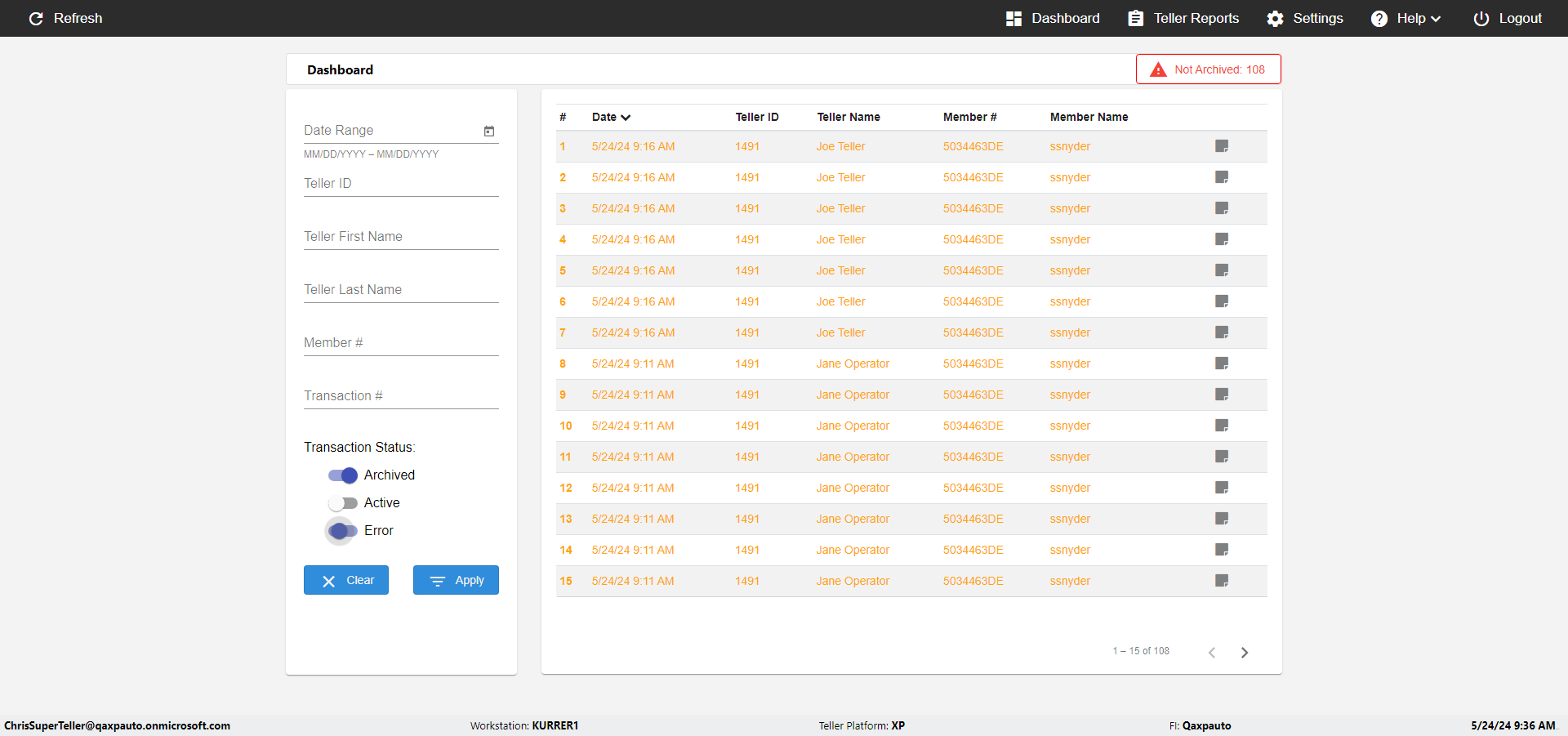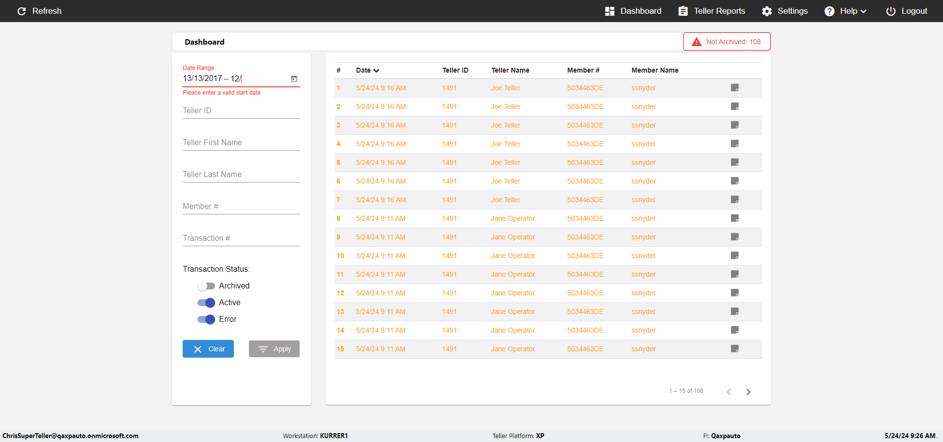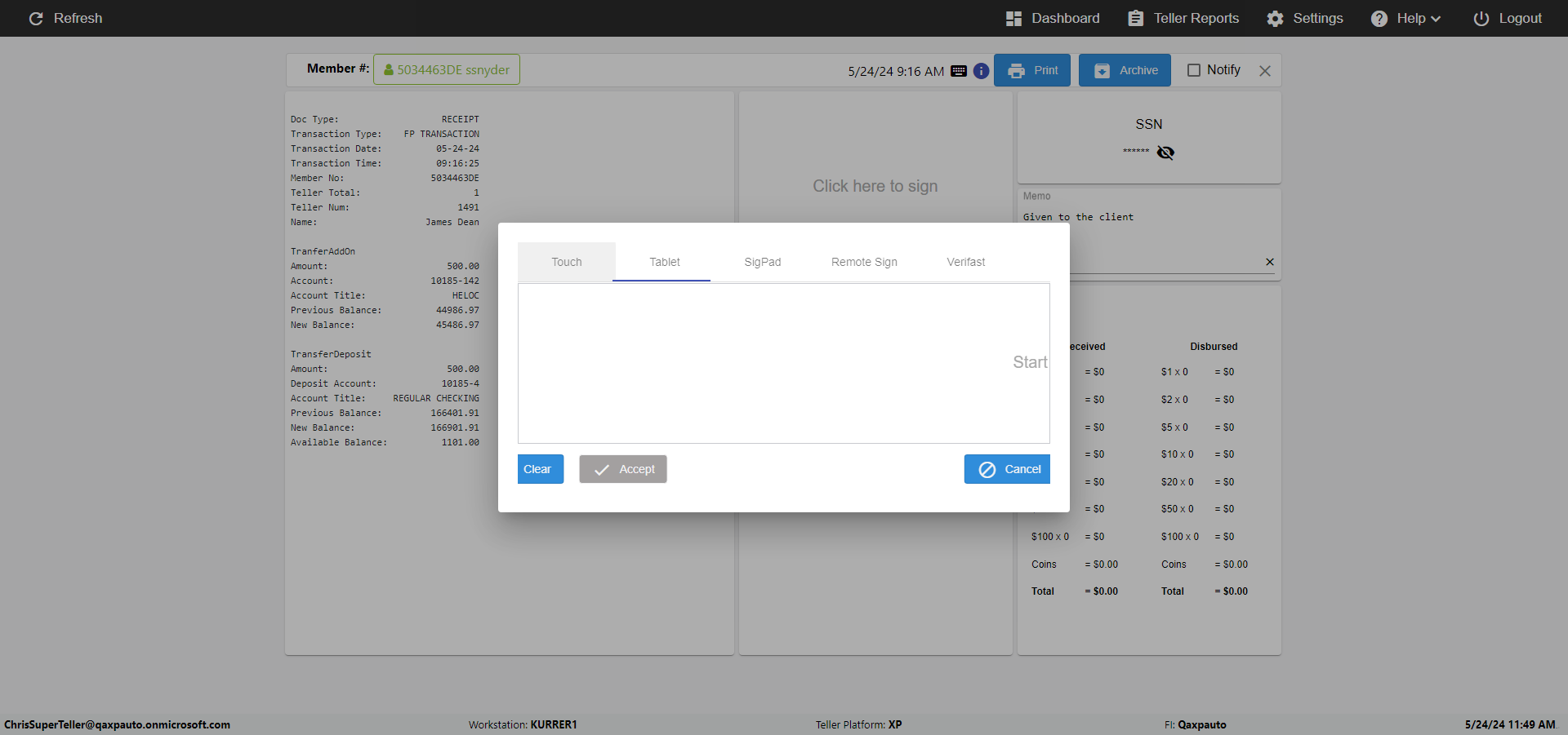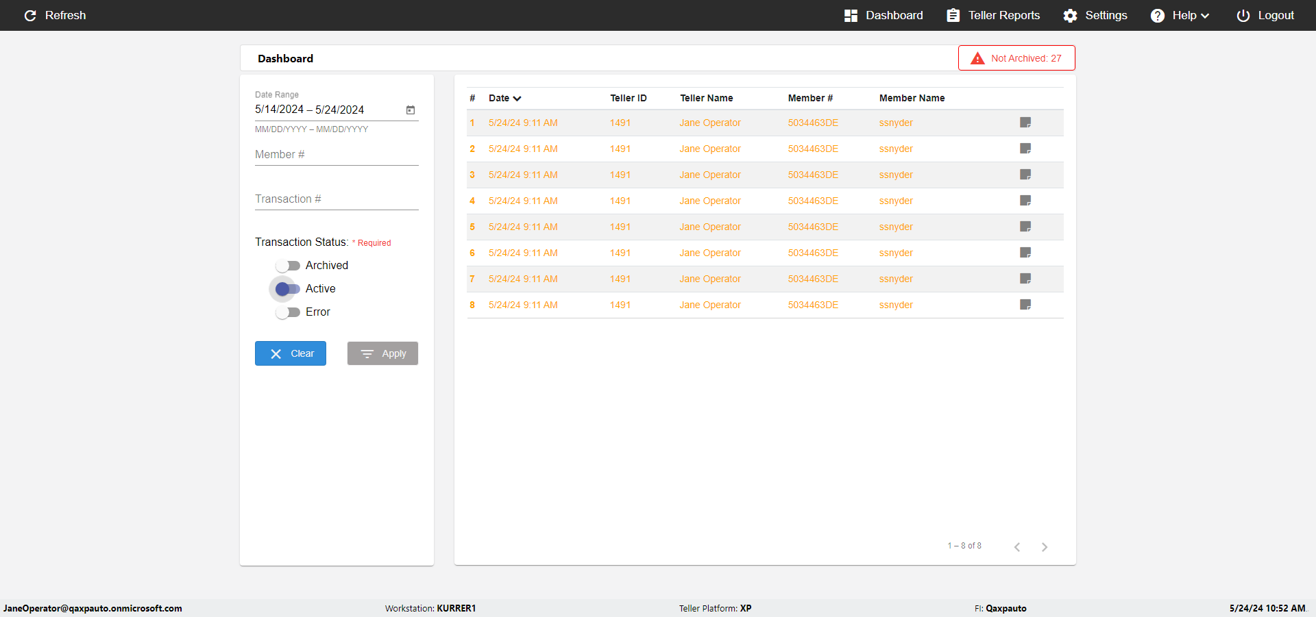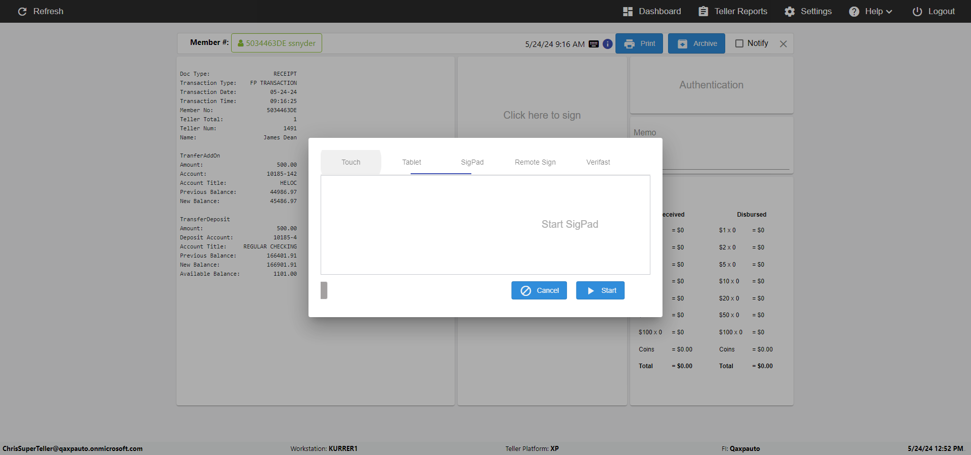 | 09:24:12 AM | Successfully navigated to 'eReceipts Teller' Page | |